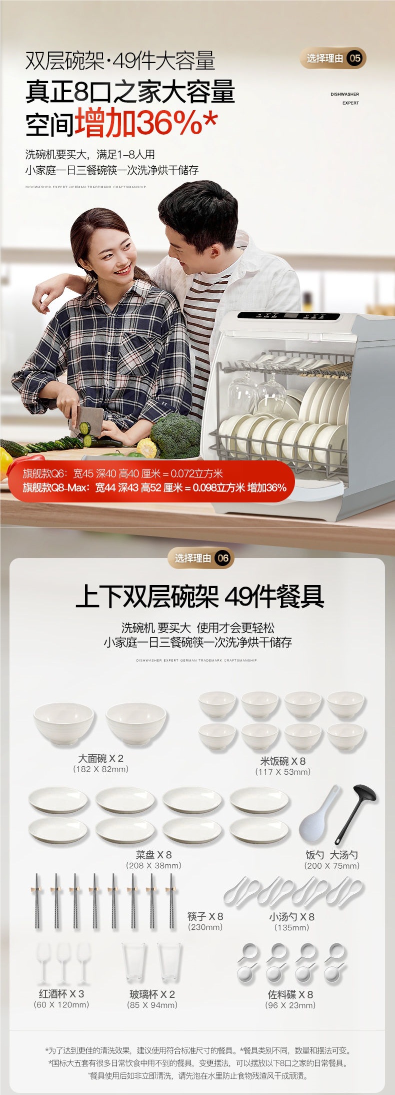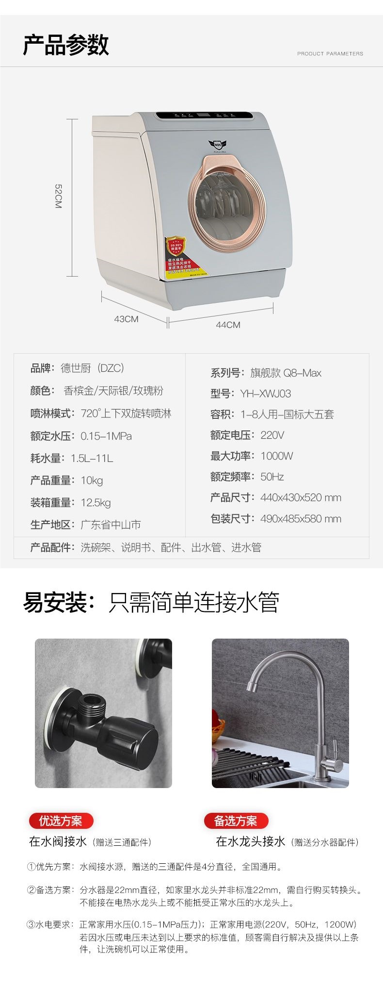 Deshikuchi 2023 식기 세척기 Q8Max 완전 자동 홈 올인원 스마트 데스크탑 임베디드 8인 세트 대용량스토어 가기