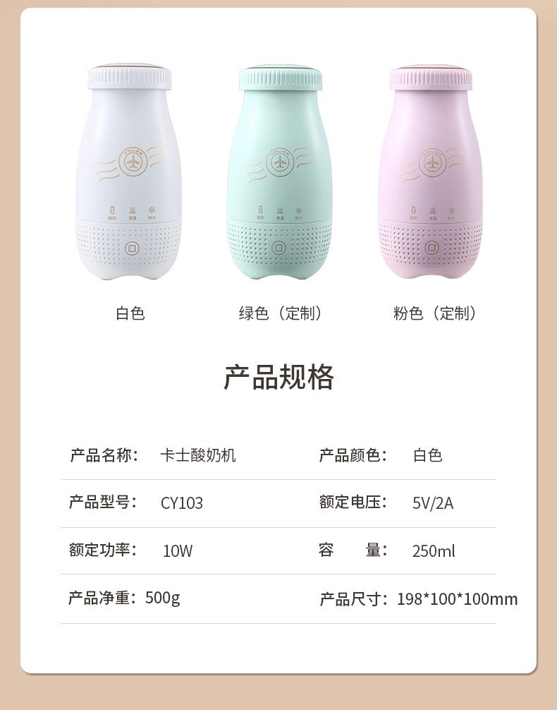 새로운 카지 요구르트 기계 CY103 자동 냉동 250ml 가정용 다기능 소형 휴대용 수제 요구르트