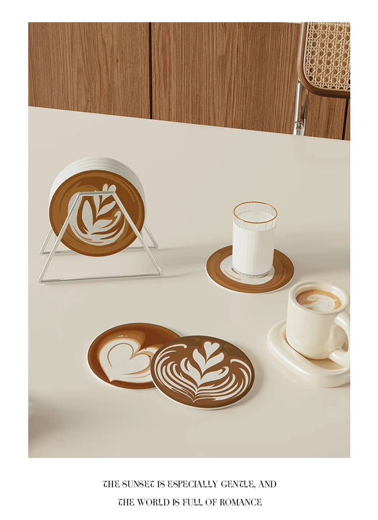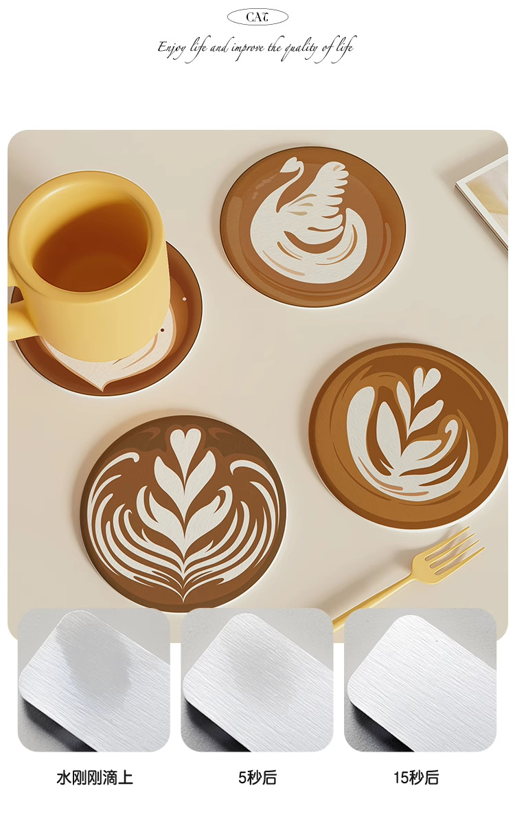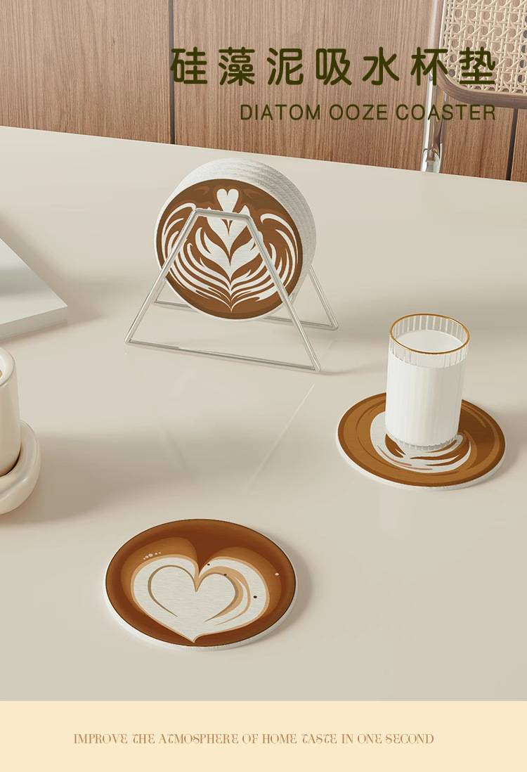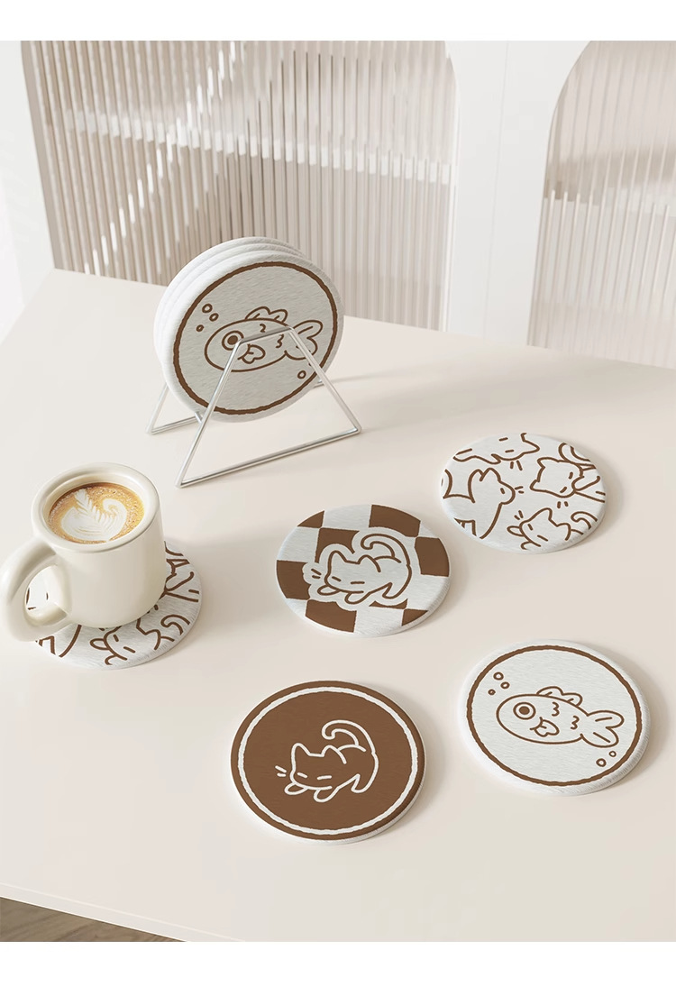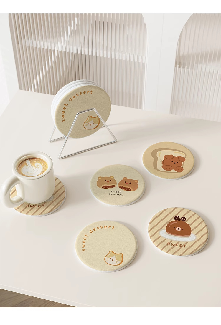 만화 사무실 커피 컵 받침 데스크탑 스토리지 매트 라운드 워터 컵 받침 규조토 진흙 흡수 매트 빠른 건조 조리대