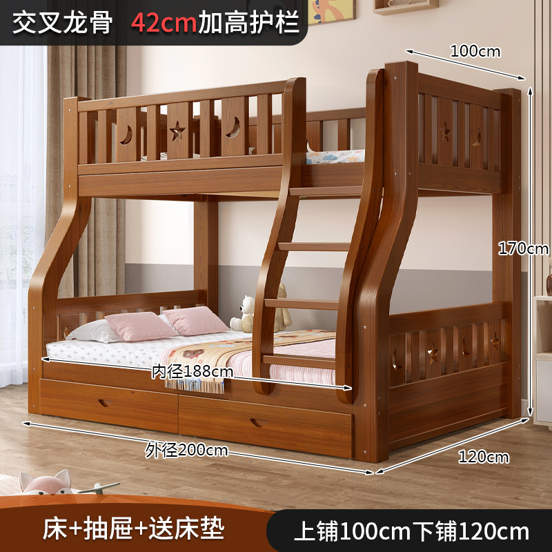 도매 전체 단단한 나무 이층 침대 이층 침대 나무 침대 높낮이 침대 이층 침대 성인 및 어린이 침대 작은 아파트