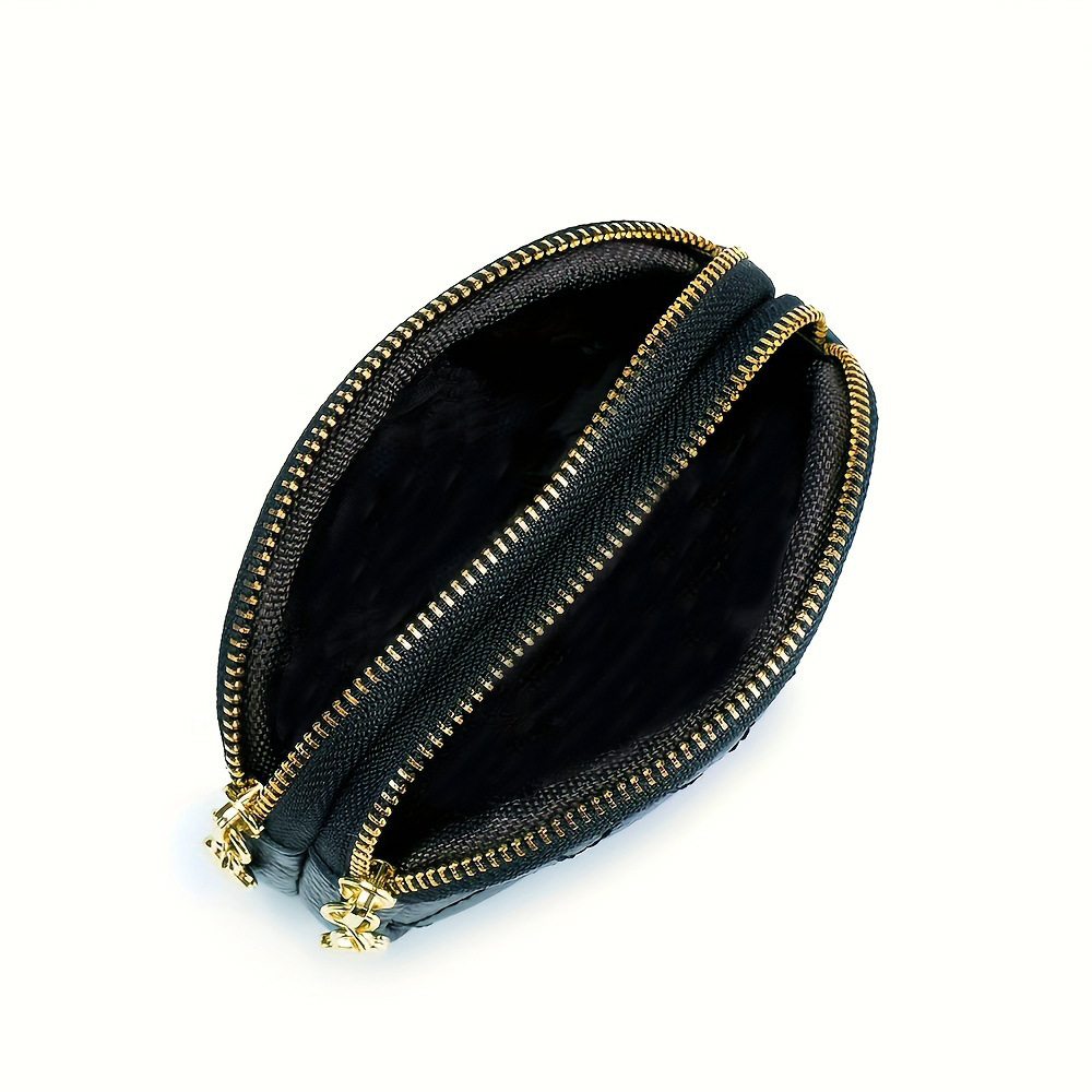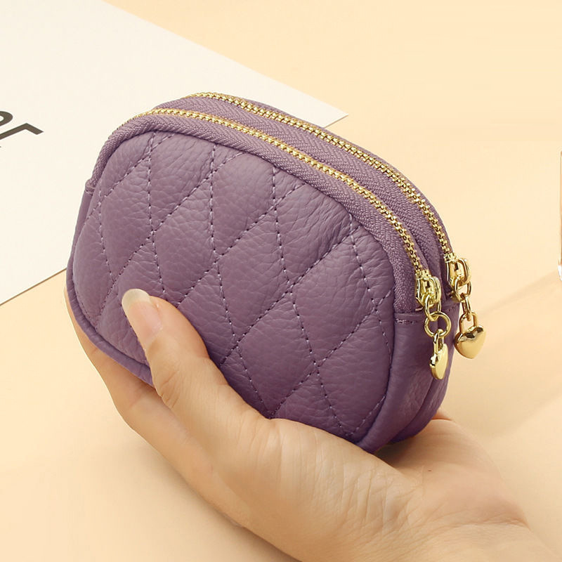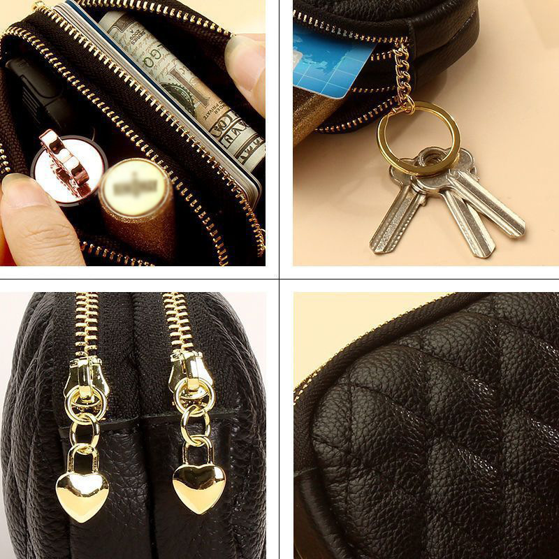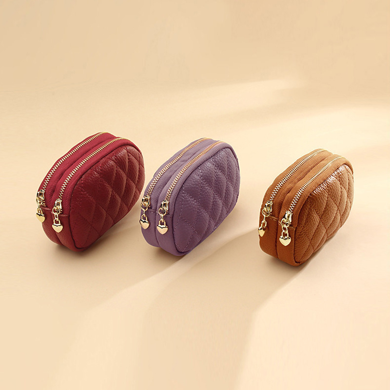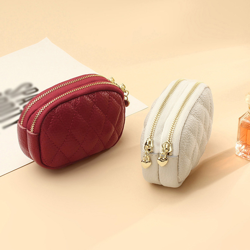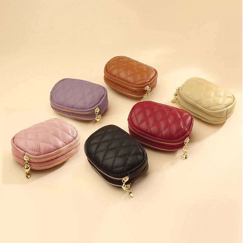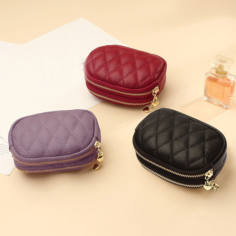 새로운 스타일의 리치 패턴 동전 지갑 더블 레이어 지퍼 키 체인 마름모 자수 실 동전 보관 가방 여성용 소형 동전 지갑