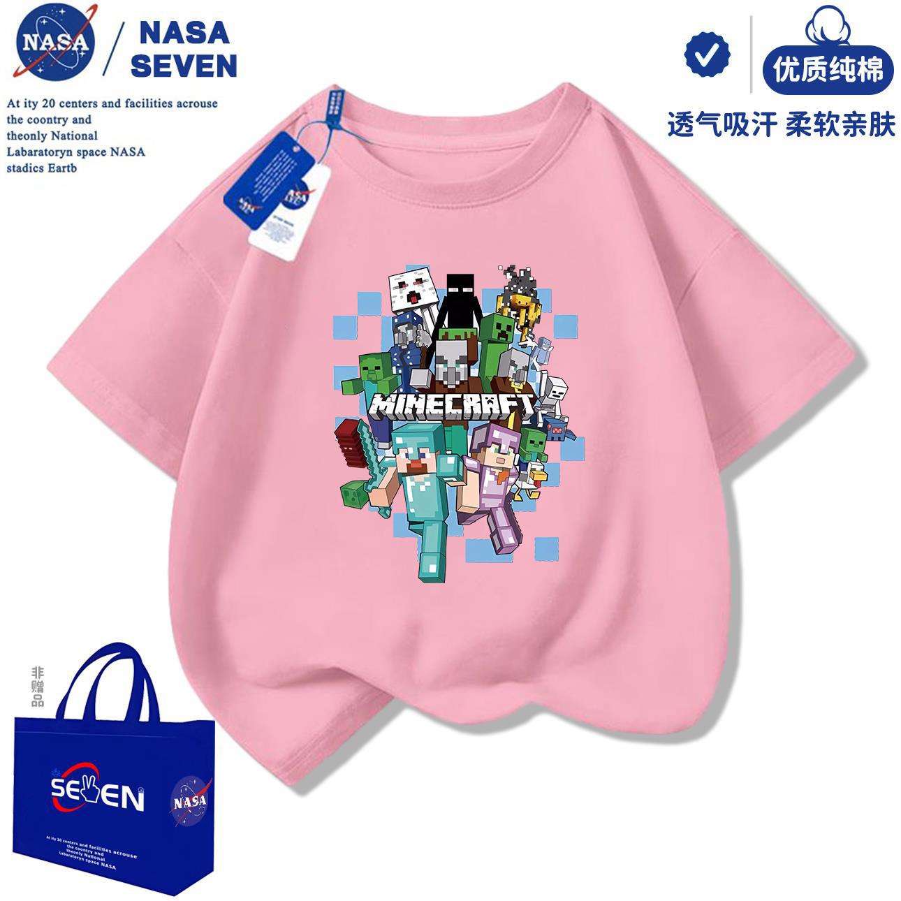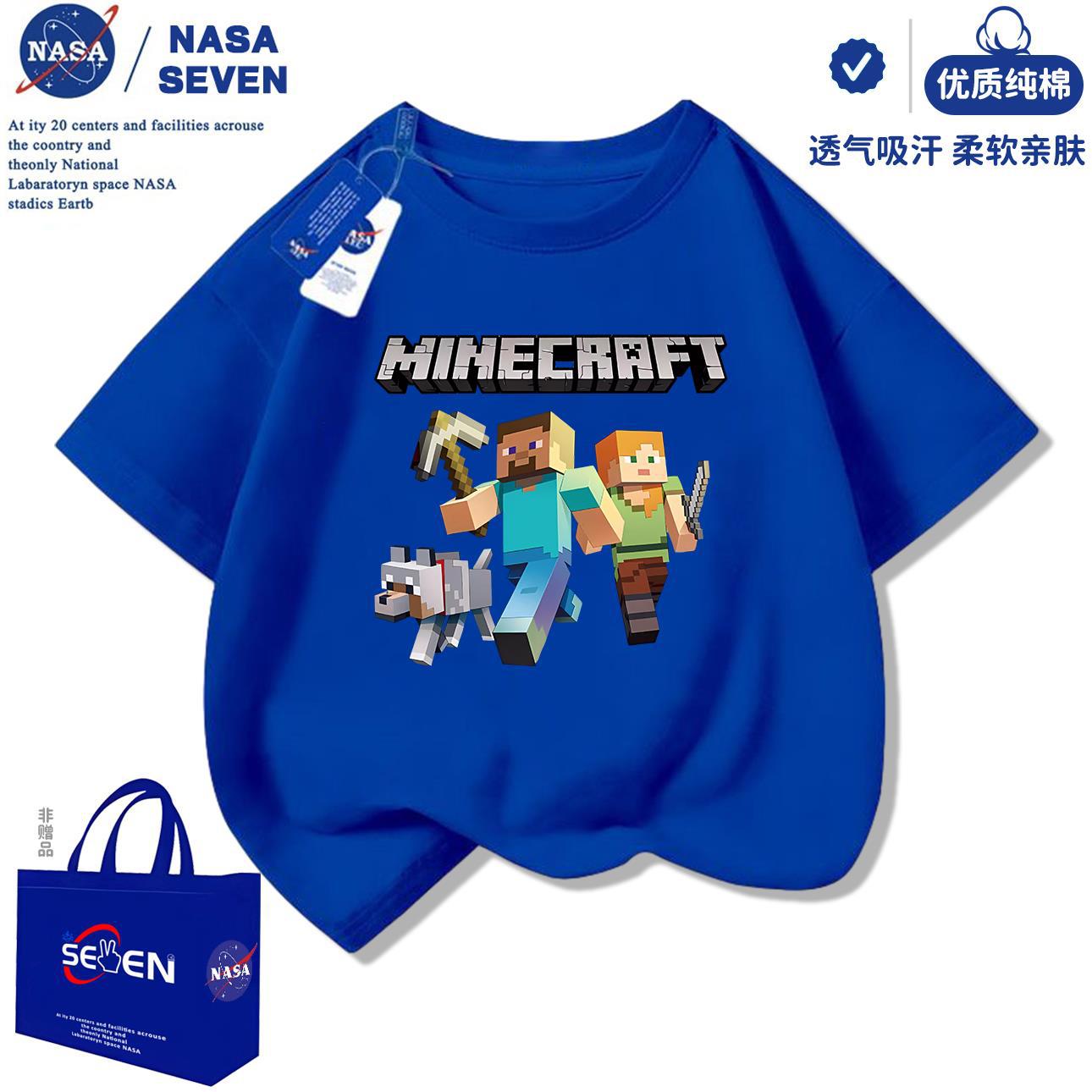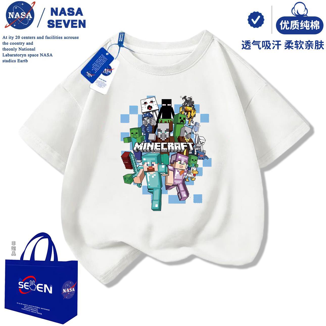NASA 마인 크래프트 순수 코튼 티셔츠 소년 잘 생긴 여름 새 스타일 만화 프린트 반팔 아동용 탑 유행스토어 가기