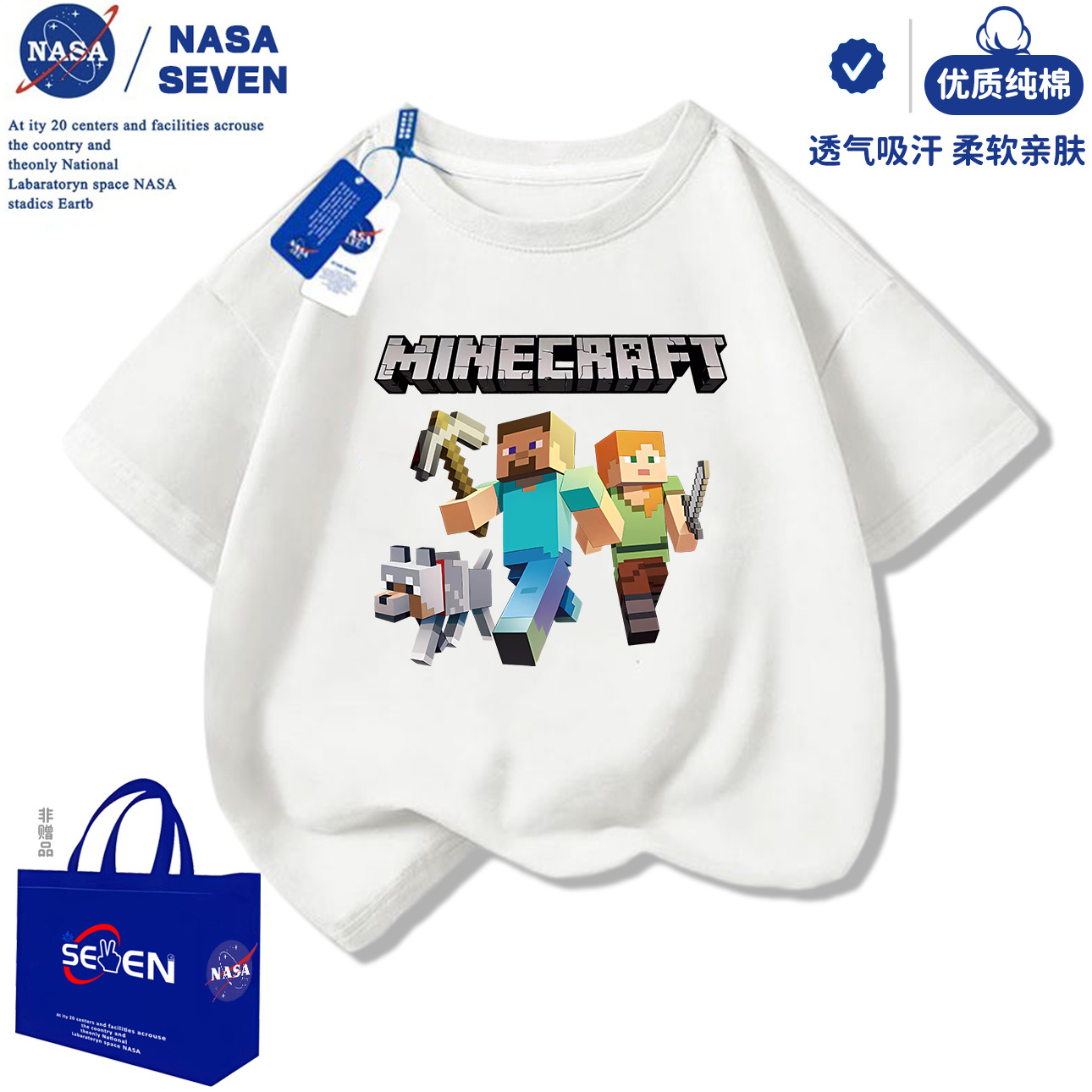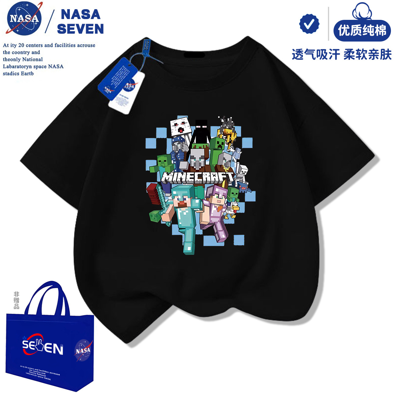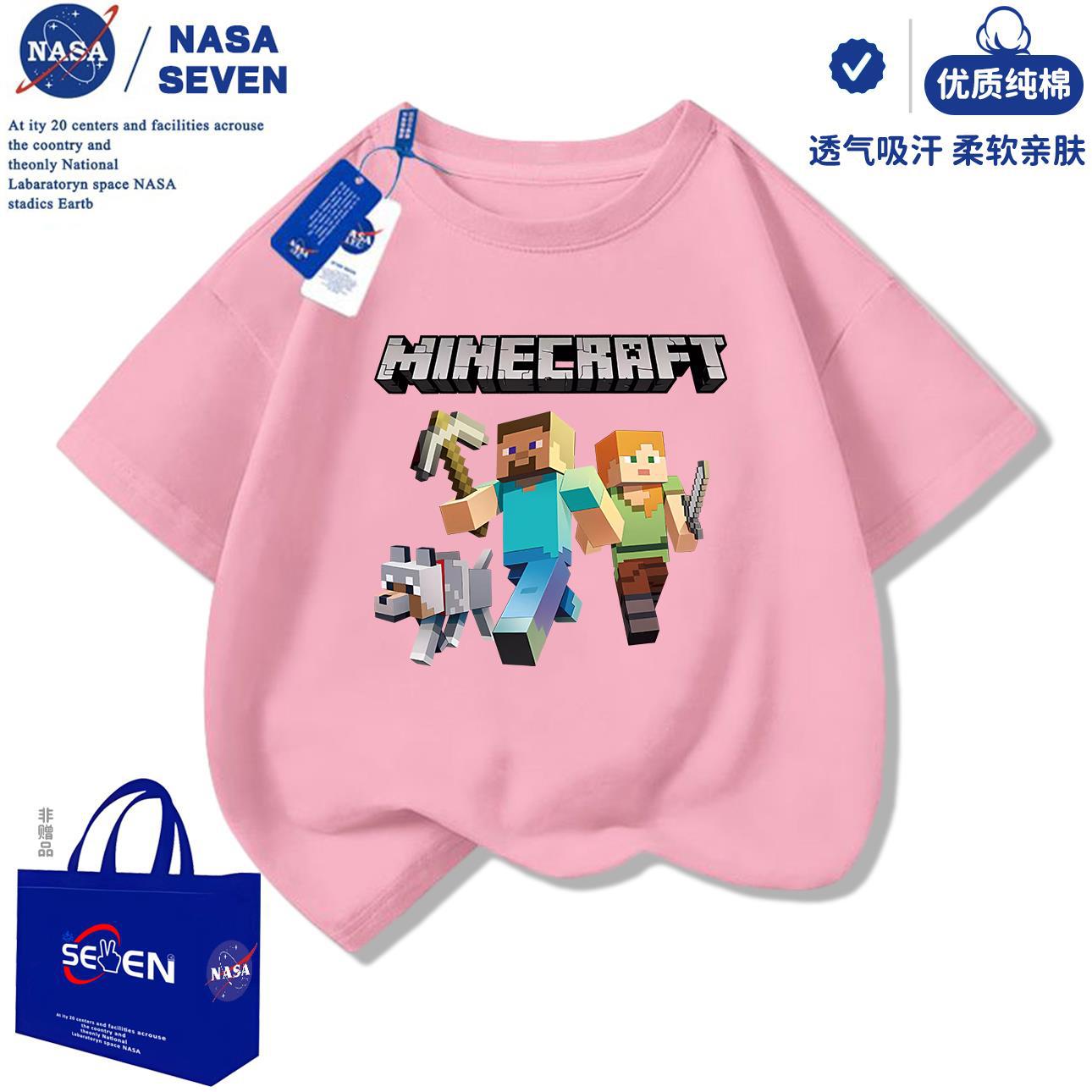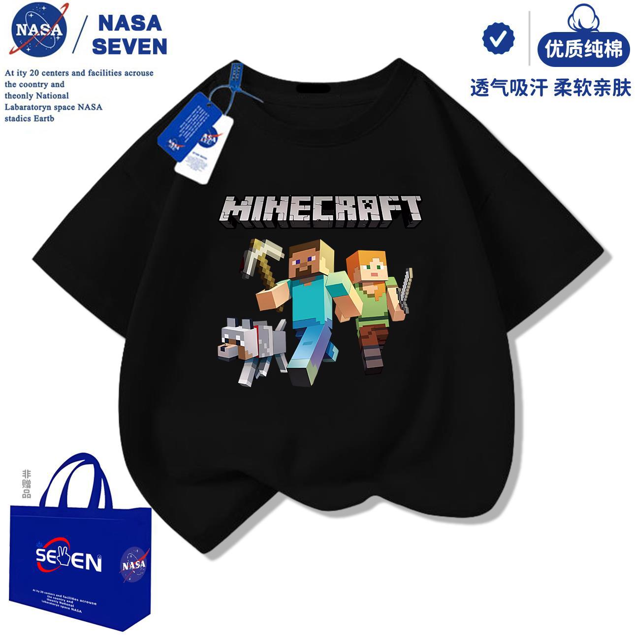 NASA 마인 크래프트 순수 코튼 티셔츠 소년 잘 생긴 여름 새 스타일 만화 프린트 반팔 아동용 탑 유행스토어 가기