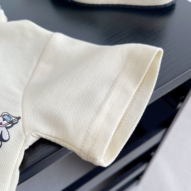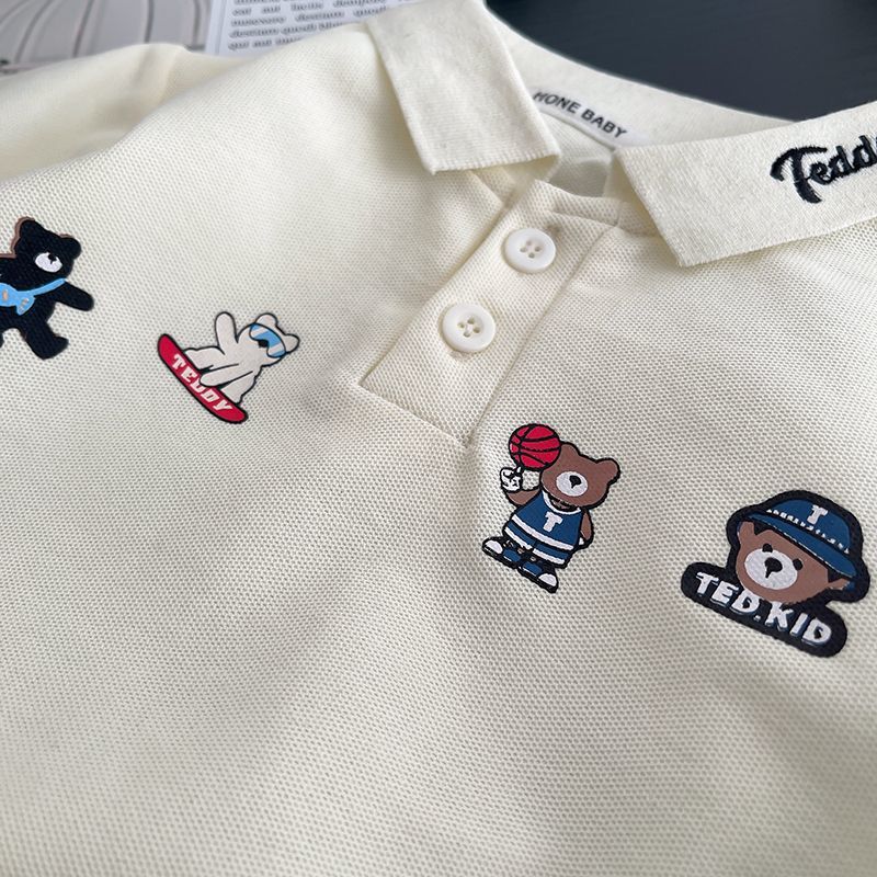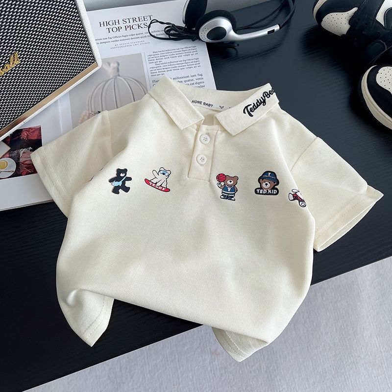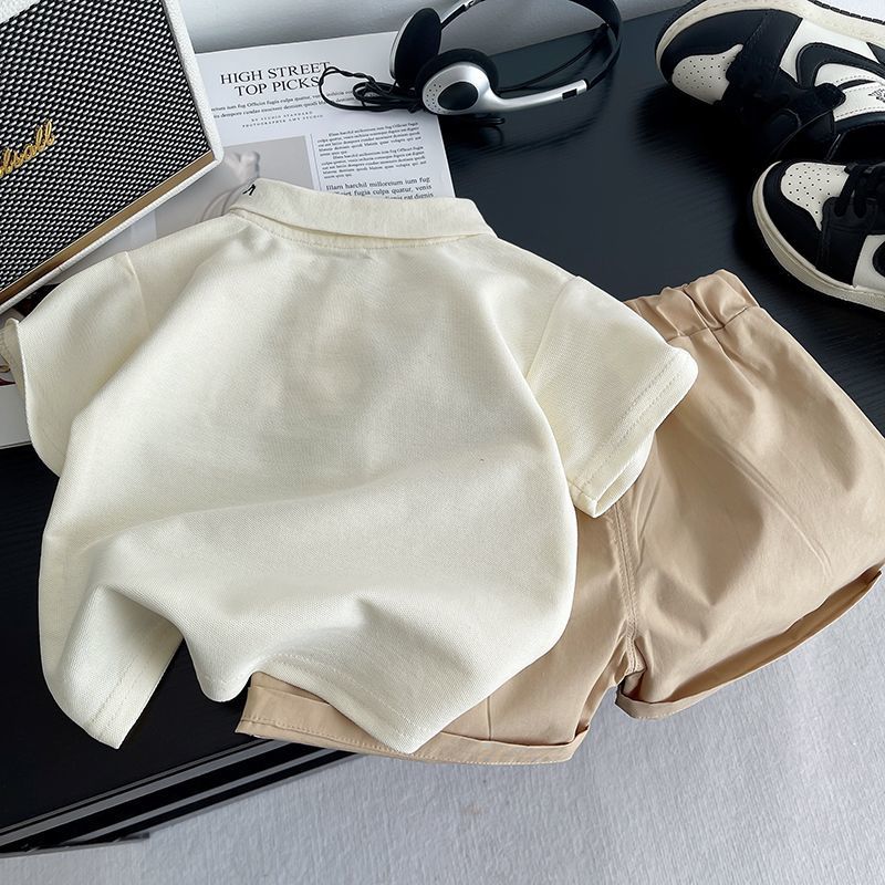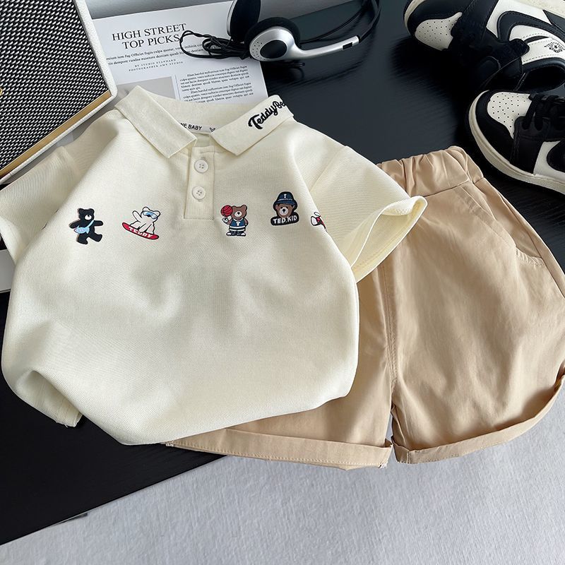 2025 새로운 여름 만화 패션 소년 폴로 셔츠 반바지 투피스 세트 외국 스타일 아기 어린이 정장 한국어 버전