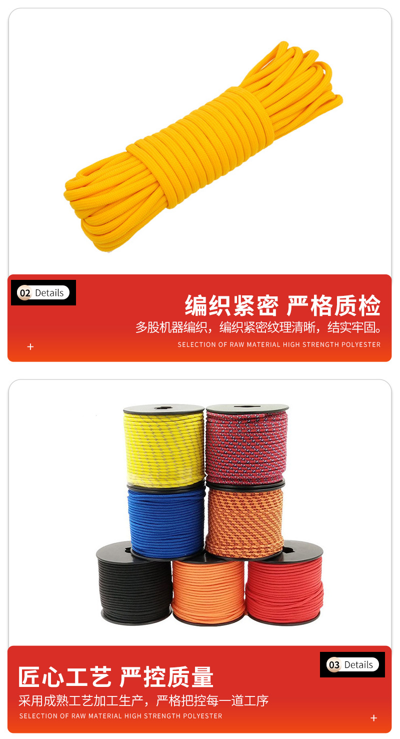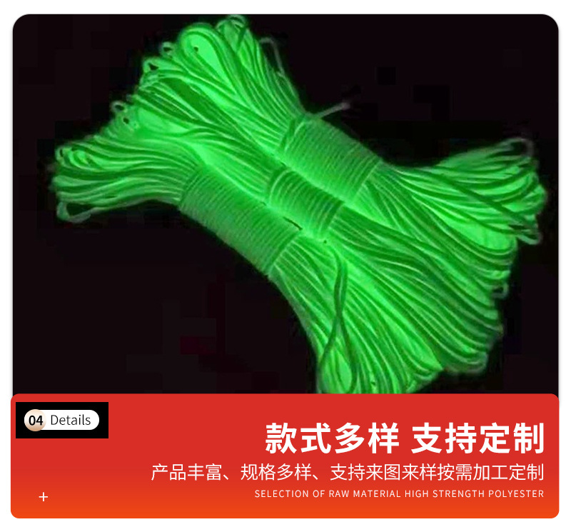 조정 가능한 고강도 9 코어 폴리 에스터 번들 로프 빛나는 텐트 고정 로프 4mm 캐노피 방풍 우산 로프