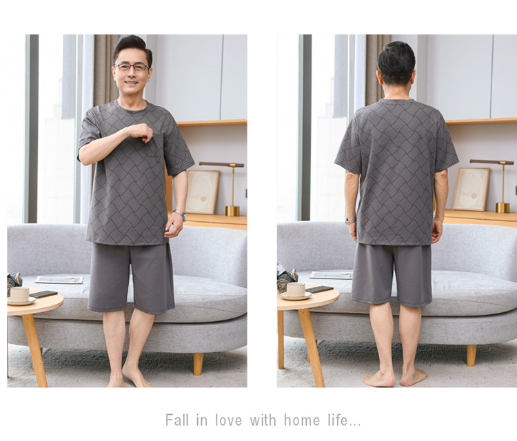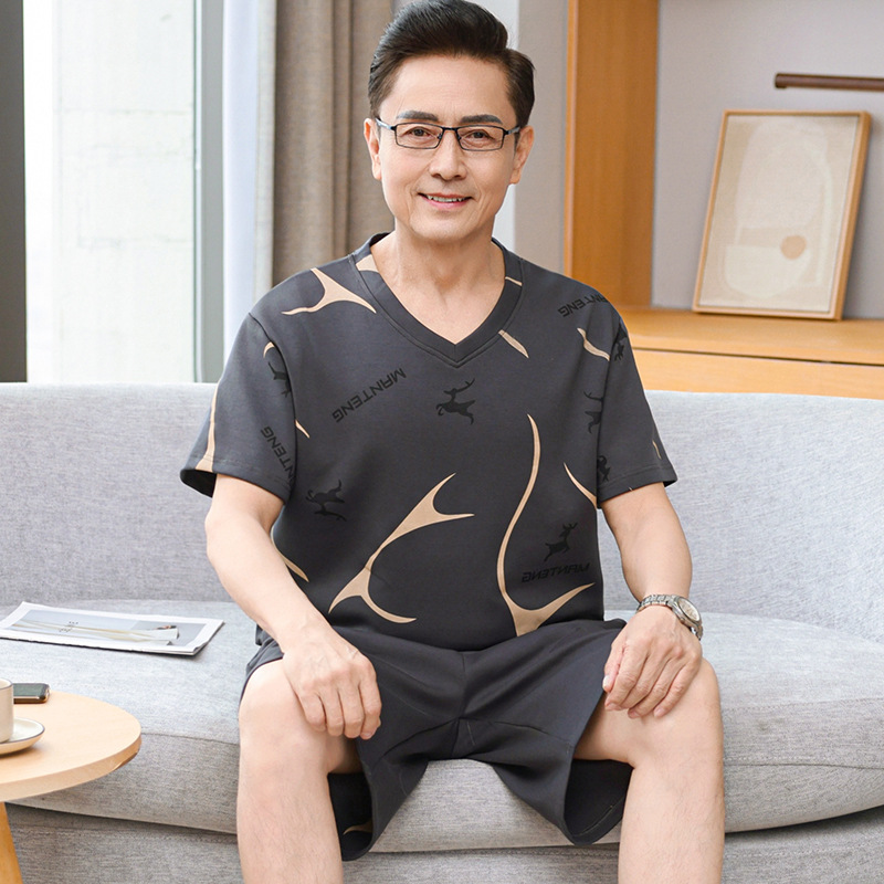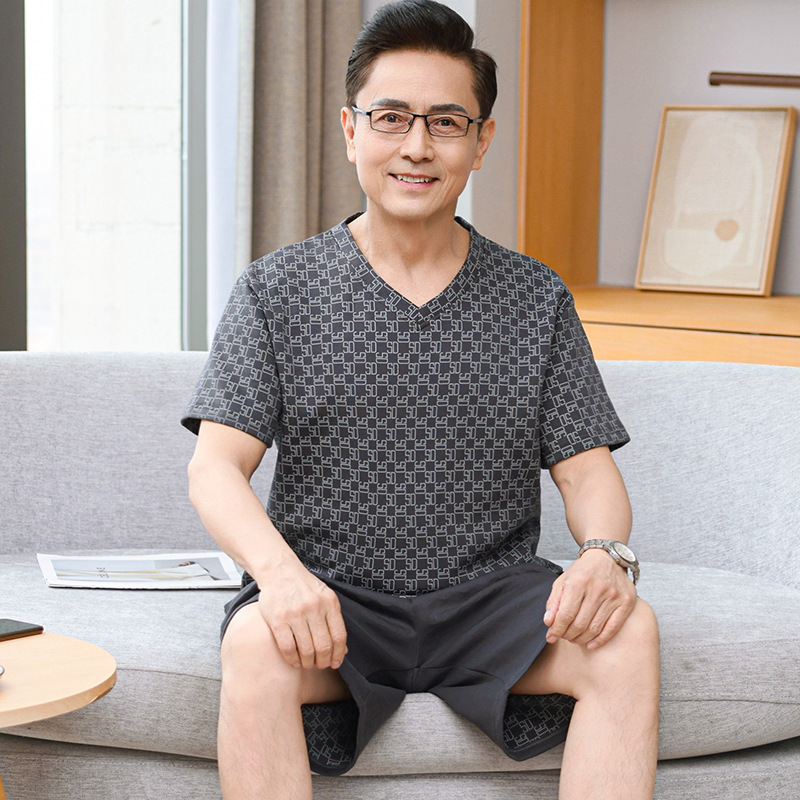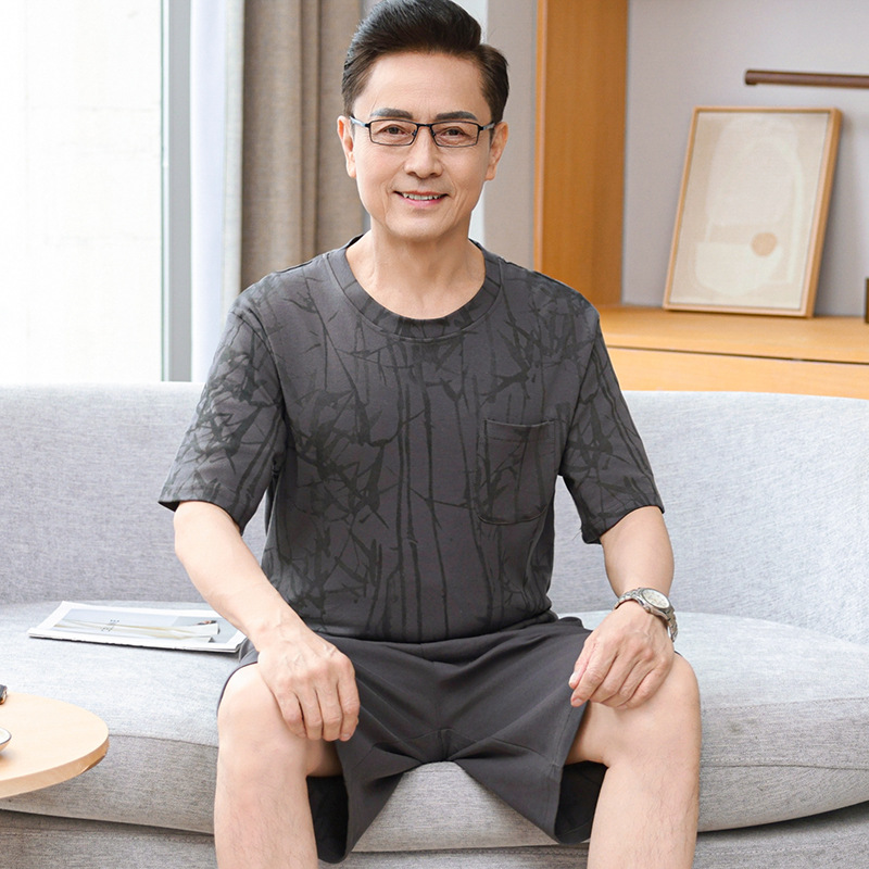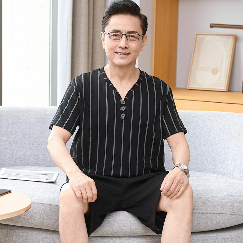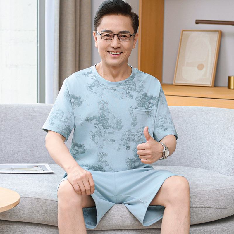 순면 남성 잠옷 2025 중년 아빠 가정복 반팔 반바지 세트는 매우 느슨하고 착용 가능스토어 가기