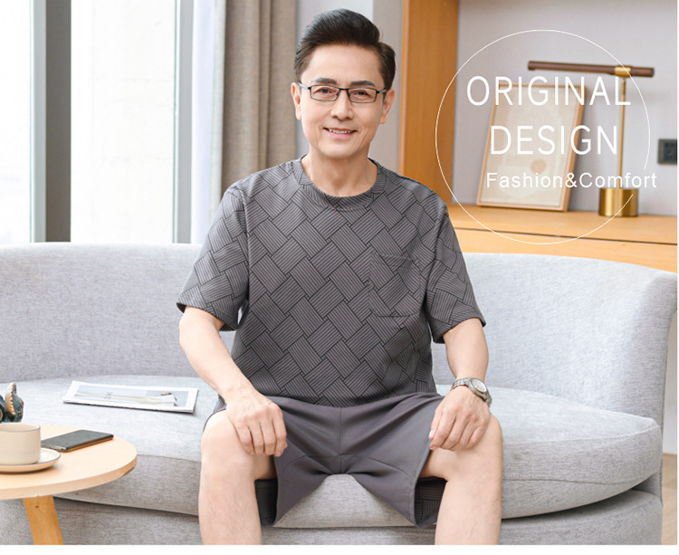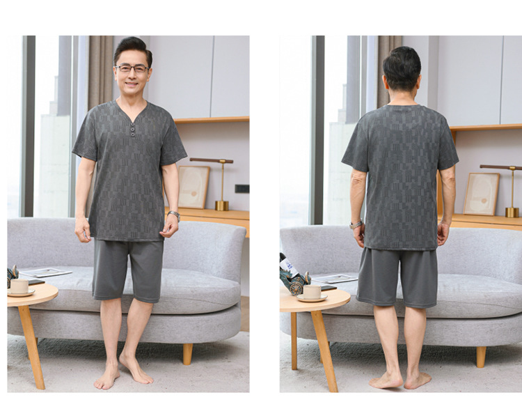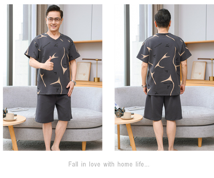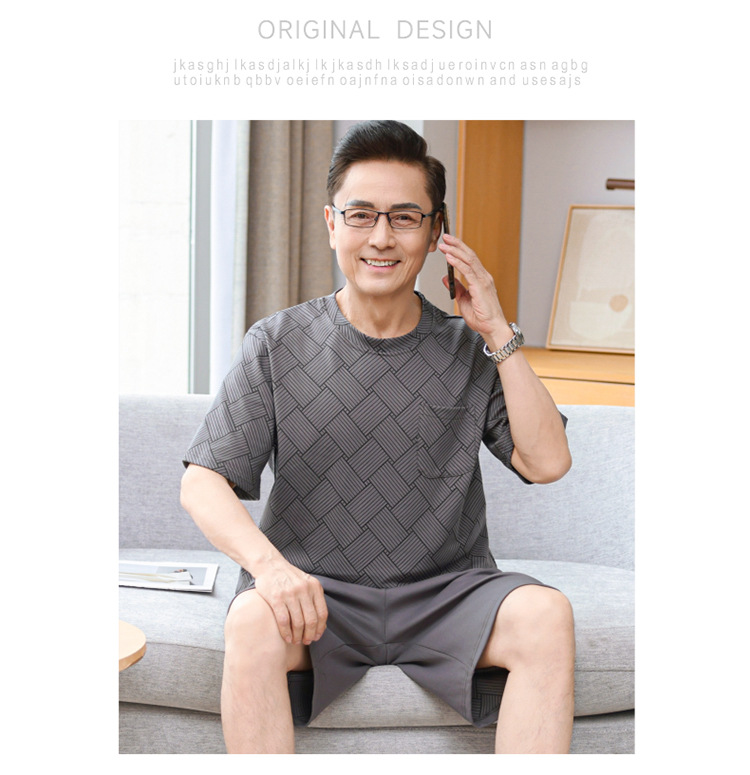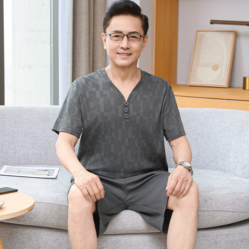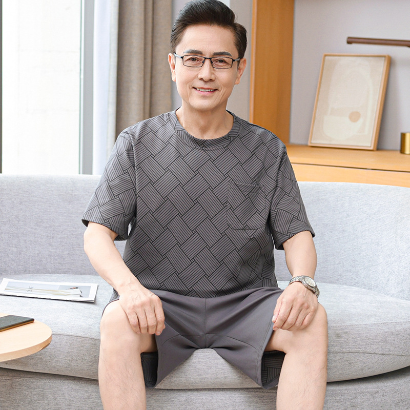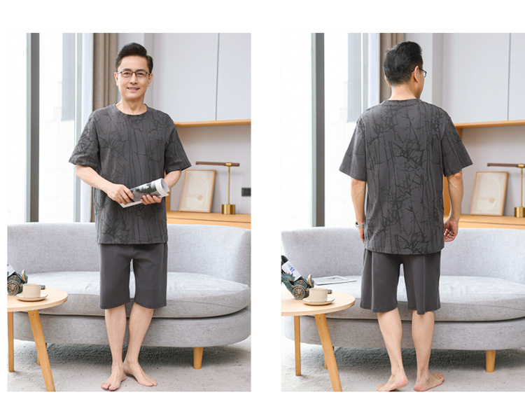 순면 남성 잠옷 2025 중년 아빠 가정복 반팔 반바지 세트는 매우 느슨하고 착용 가능스토어 가기