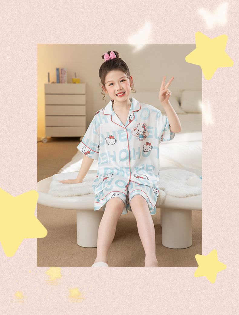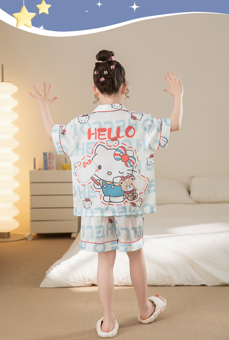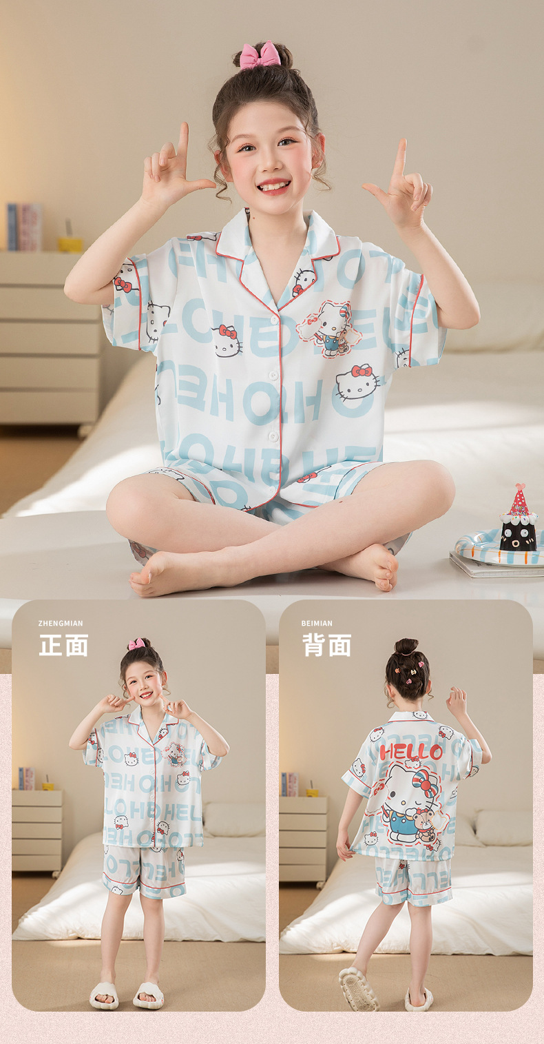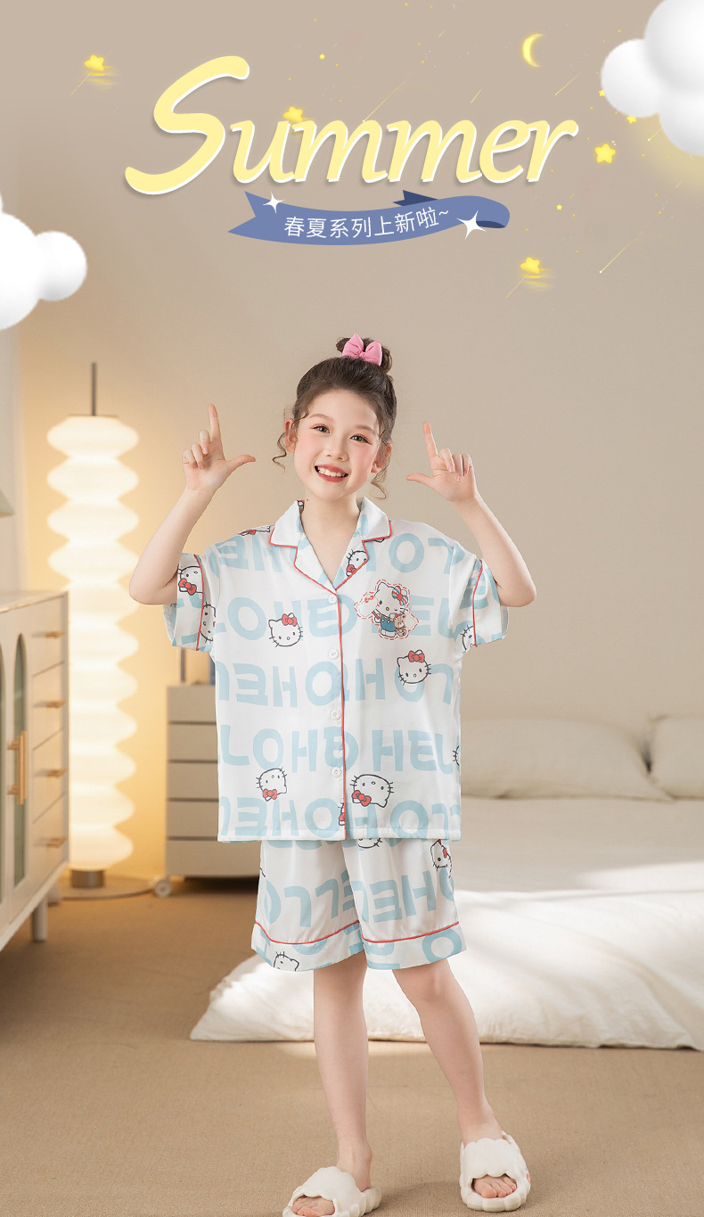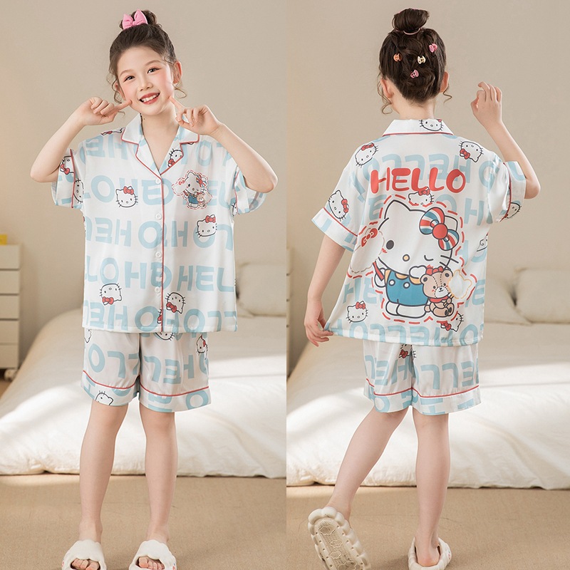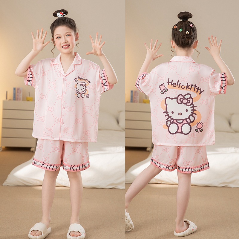 여자 잠옷 여름 얼음 실크 2025 새로운 얇은 어린이 만화 헬로 키티 가정 의류 여름 시원한 스타일스토어 가기