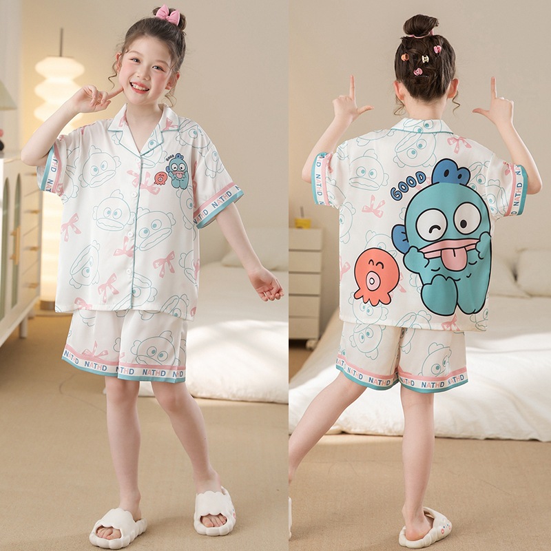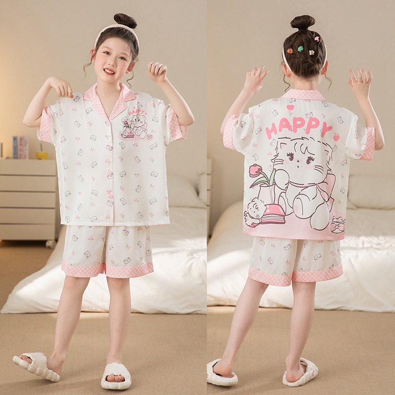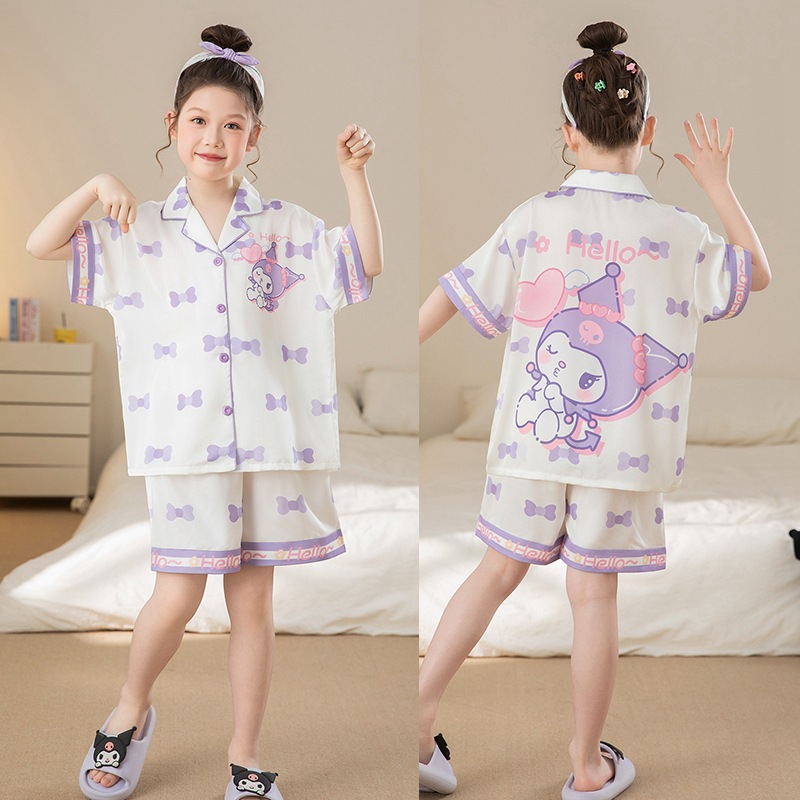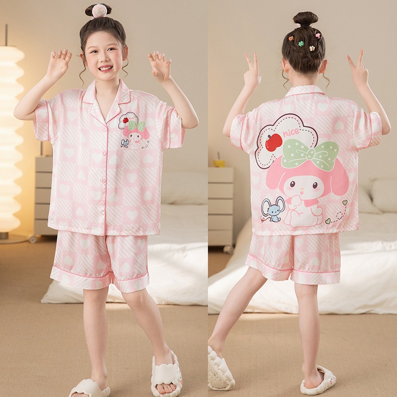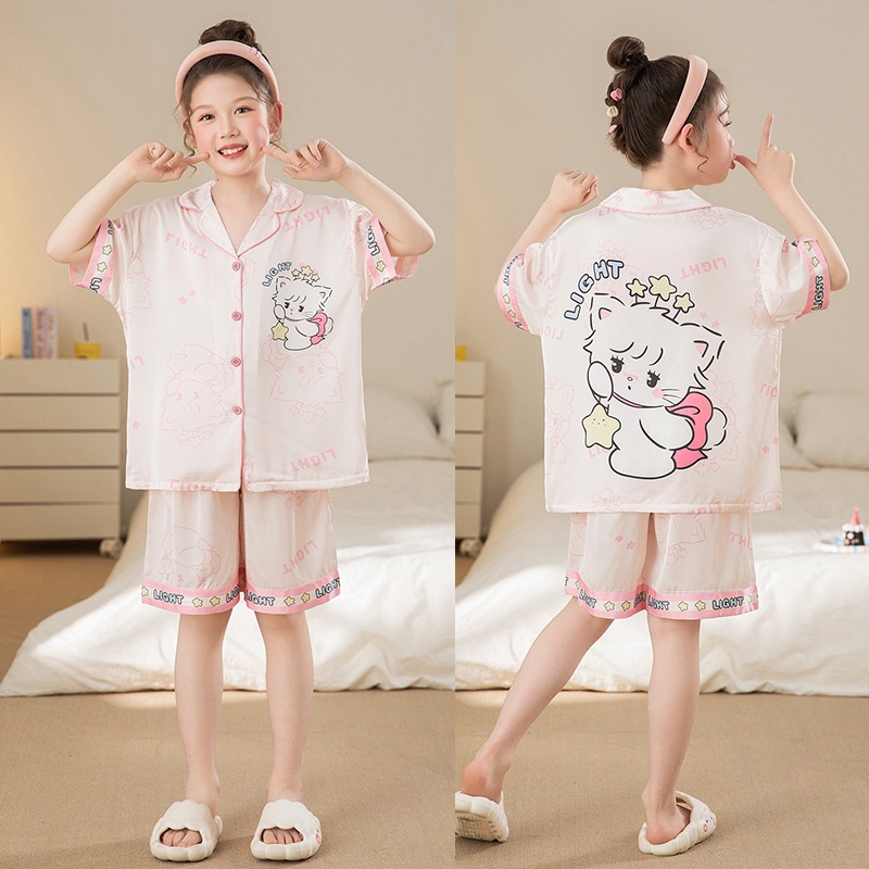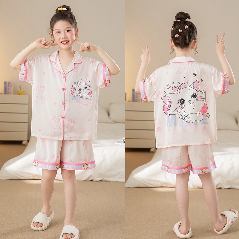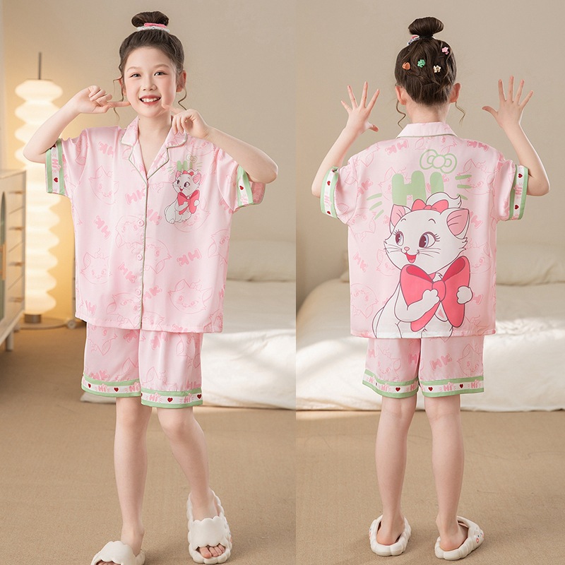 여자 잠옷 여름 얼음 실크 2025 새로운 얇은 어린이 만화 헬로 키티 가정 의류 여름 시원한 스타일스토어 가기