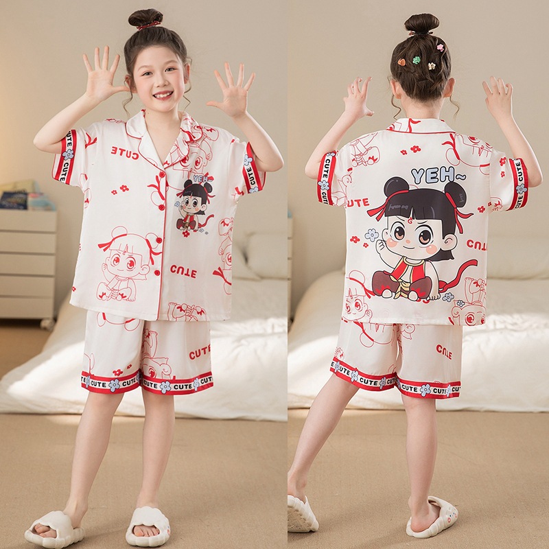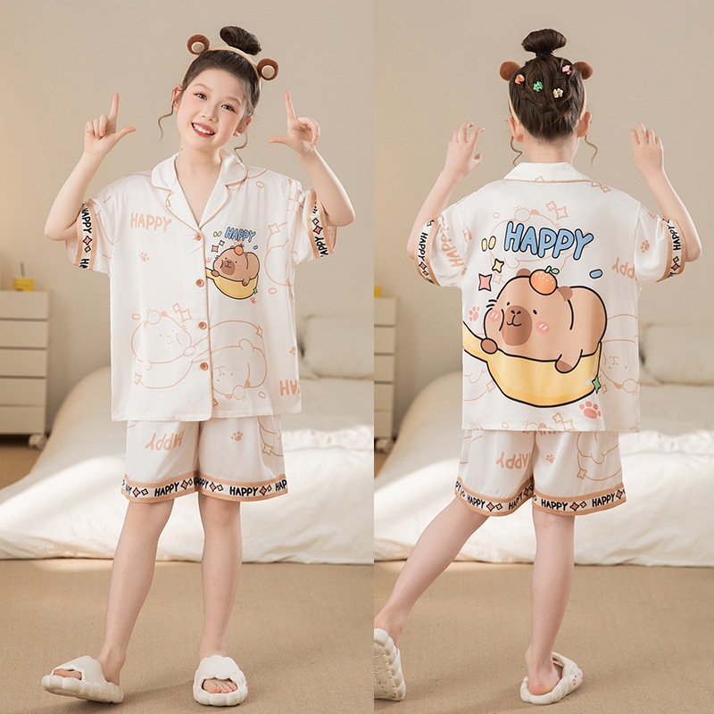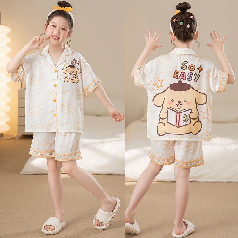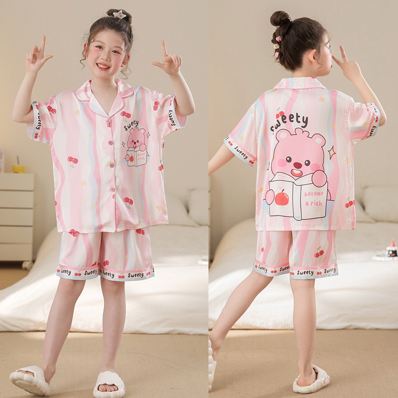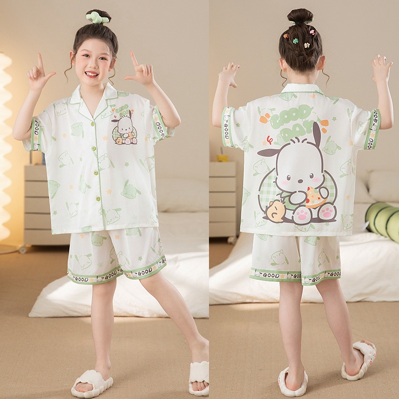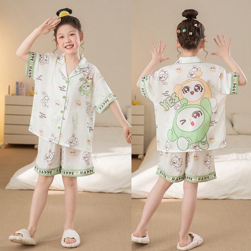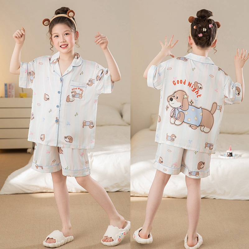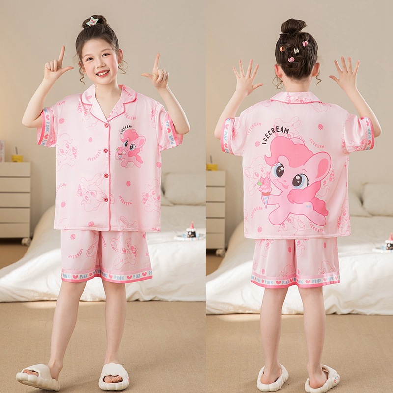 여자 잠옷 여름 얼음 실크 2025 새로운 얇은 어린이 만화 헬로 키티 가정 의류 여름 시원한 스타일스토어 가기