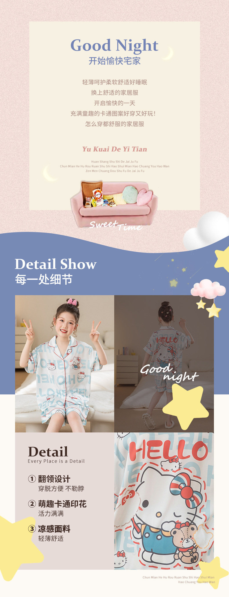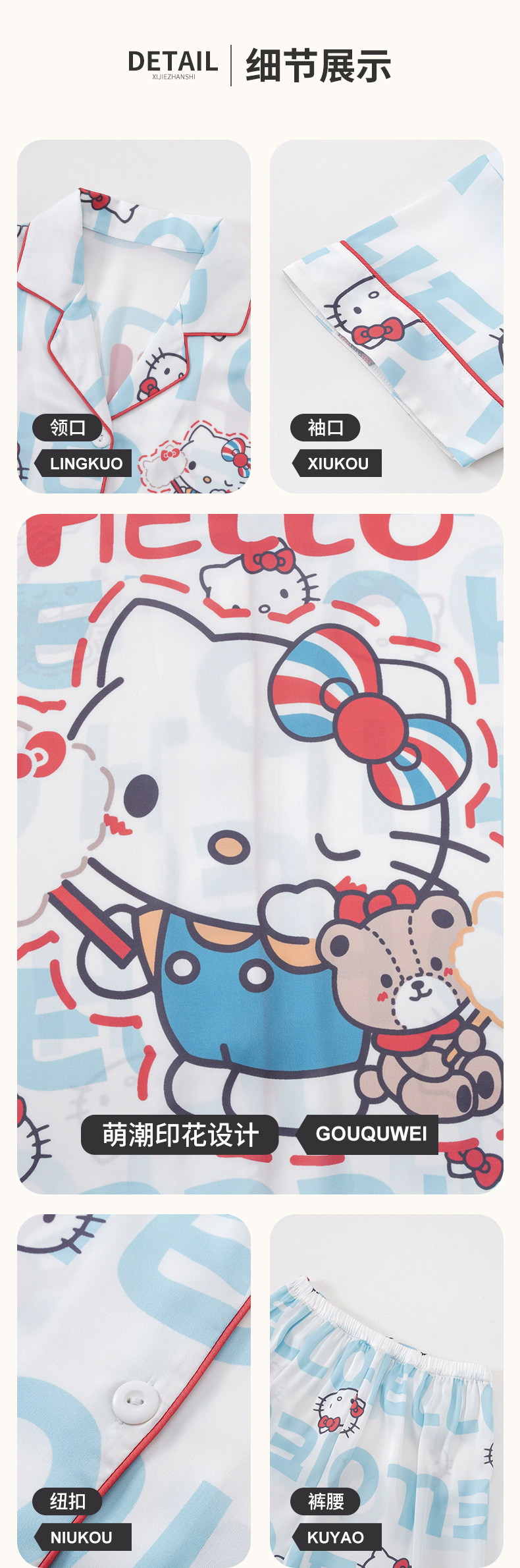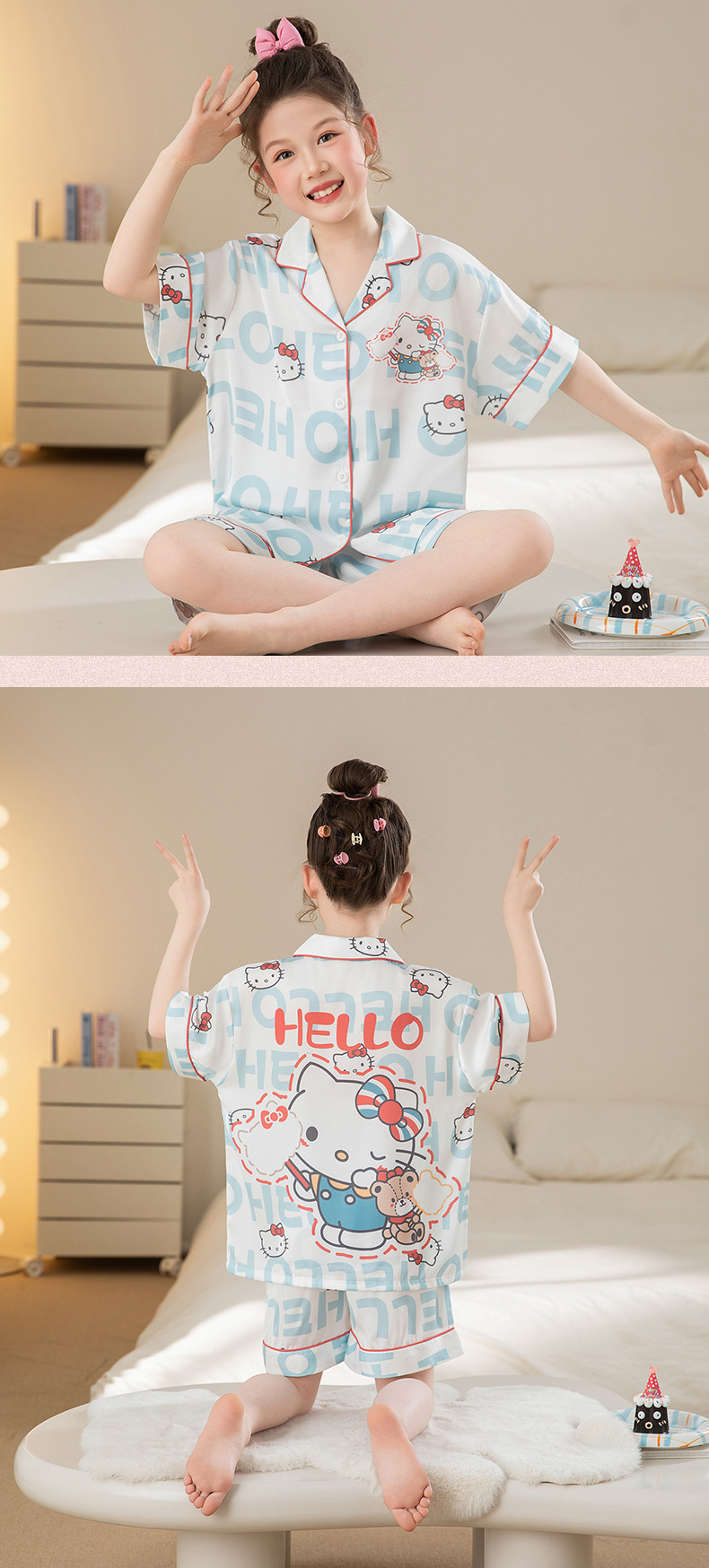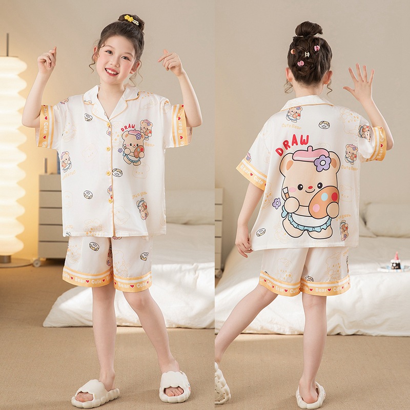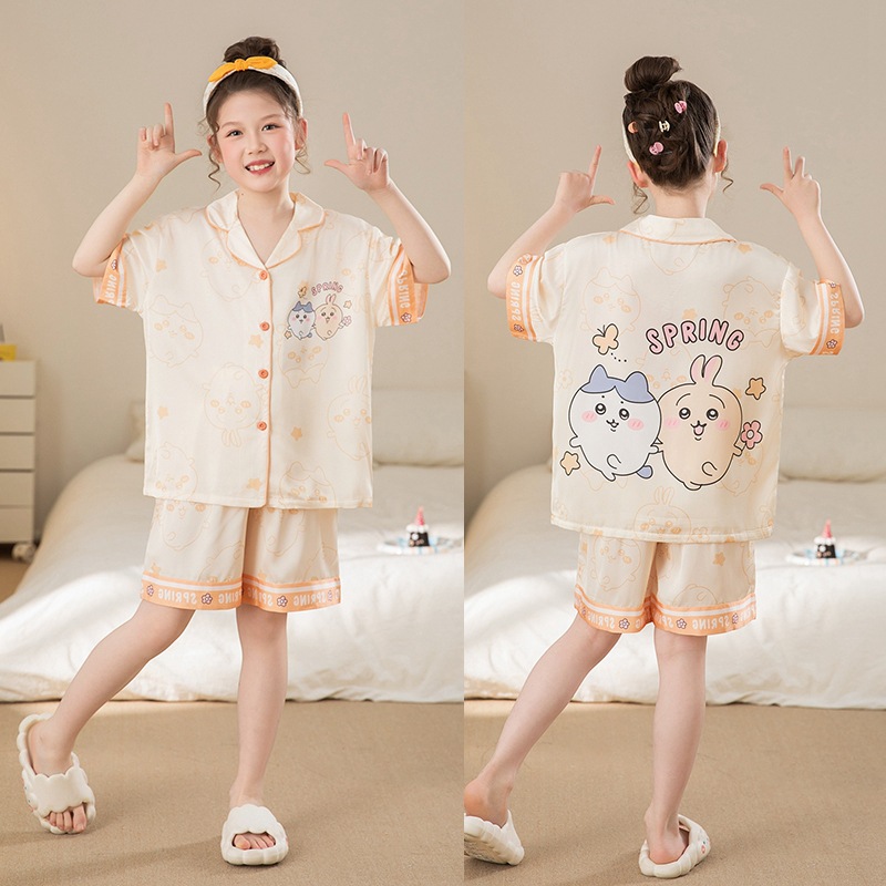여자 잠옷 여름 얼음 실크 2025 새로운 얇은 어린이 만화 헬로 키티 가정 의류 여름 시원한 스타일스토어 가기