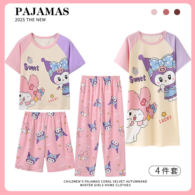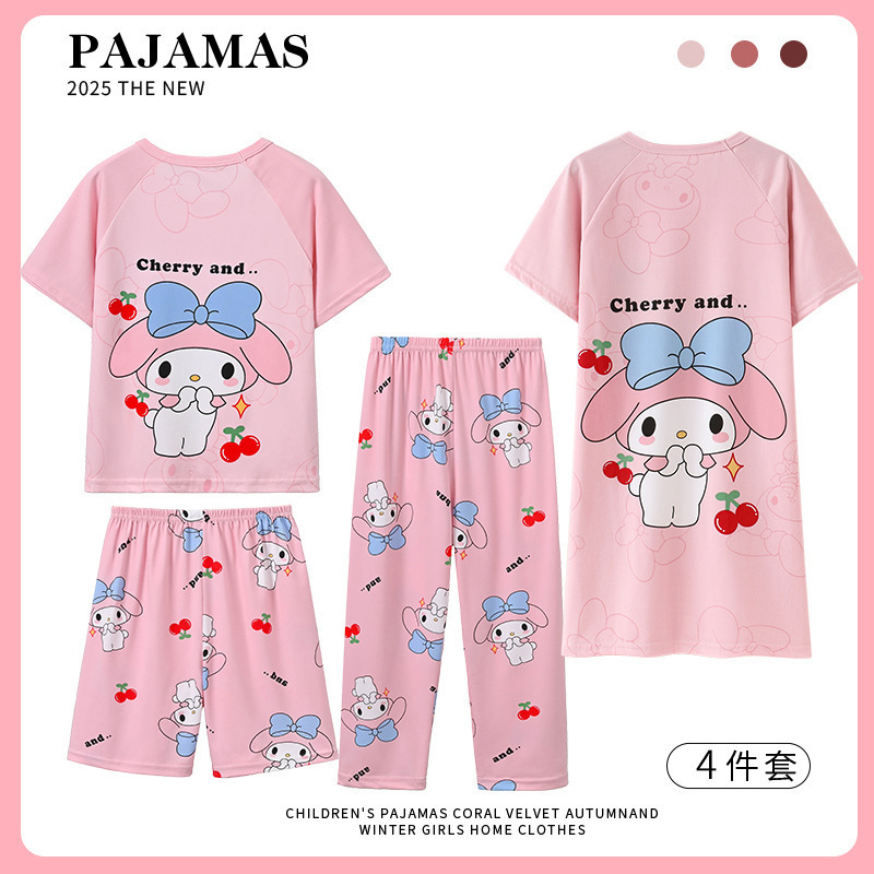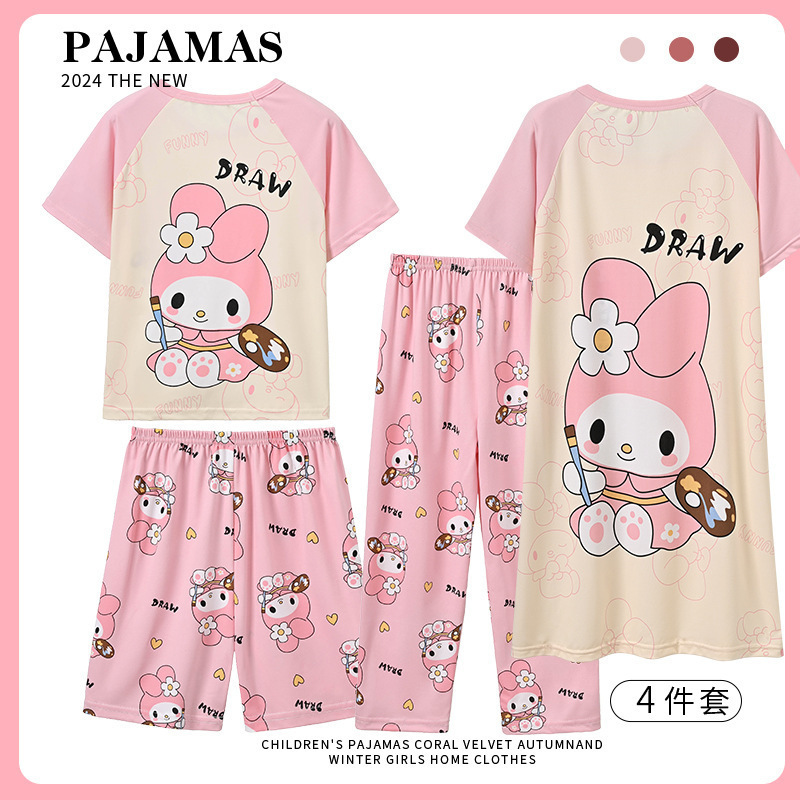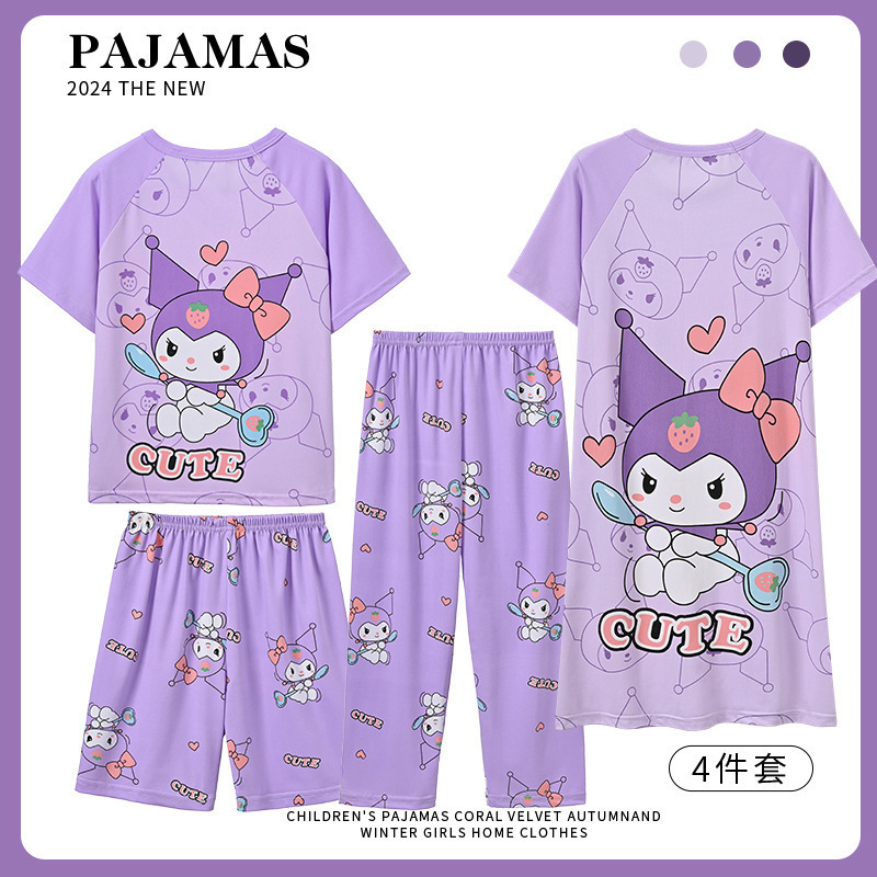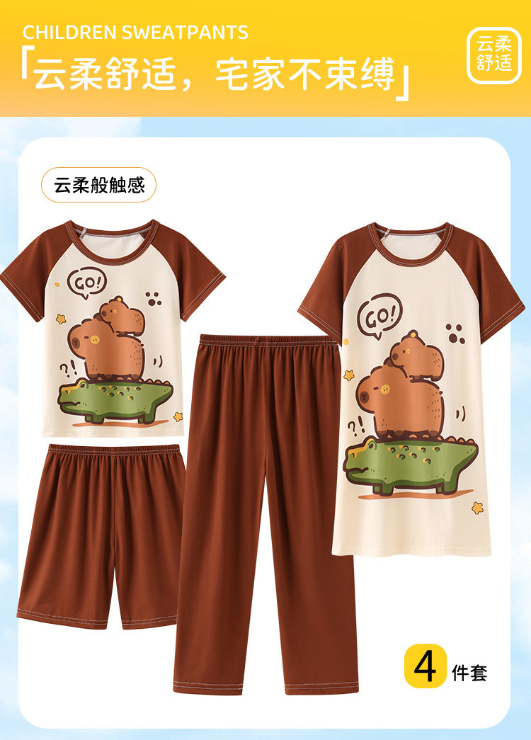 여름 만화 잠옷 4 피스 홈웨어 밀크 실크 어린이 라운드 넥 소녀 반팔 모조 면화 동남 아시아 국경 간스토어 가기