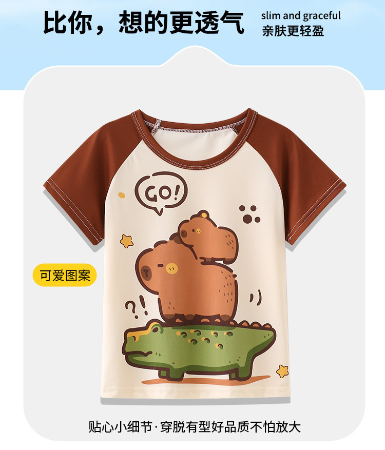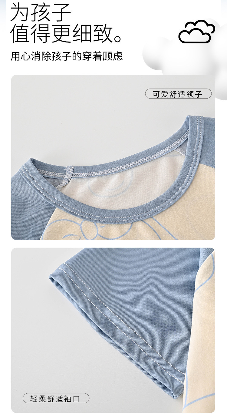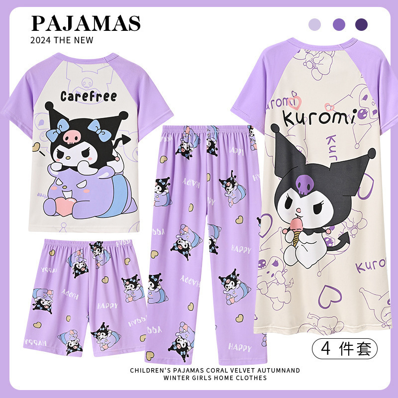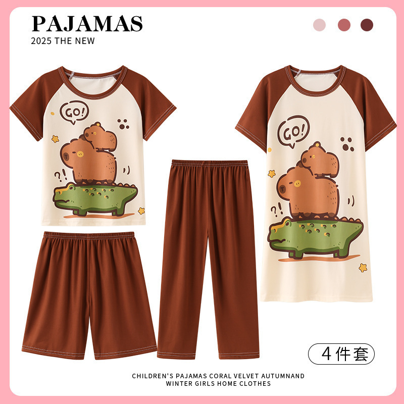 여름 만화 잠옷 4 피스 홈웨어 밀크 실크 어린이 라운드 넥 소녀 반팔 모조 면화 동남 아시아 국경 간스토어 가기