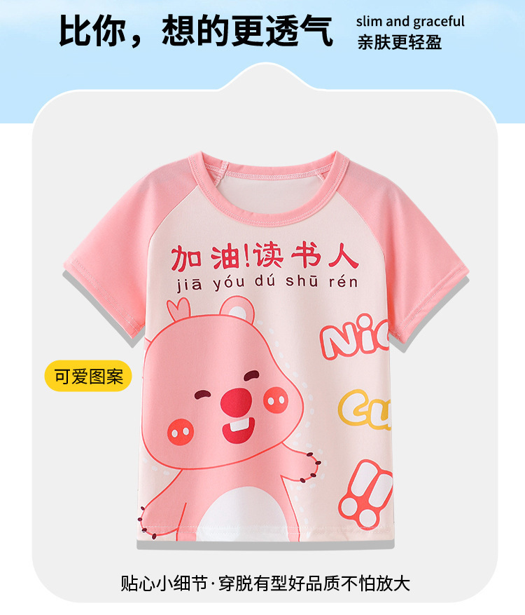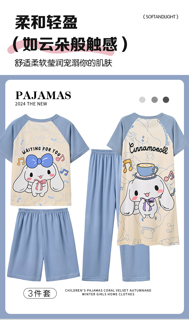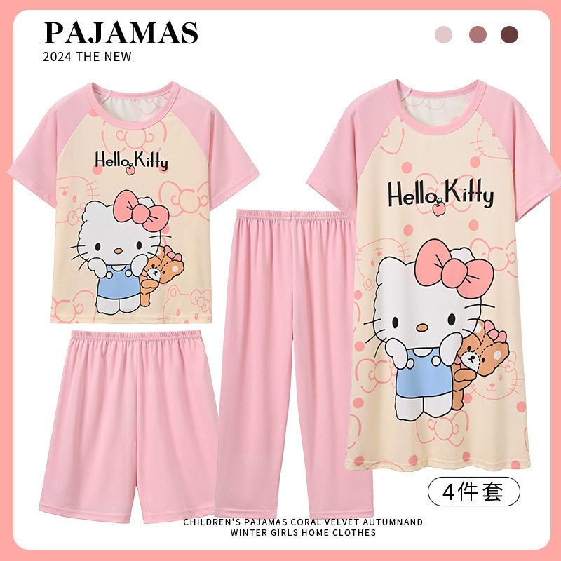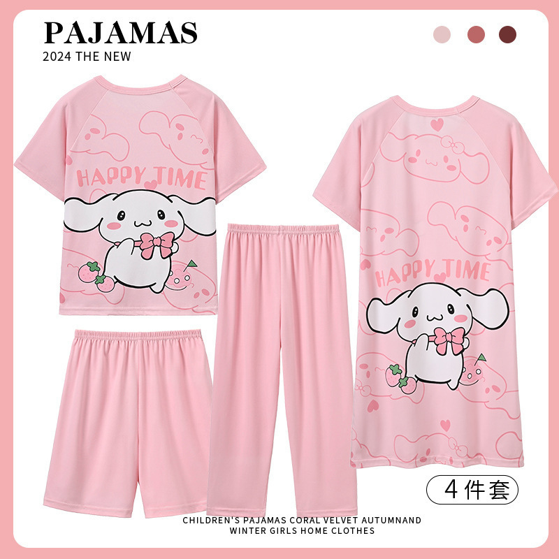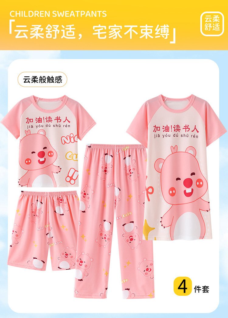 商品详情图_夏季卡通睡裙四件套家居服牛奶丝儿童圆领女孩短袖仿