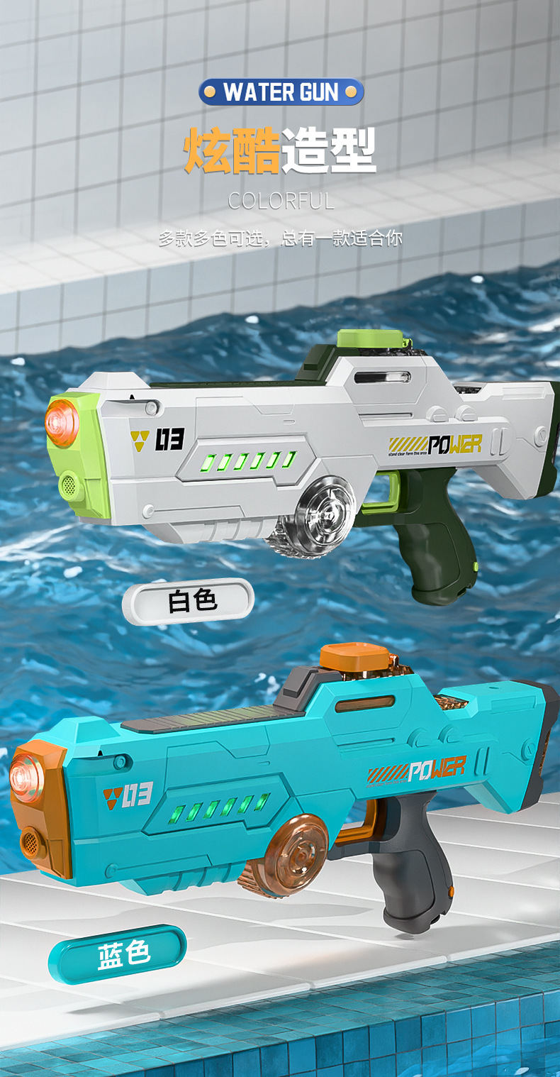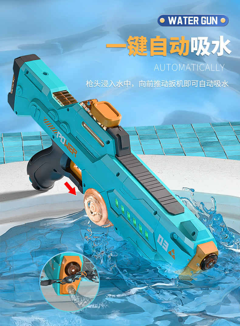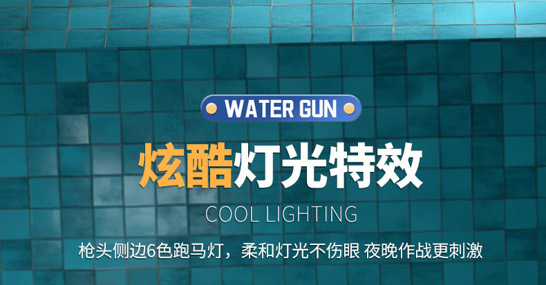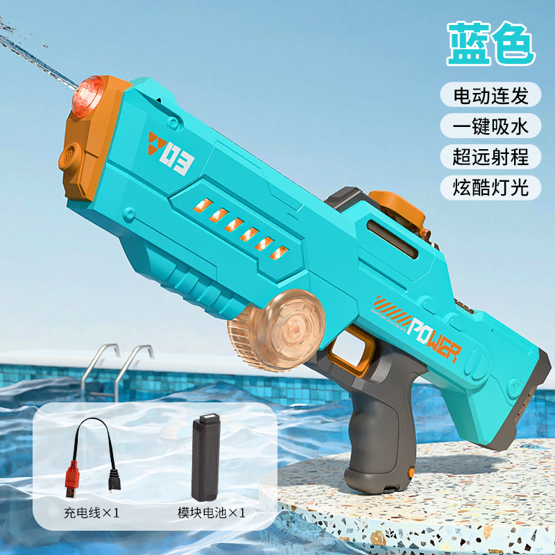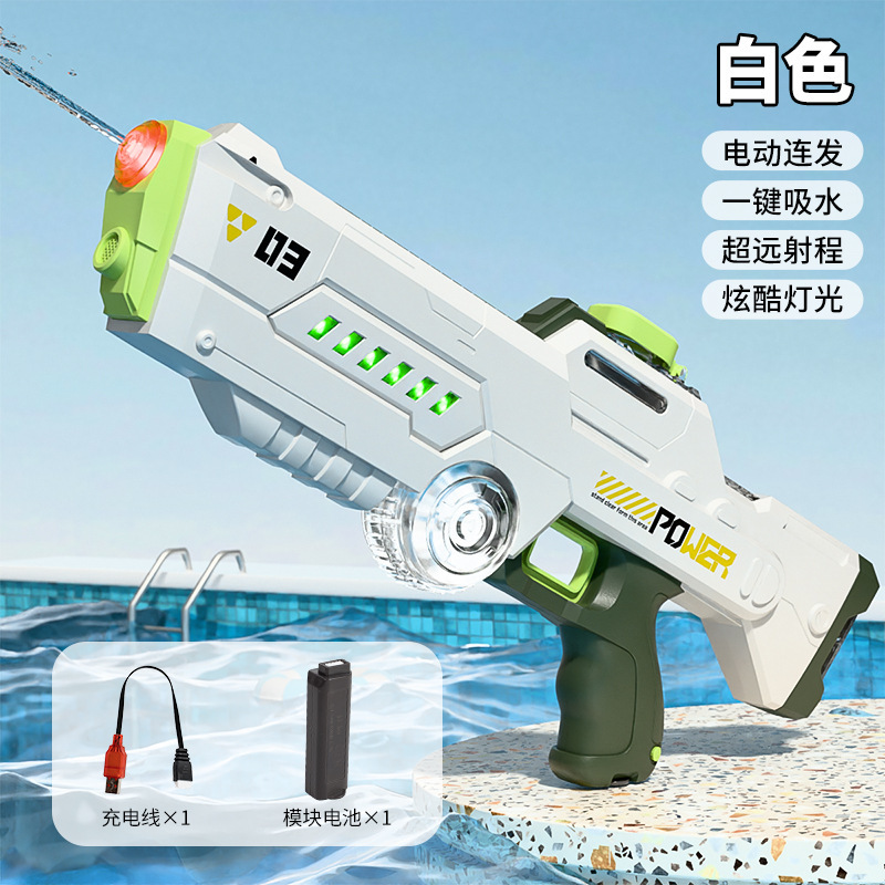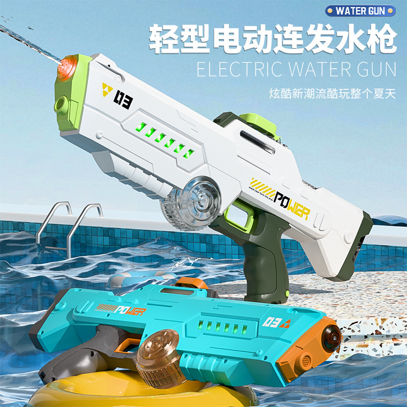 새로운 어린이 전기 물총 자동 물 흡입 전기 버스트 다채로운 조명 충전식 대용량 야외 장난감