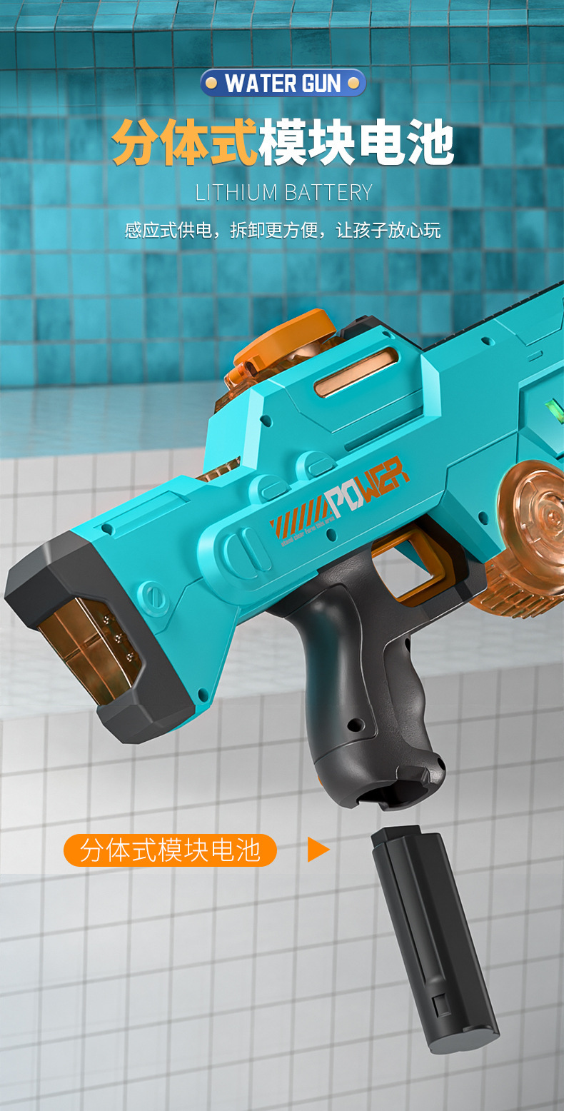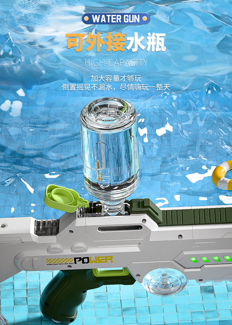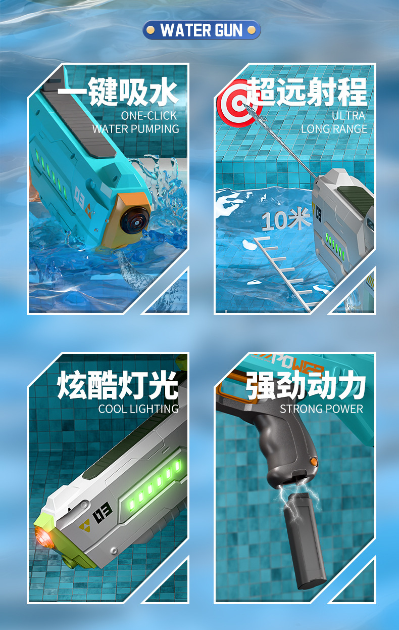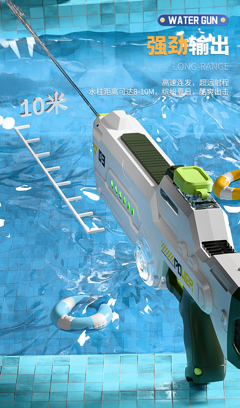 새로운 어린이 전기 물총 자동 물 흡입 전기 버스트 다채로운 조명 충전식 대용량 야외 장난감