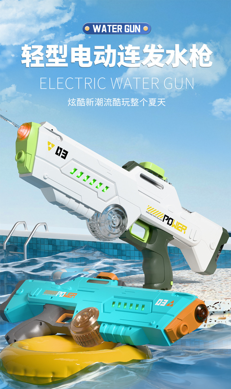 새로운 어린이 전기 물총 자동 물 흡입 전기 버스트 다채로운 조명 충전식 대용량 야외 장난감스토어 가기