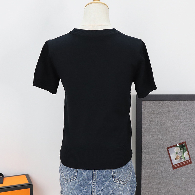 Xiaoxiangfeng 노안 라운드 넥 반팔 티셔츠 여성용 2025 여름 새로운 느슨한 슬리밍 다목적 스웨터 탑 여성용스토어 가기