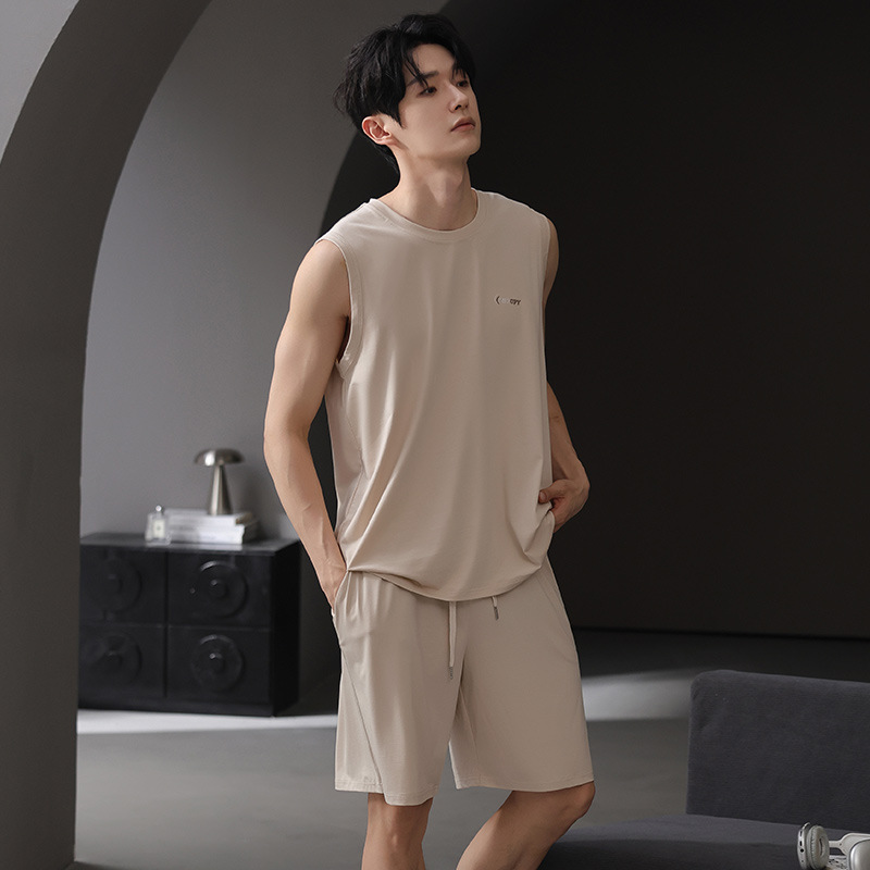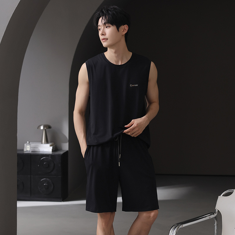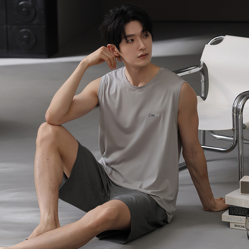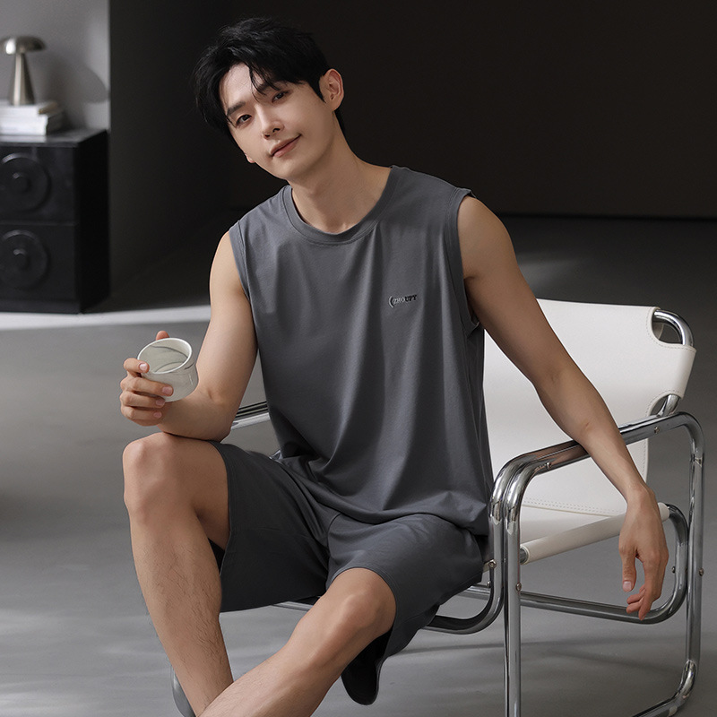 파자마 모달 남성 여름 조끼 반바지 남성 스포츠 얇은 느슨한 양복 조끼 플러스 사이즈 플러스 사이즈 홈웨어