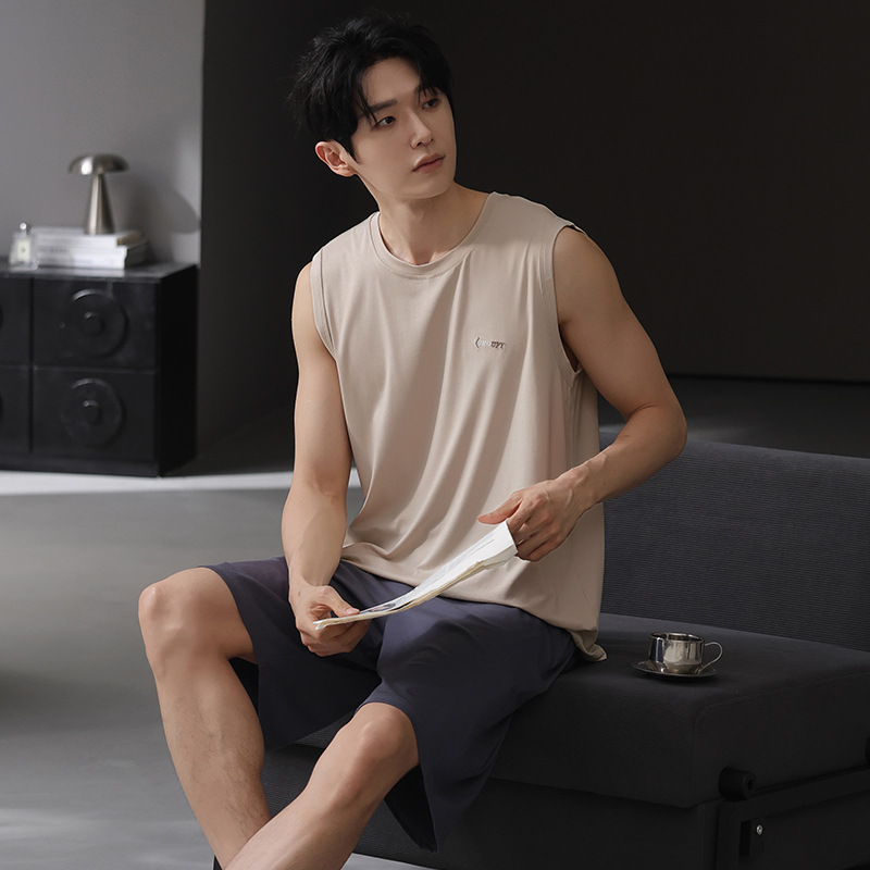 파자마 모달 남성 여름 조끼 반바지 남성 스포츠 얇은 느슨한 양복 조끼 플러스 사이즈 플러스 사이즈 홈웨어스토어 가기