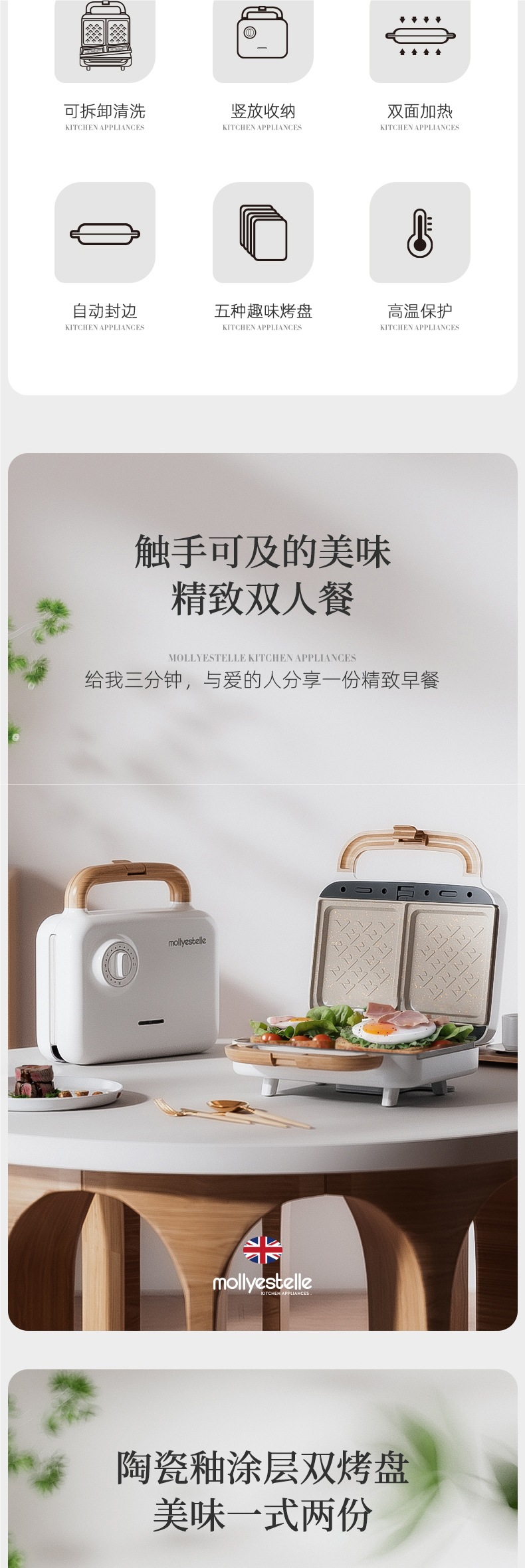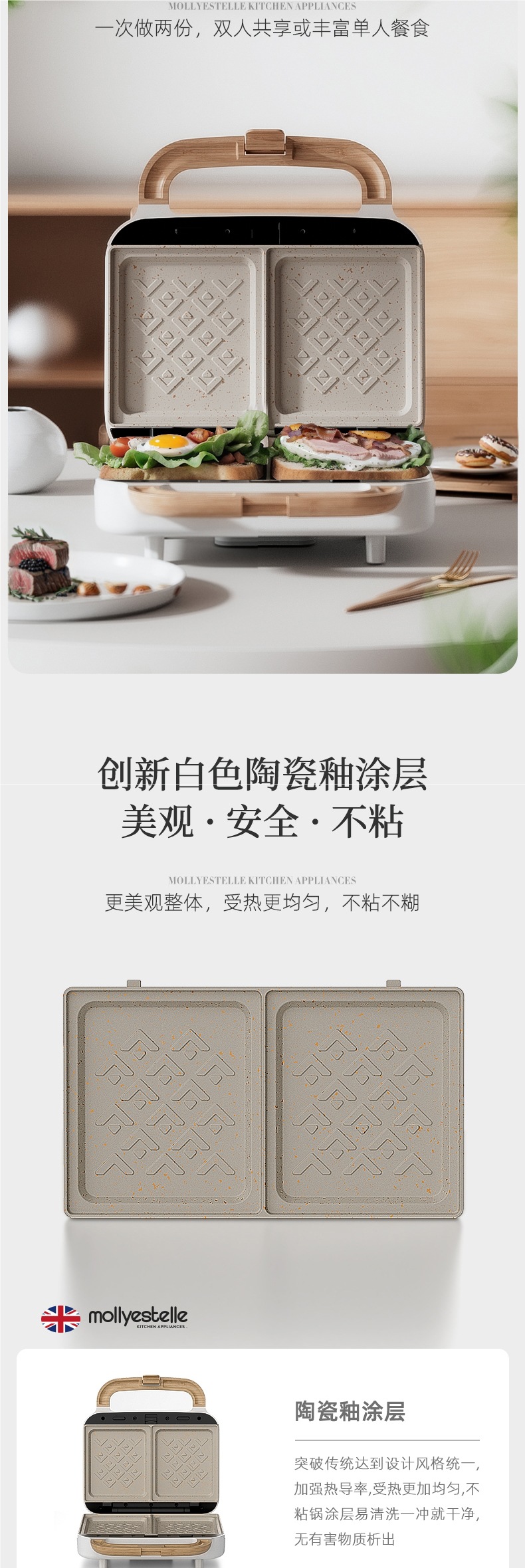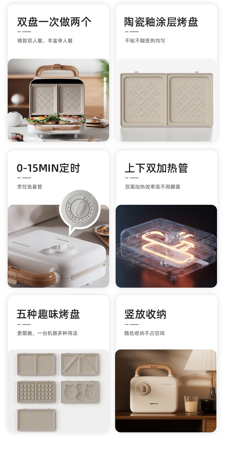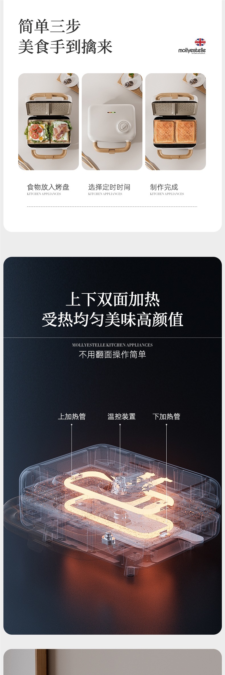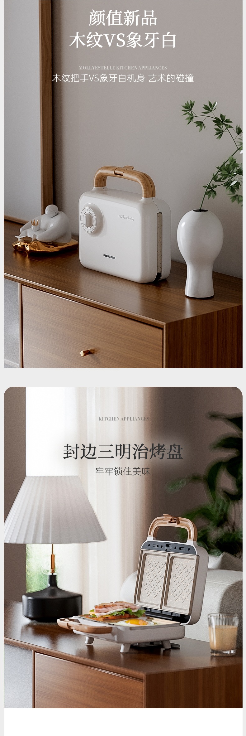 Mollyestelle 더블 플레이트 샌드위치 아침 식사 기계 가정용 타이밍 다기능 와플 가벼운 음식 기계 빵 기계스토어 가기