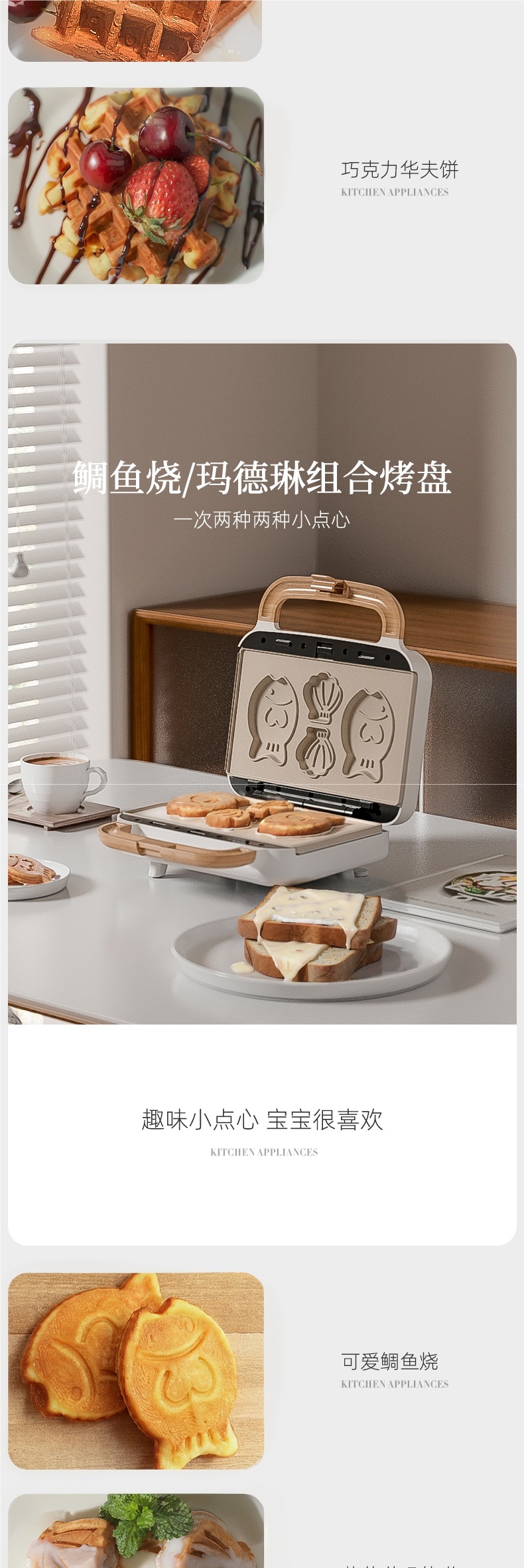• 화이트(샌드위치 플레이트 + 와플 플레이트 + 프라이팬 + 붕어빵 플레이트) 업그레이드된 세라믹 코팅