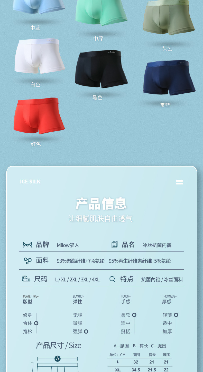 Catman 아이스 실크 초박형 남성 속옷 대형 통기성 남성 복서 항균 속옷 편안한 스포츠 반바지스토어 가기