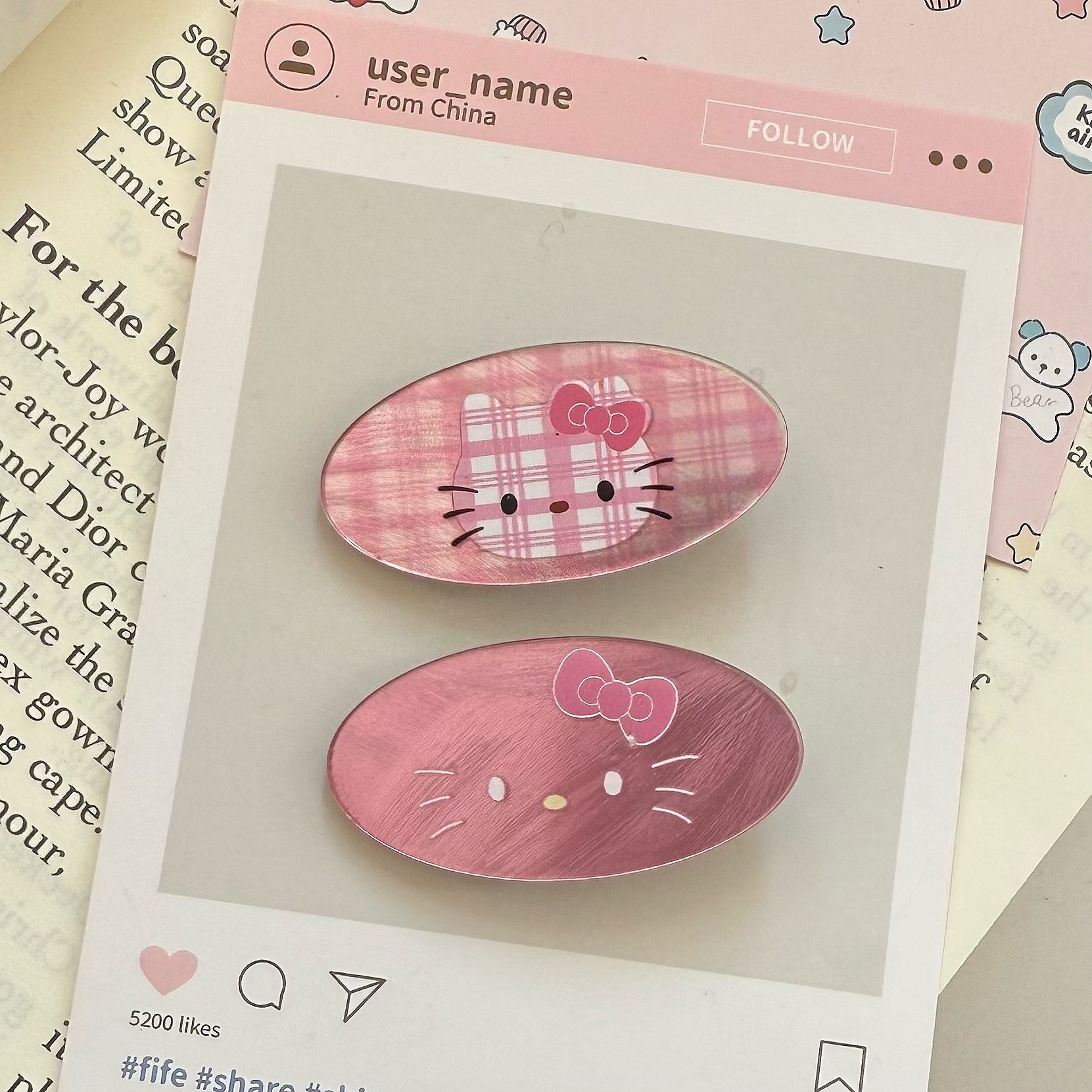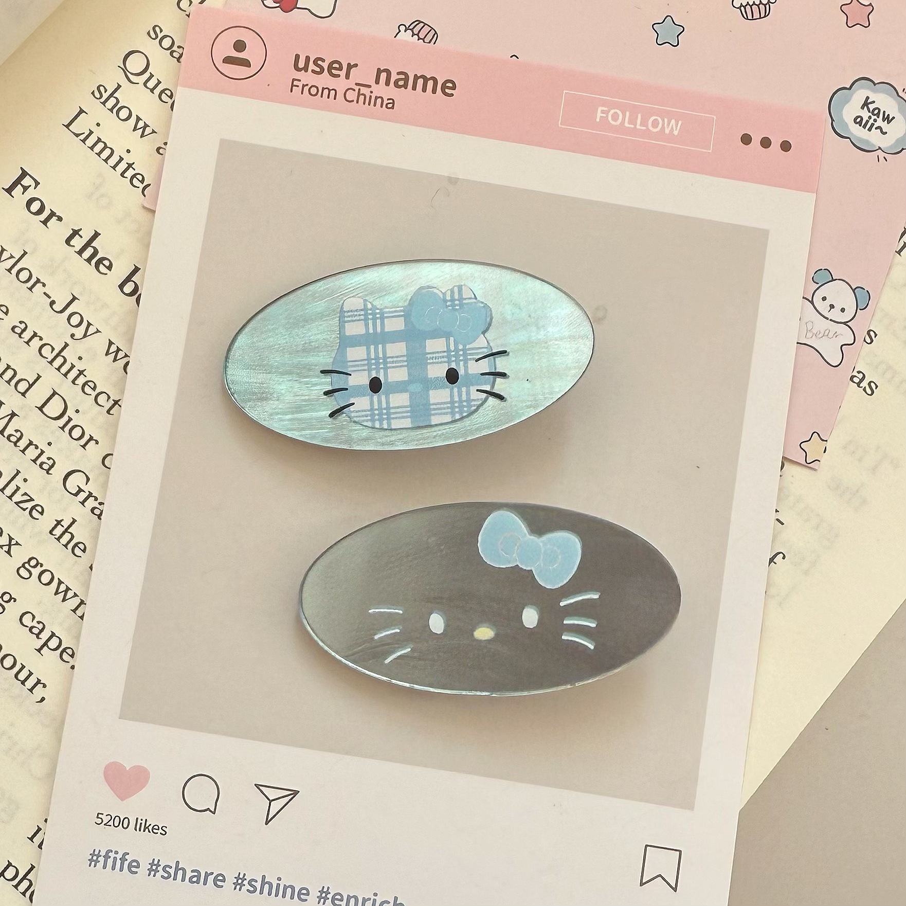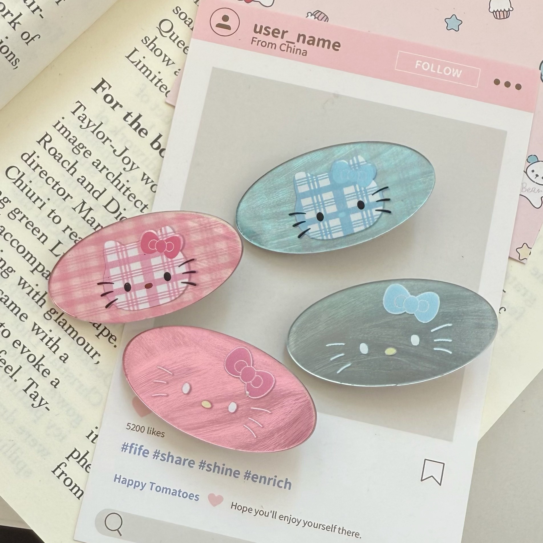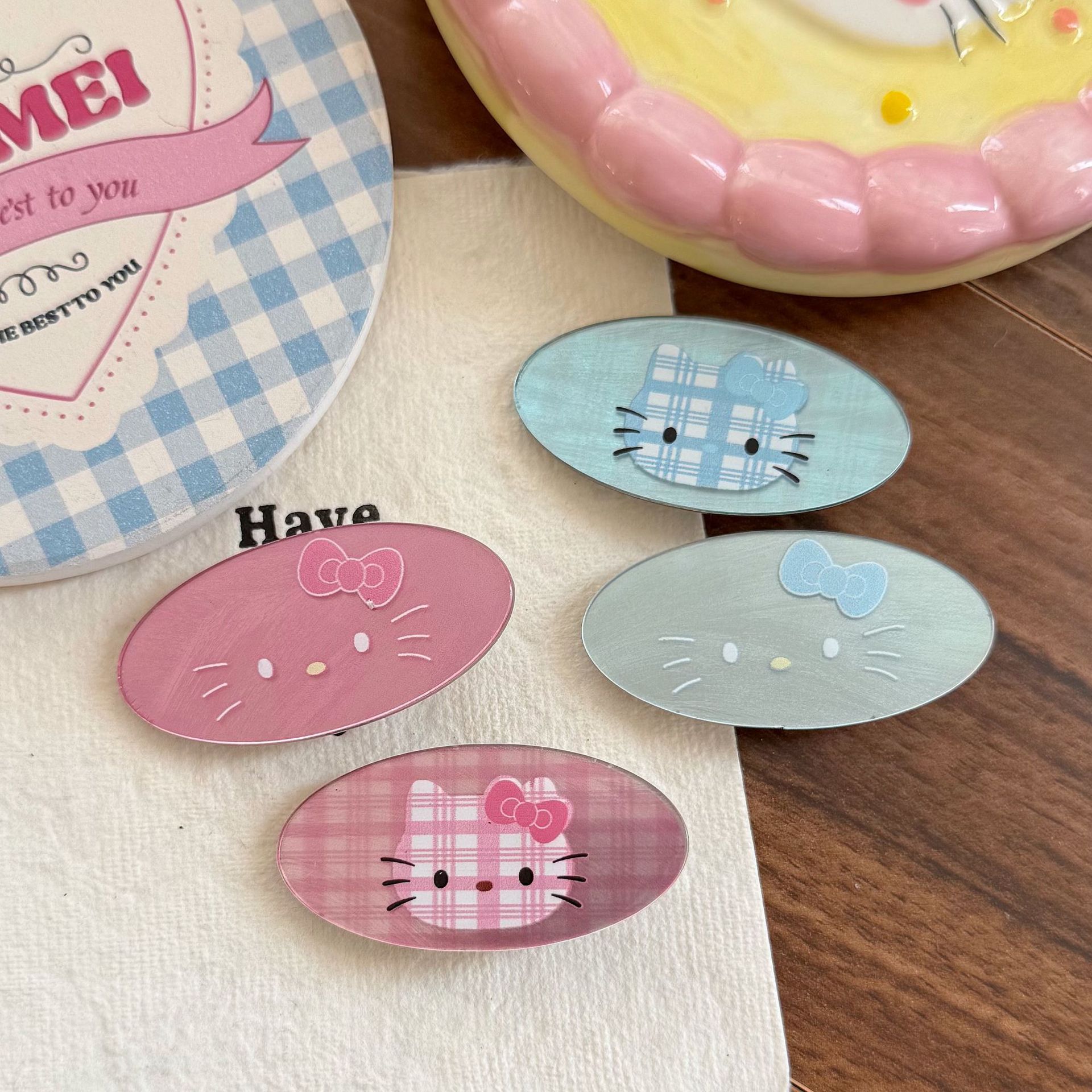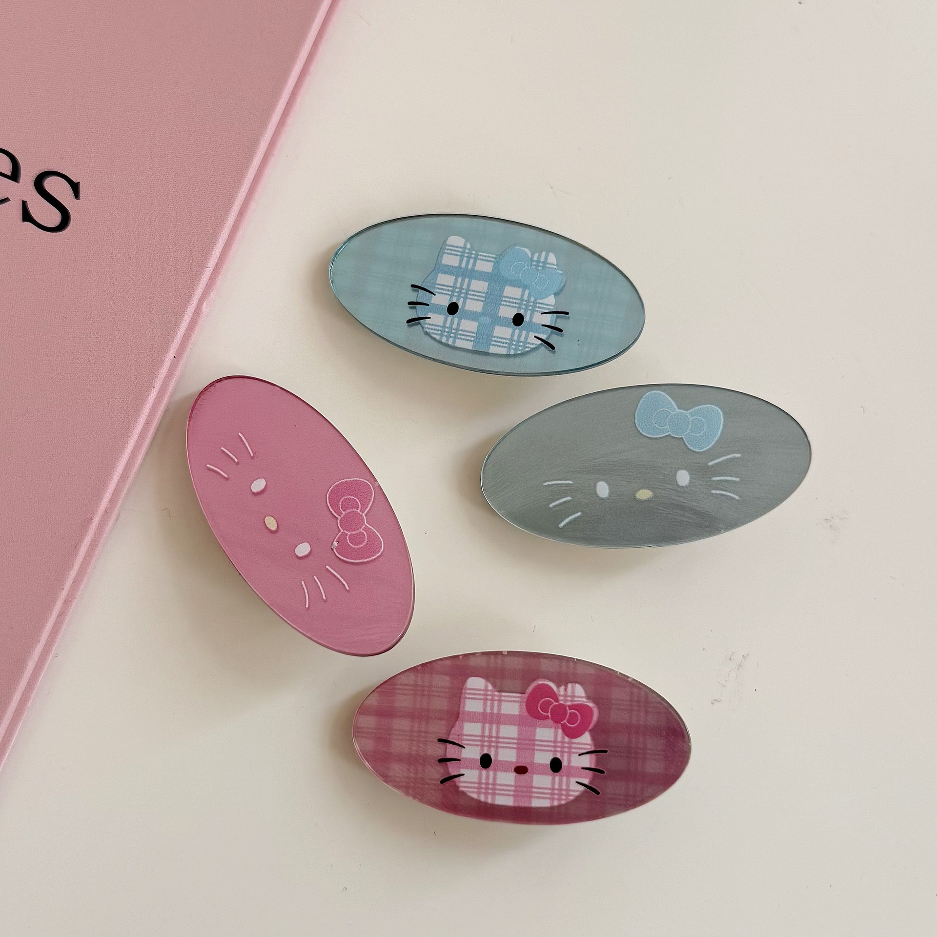 새로운 다채로운 흐르는 골드 타원형 KT 고양이 헤어핀 소녀 하트 뱅 사이드 클립 달콤한 올 매치 만화 헤드웨어 여성
