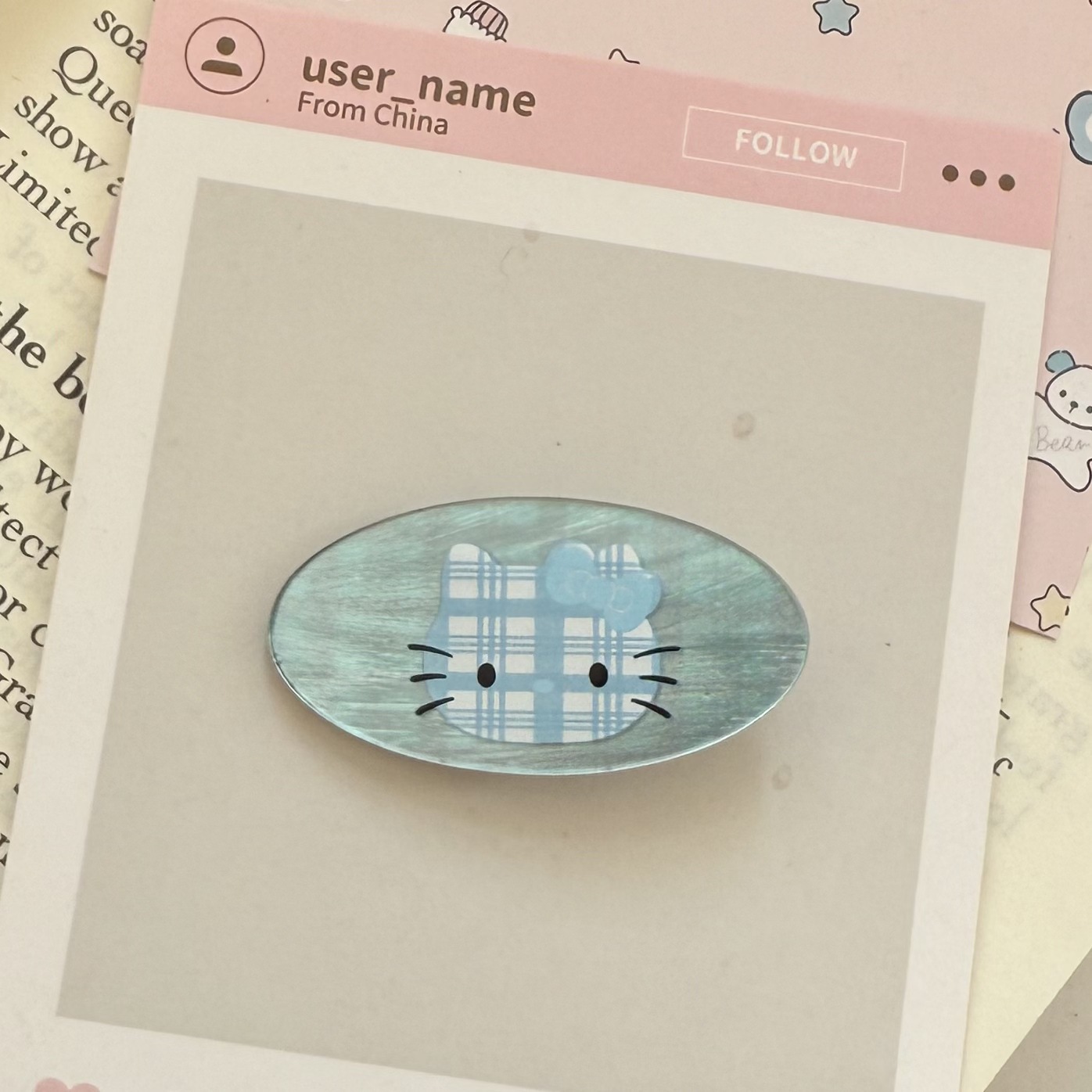 • 골든 KT 타원형 머리핀 [블루 체크 무늬]
