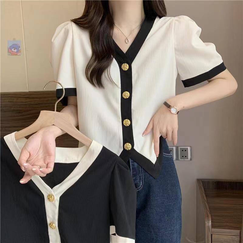 플러스 사이즈 쉬폰 셔츠 흑백 스플리싱 반팔 셔츠 여름 신작 뚱뚱하고 얇은 루즈 캐주얼 향기로운 셔츠스토어 가기