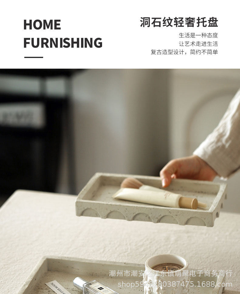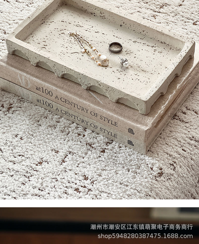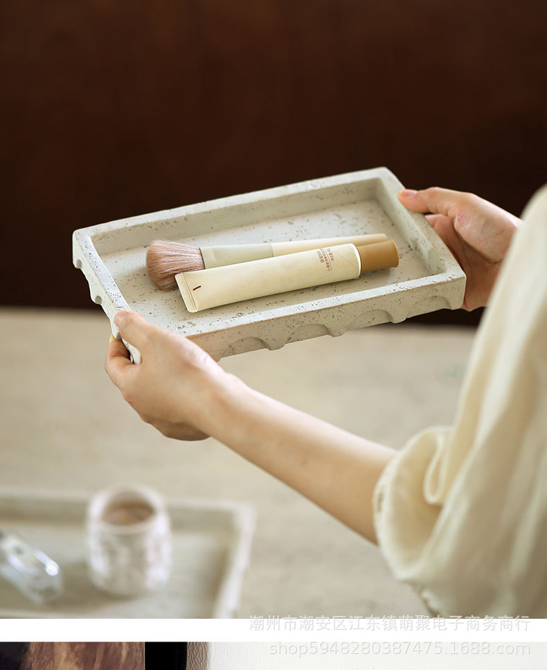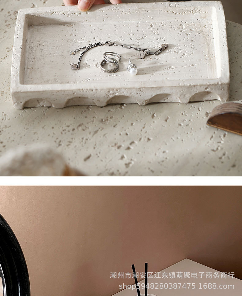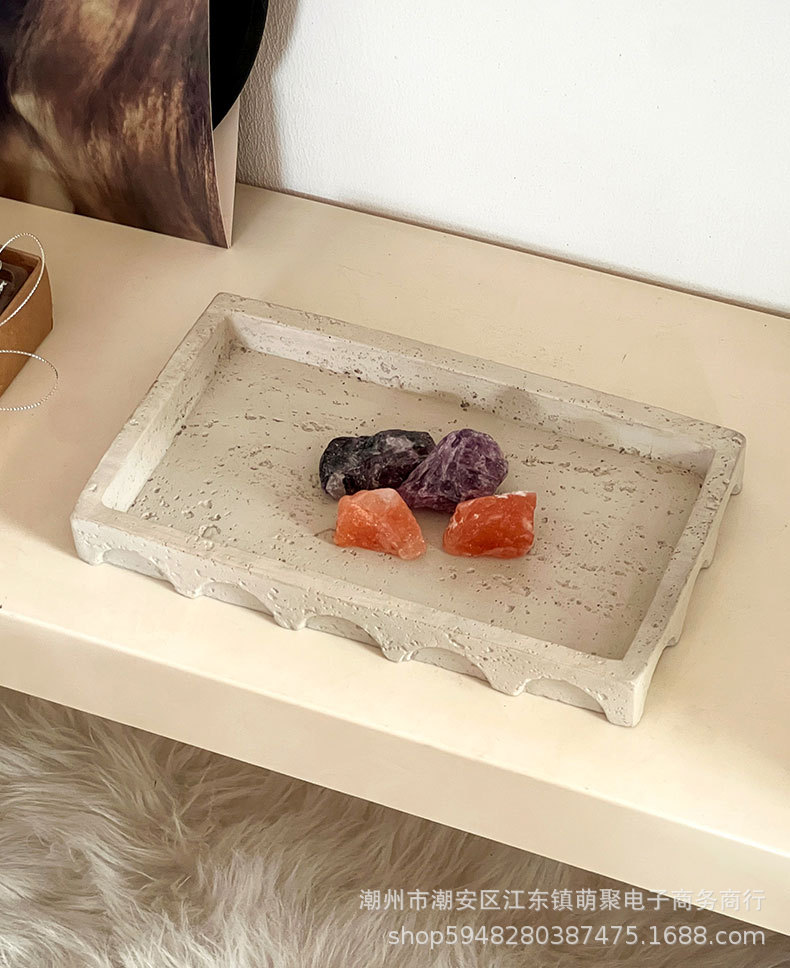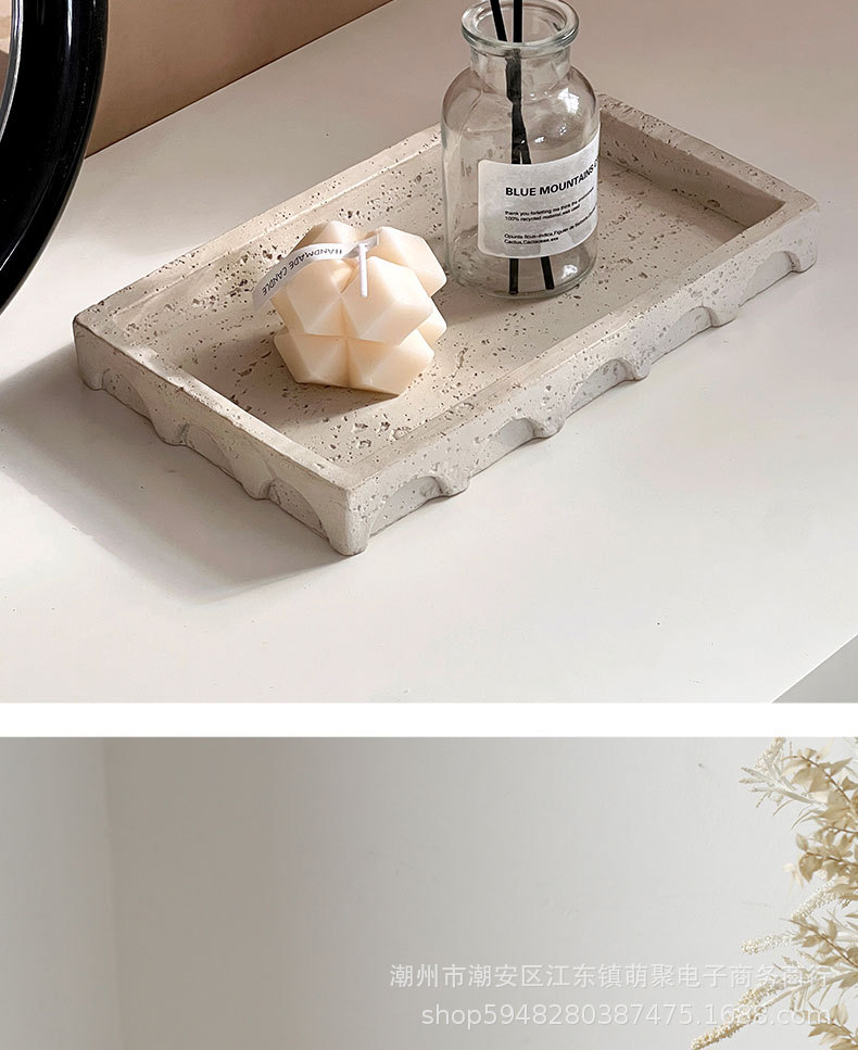 밤나무 돌 스타일 빈티지 베이지 모방 동시 트레이 데스크탑 장식 홈스테이 모델 룸 욕실 보관 장식 플레이트스토어 가기