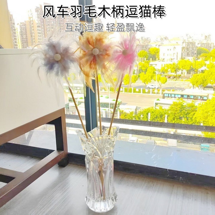 고양이 장난감 새로운 재미 있은 고양이 스틱 큰 풍차 깃털 재미 있은 고양이 장난감 인터랙티브 벨 애완 동물 용품 도매