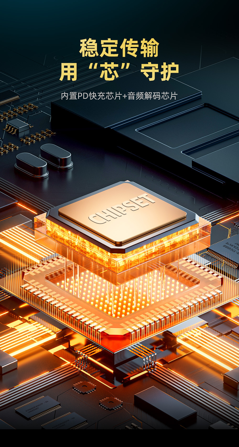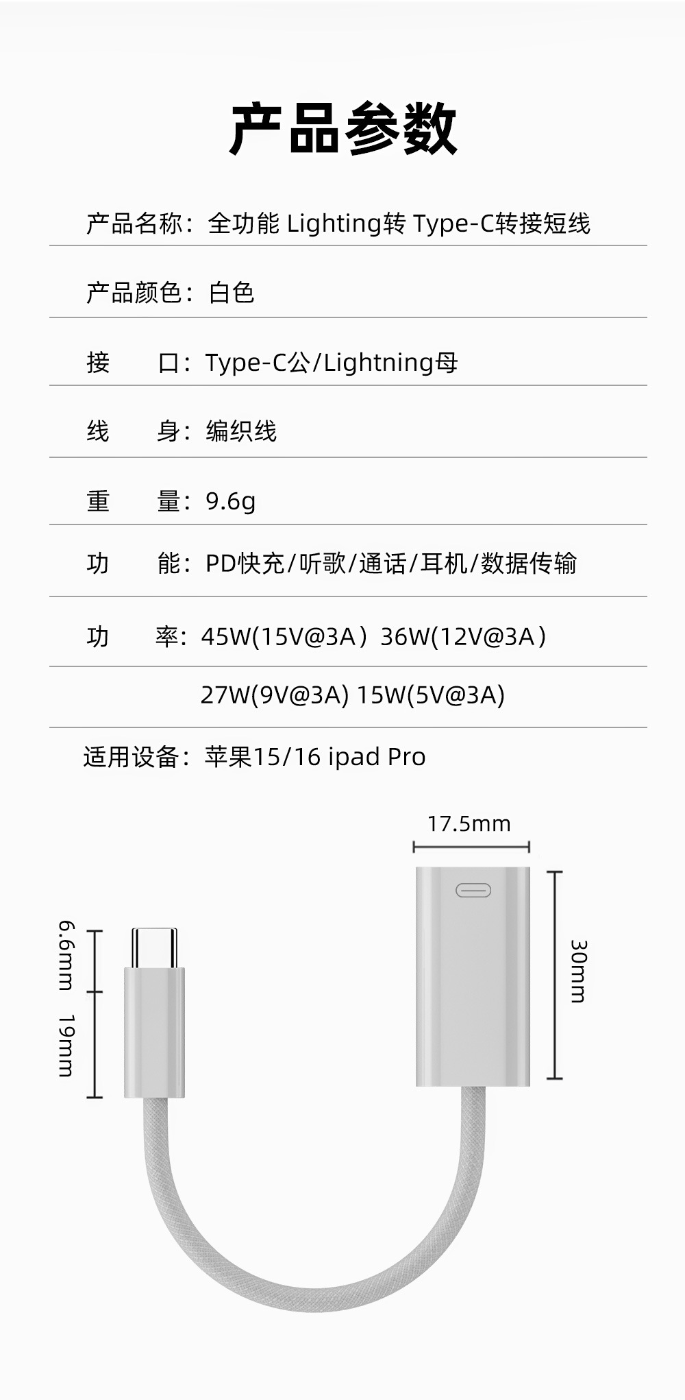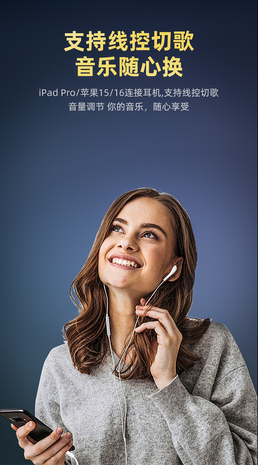 • Type C에서 Lightning까지 음악 듣기 + 유선 제어 + 통화 + 고속 충전 + 데이터 모든 기능을 갖춘 모델