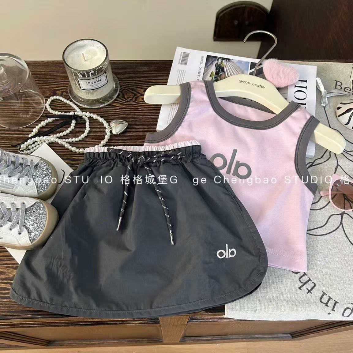 여자 조끼 세트 2025 여름 새 아동복 한국 스타일 유행 아기 작업복 스커트 투피스 세트스토어 가기