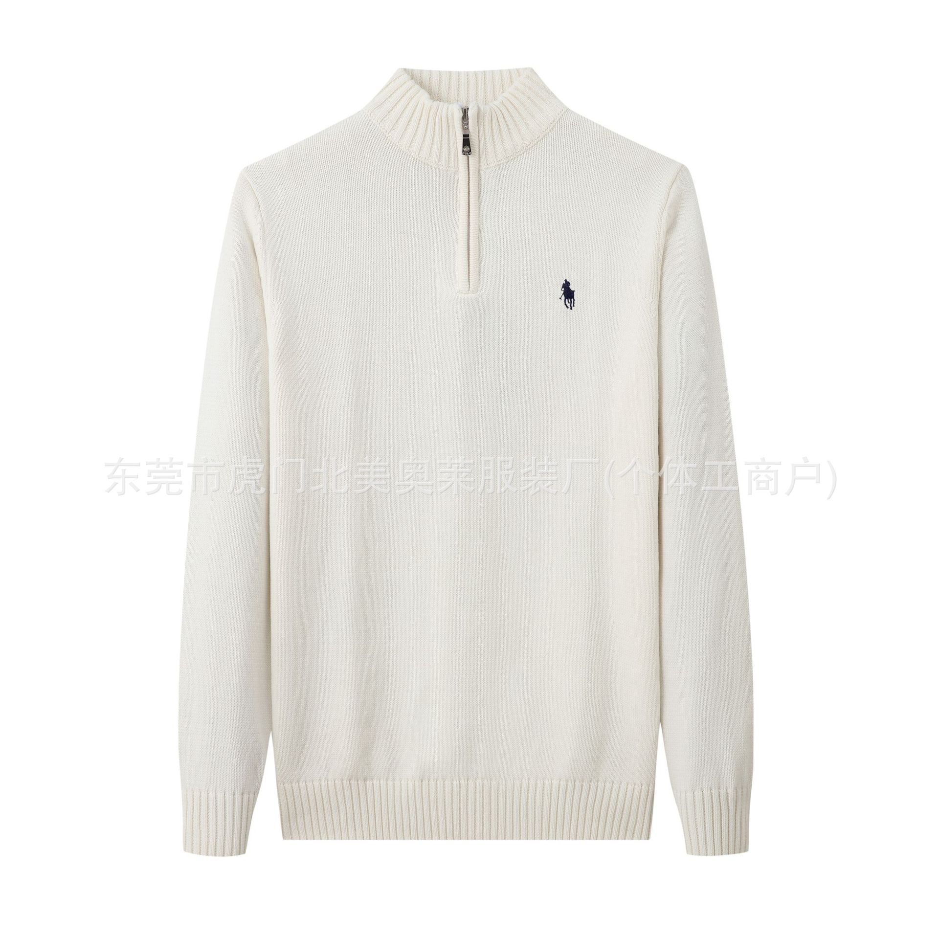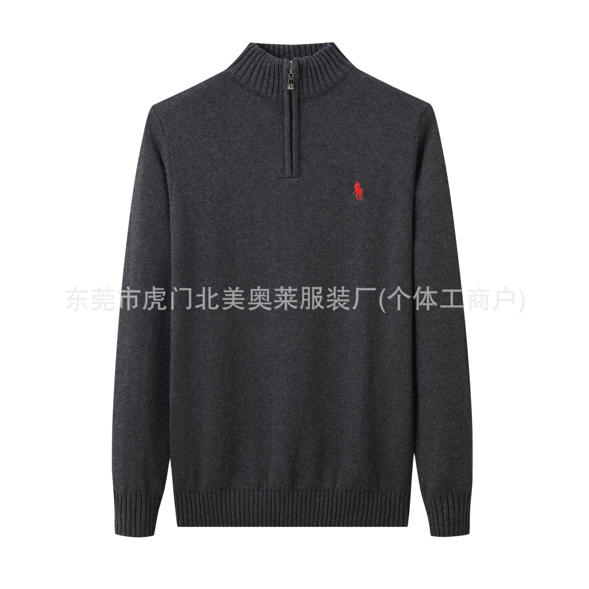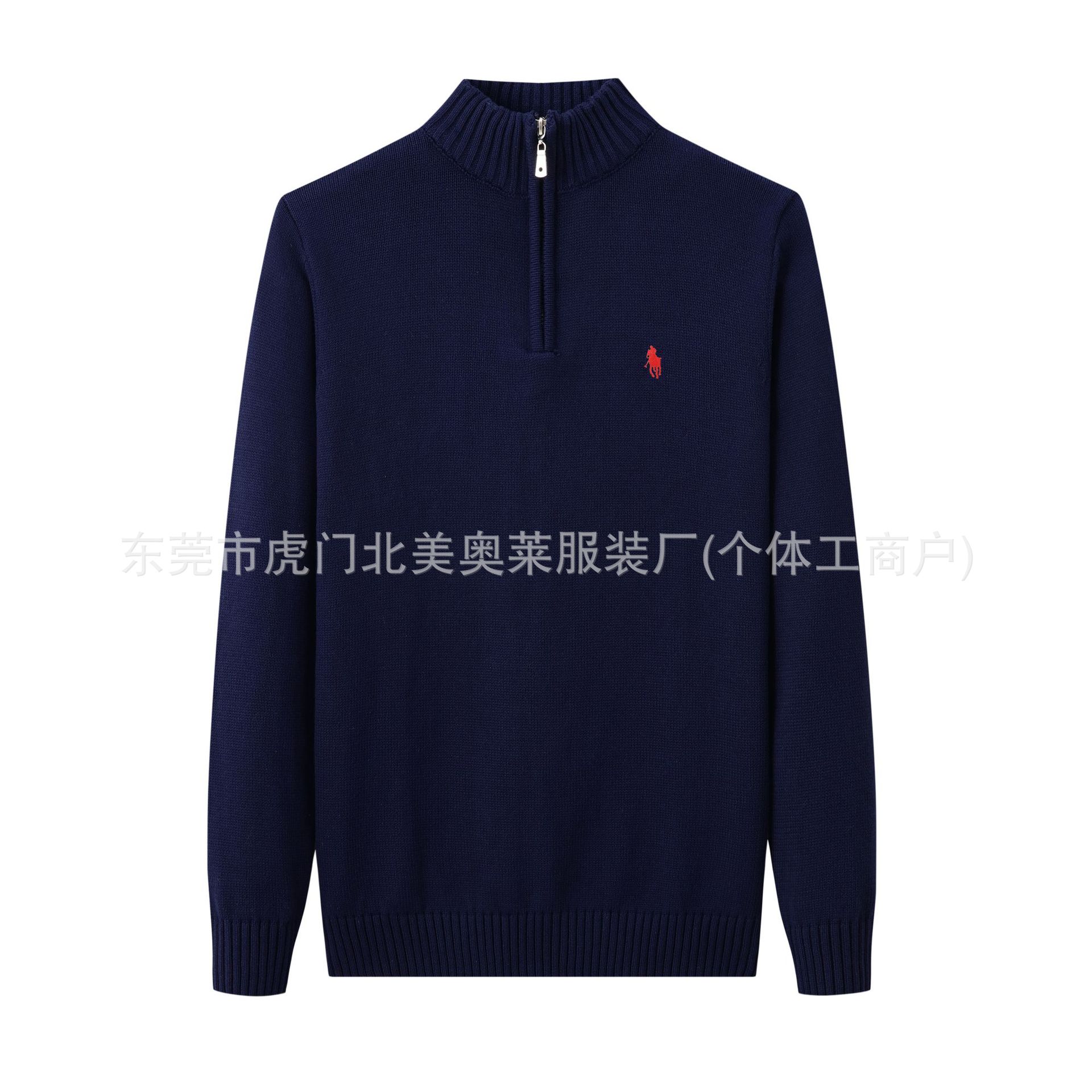 가을, 겨울 새로운 RL 포니 로고 남성 스웨터 스탠드 칼라 지퍼 풀오버 폴 스웨터 남성 순수 코튼 자수 스웨터스토어 가기