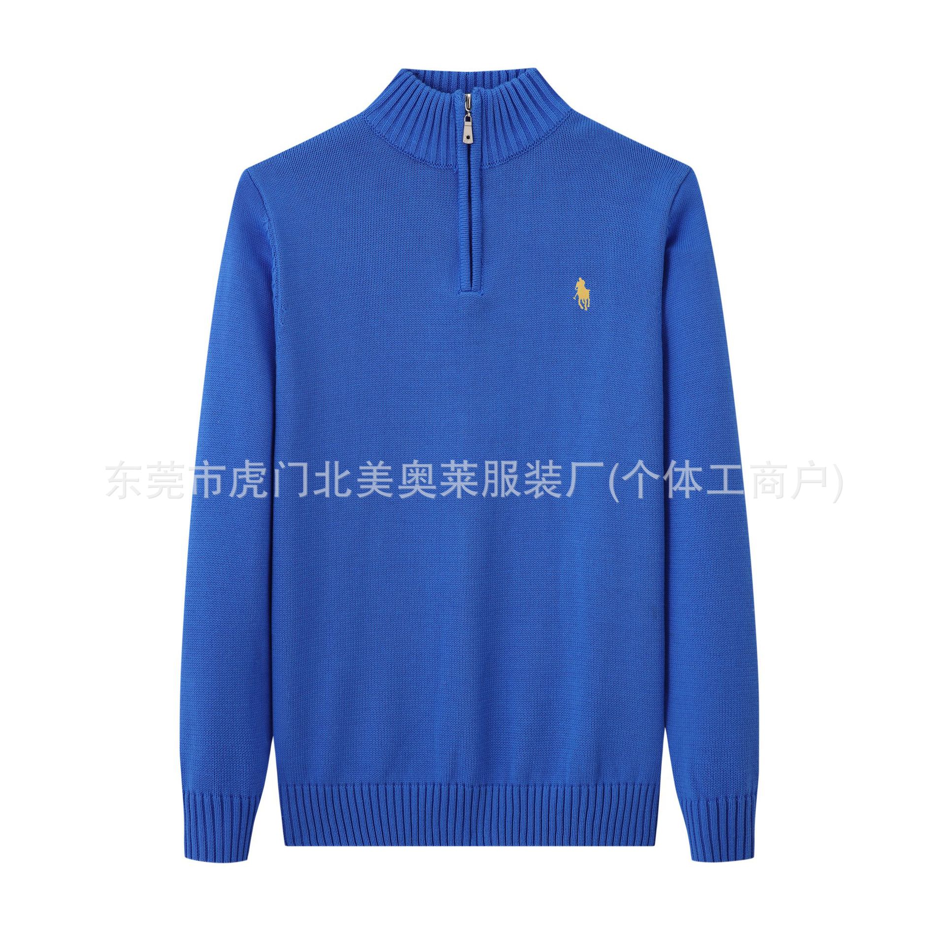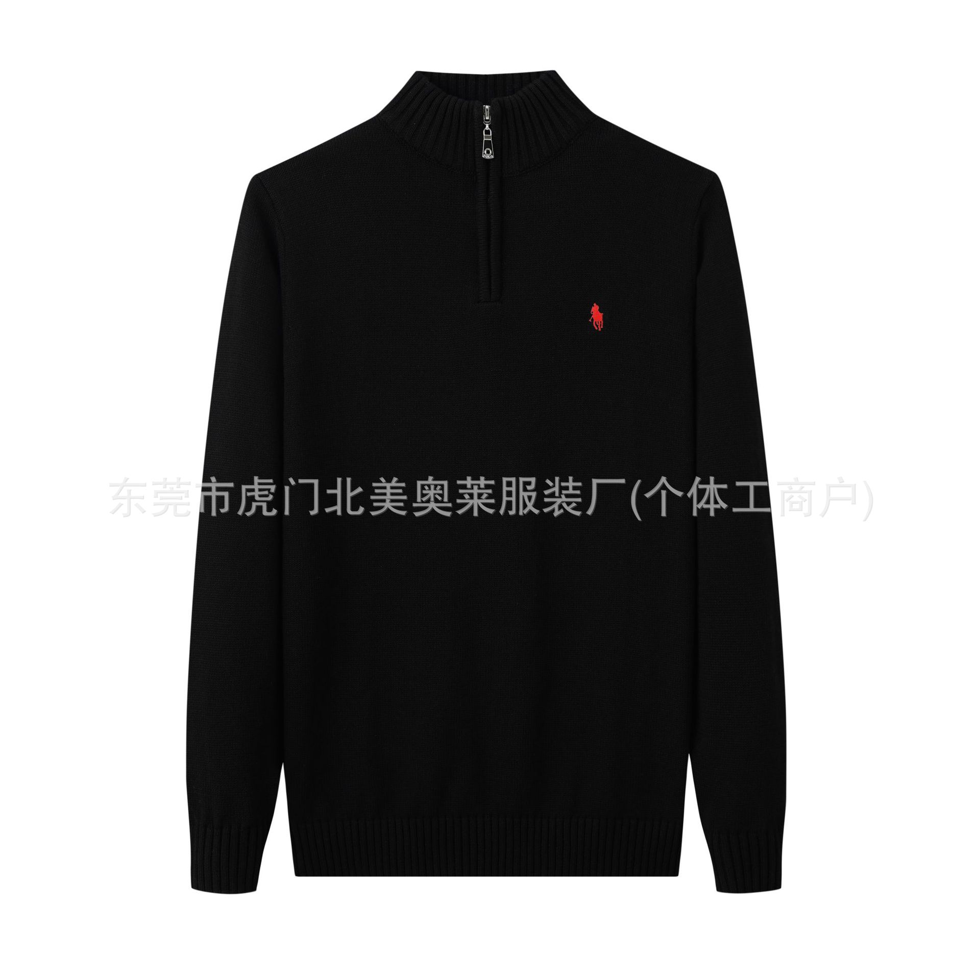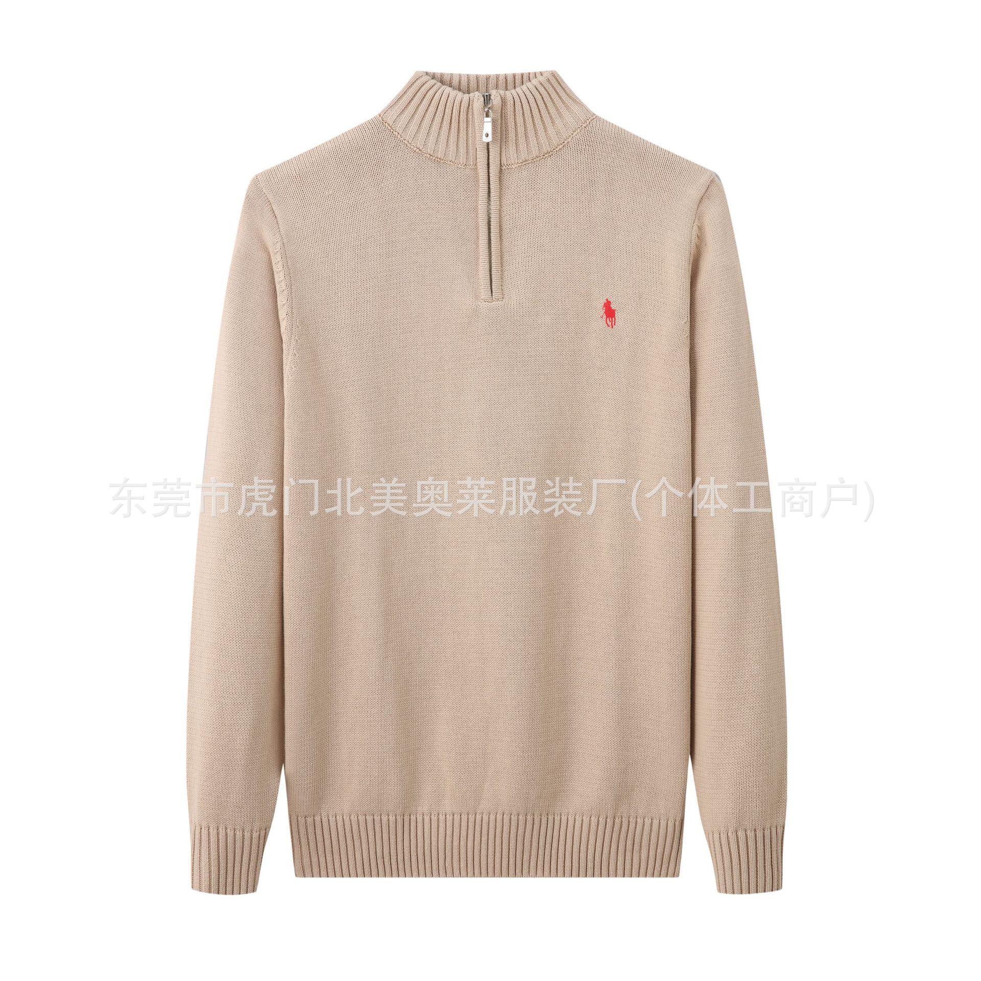 가을, 겨울 새로운 RL 포니 로고 남성 스웨터 스탠드 칼라 지퍼 풀오버 폴 스웨터 남성 순수 코튼 자수 스웨터스토어 가기