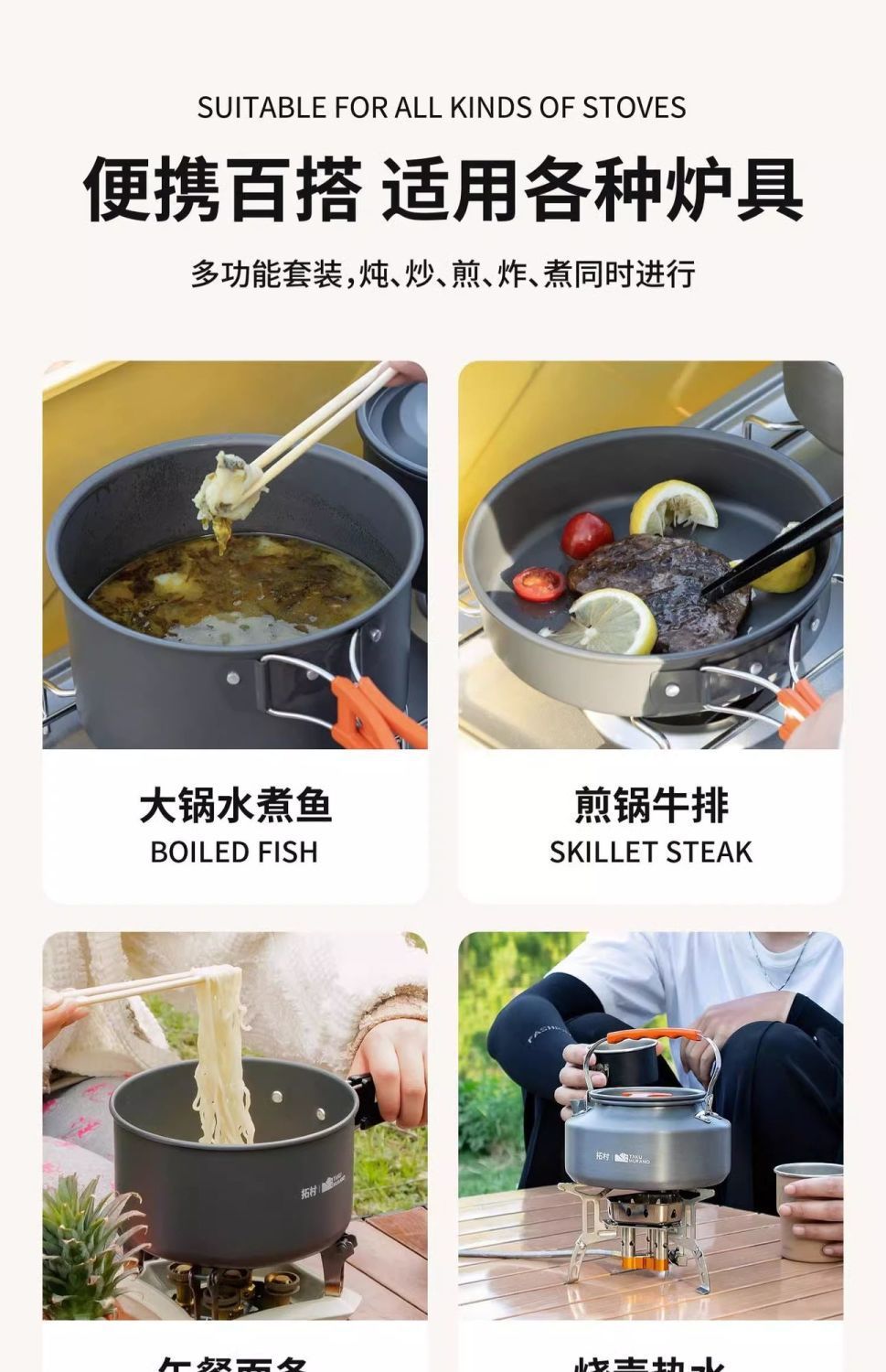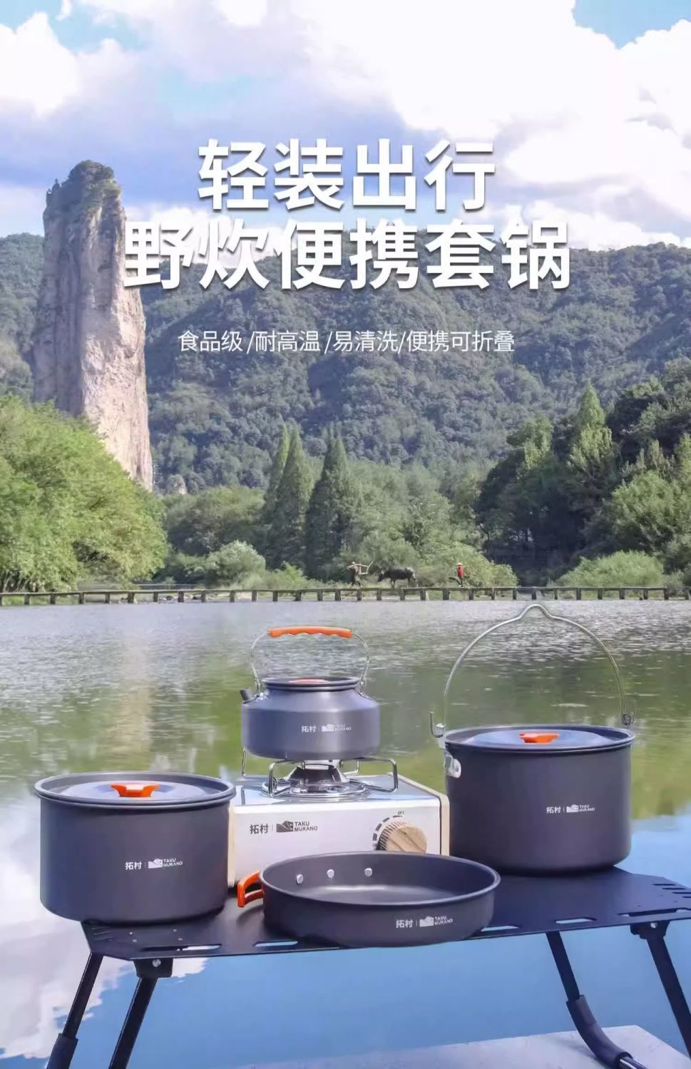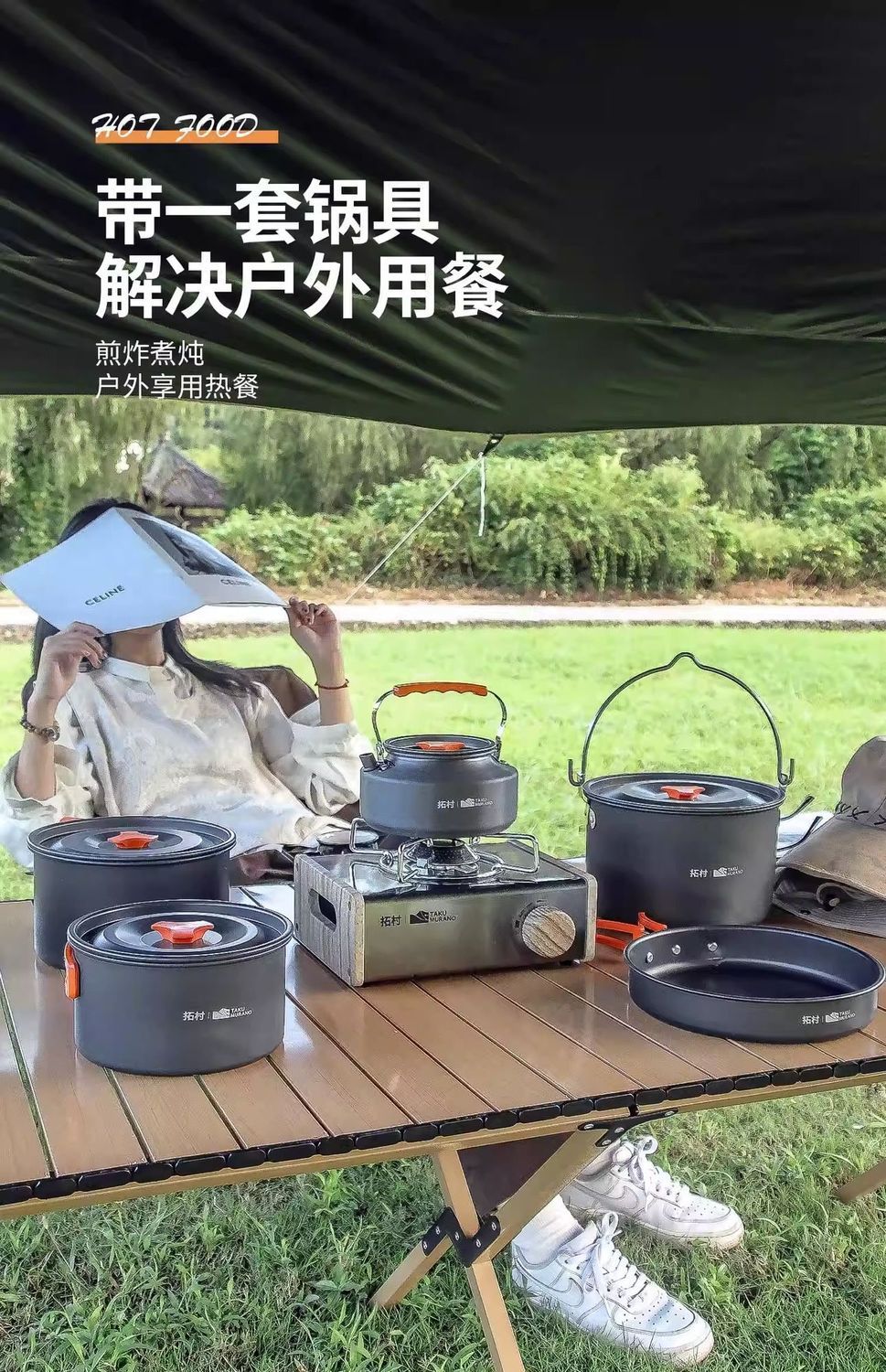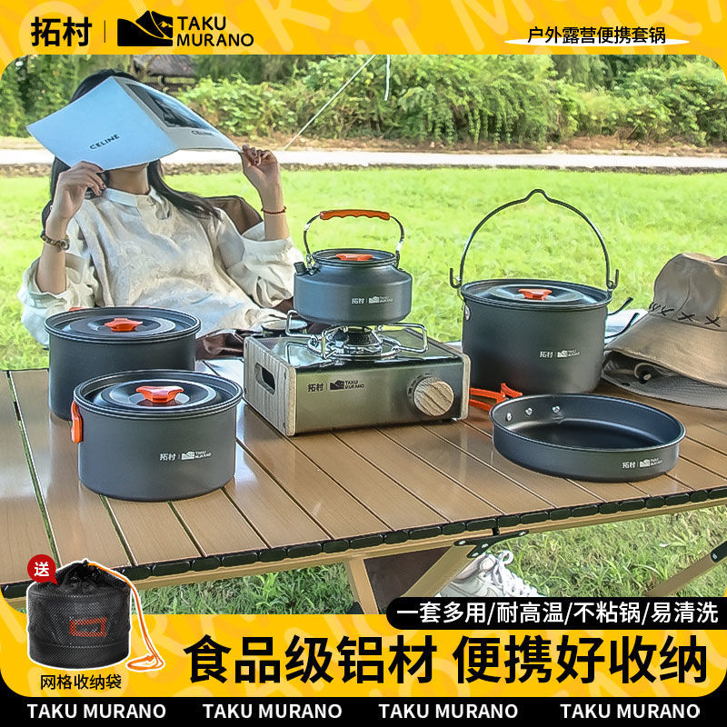 Tuocun 야외 냄비 캠핑 프라이팬 요리 냄비 물 주전자 휴대용 야외 캠핑 냄비 세트 조리기구 용품 세트스토어 가기