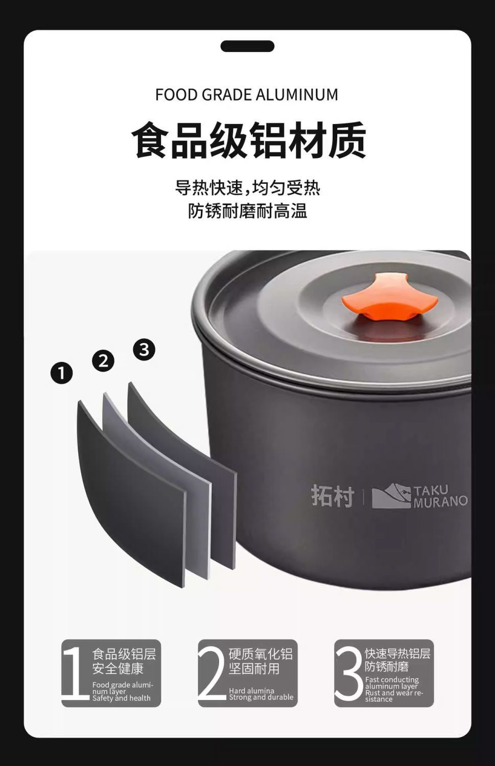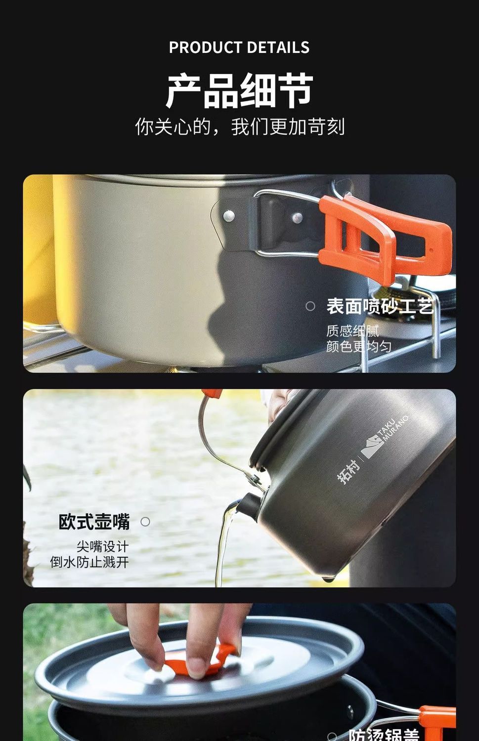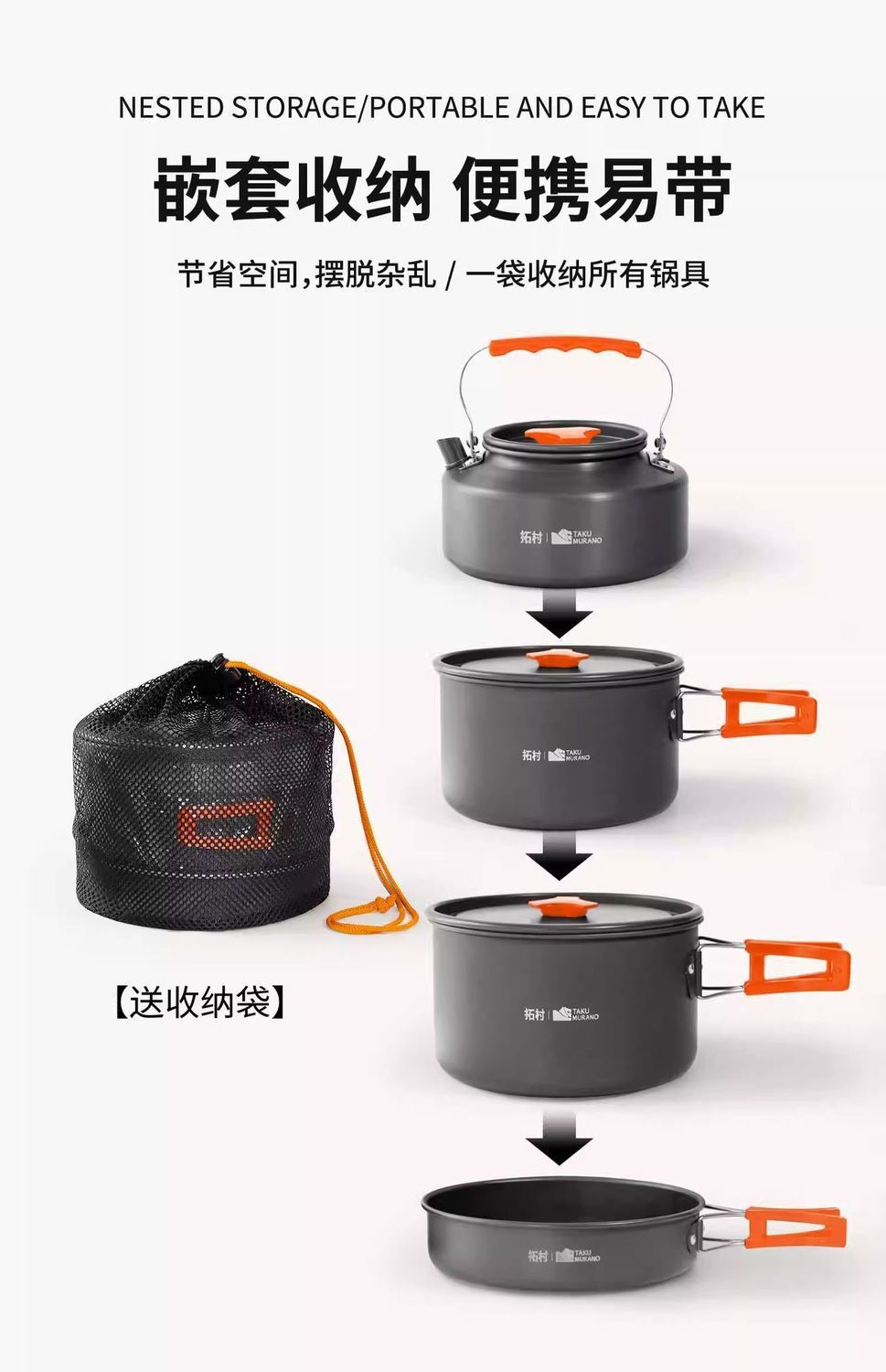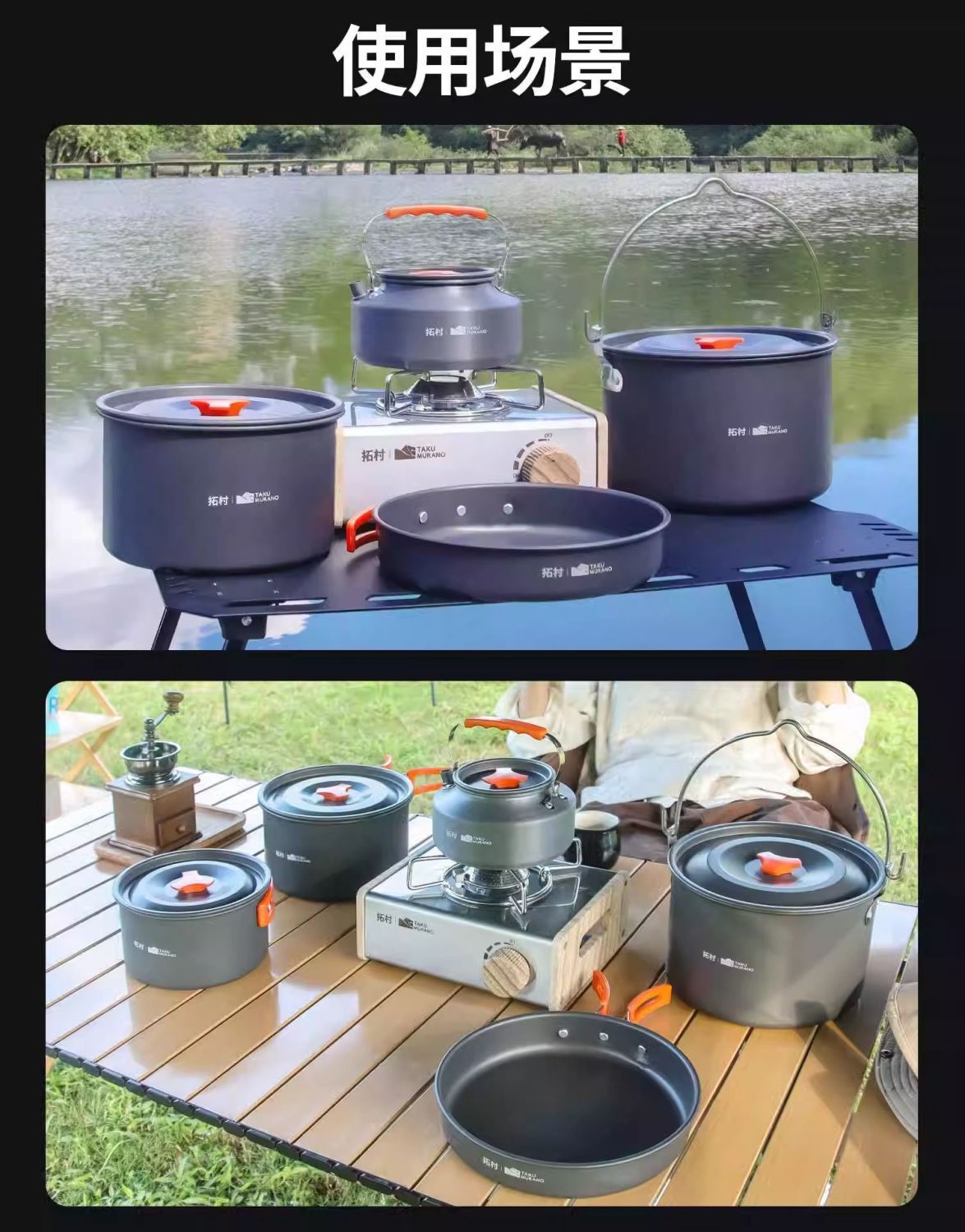 Tuocun 야외 냄비 캠핑 프라이팬 요리 냄비 물 주전자 휴대용 야외 캠핑 냄비 세트 조리기구 용품 세트스토어 가기