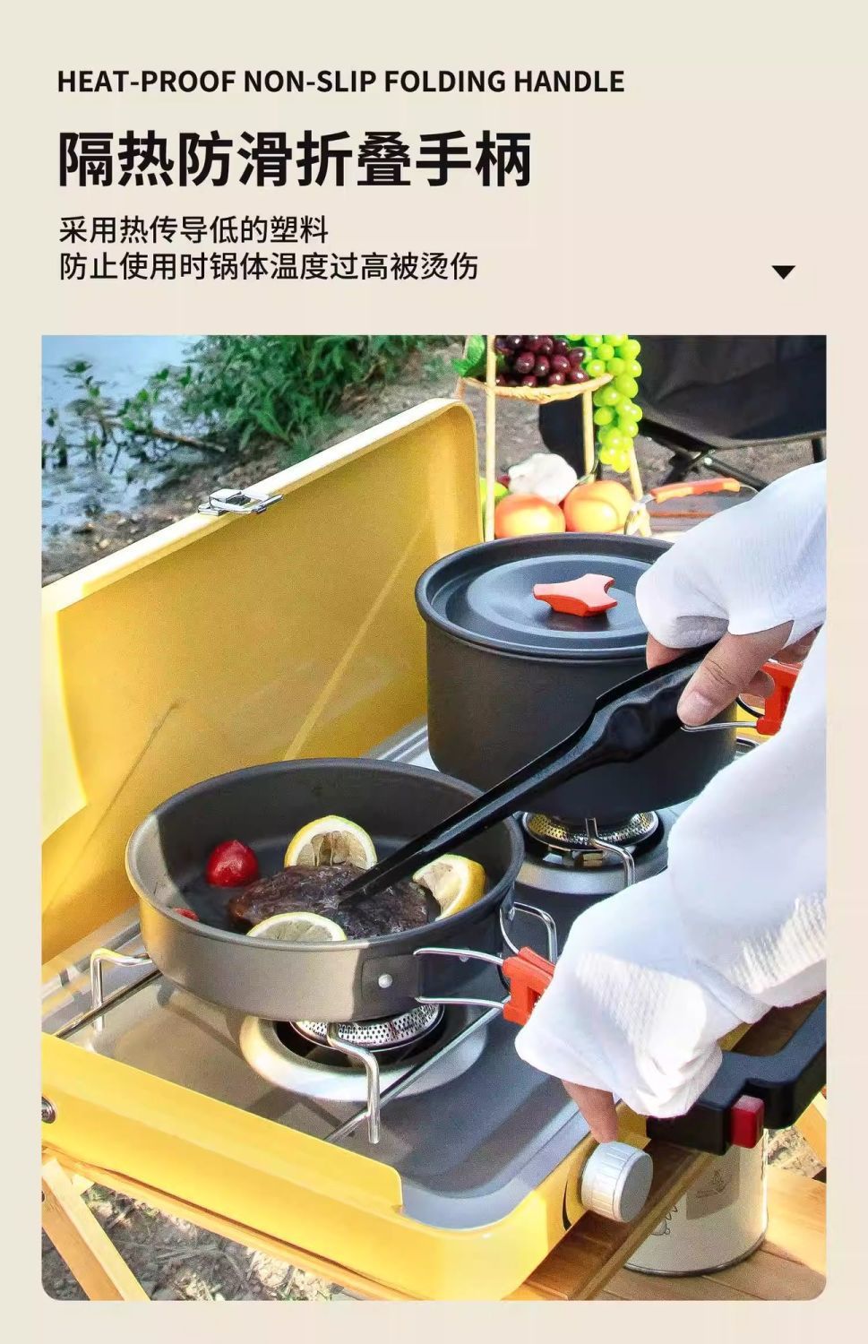 Tuocun 야외 냄비 캠핑 프라이팬 요리 냄비 물 주전자 휴대용 야외 캠핑 냄비 세트 조리기구 용품 세트