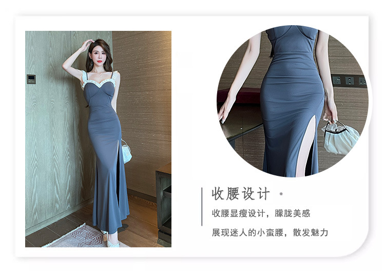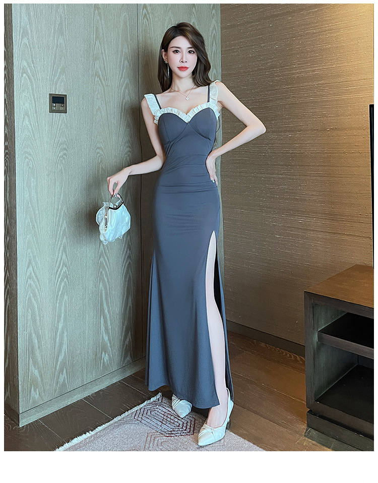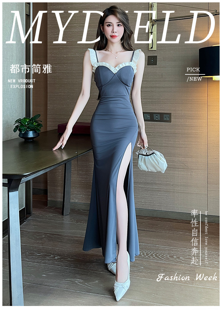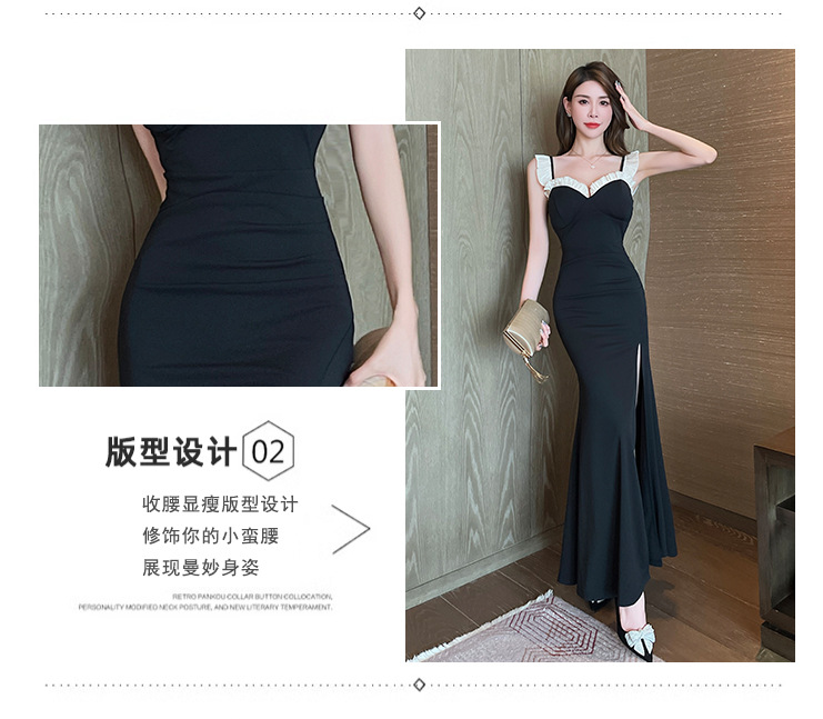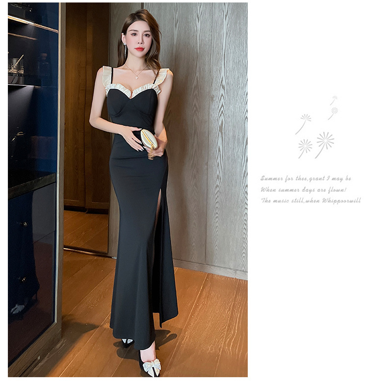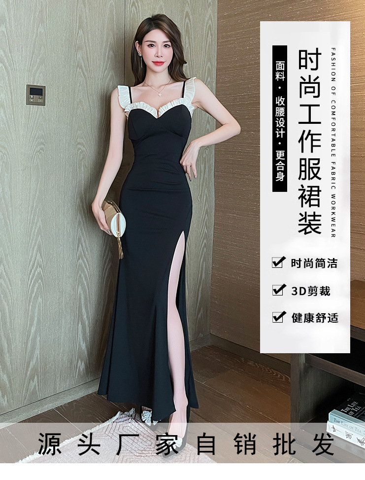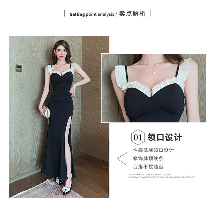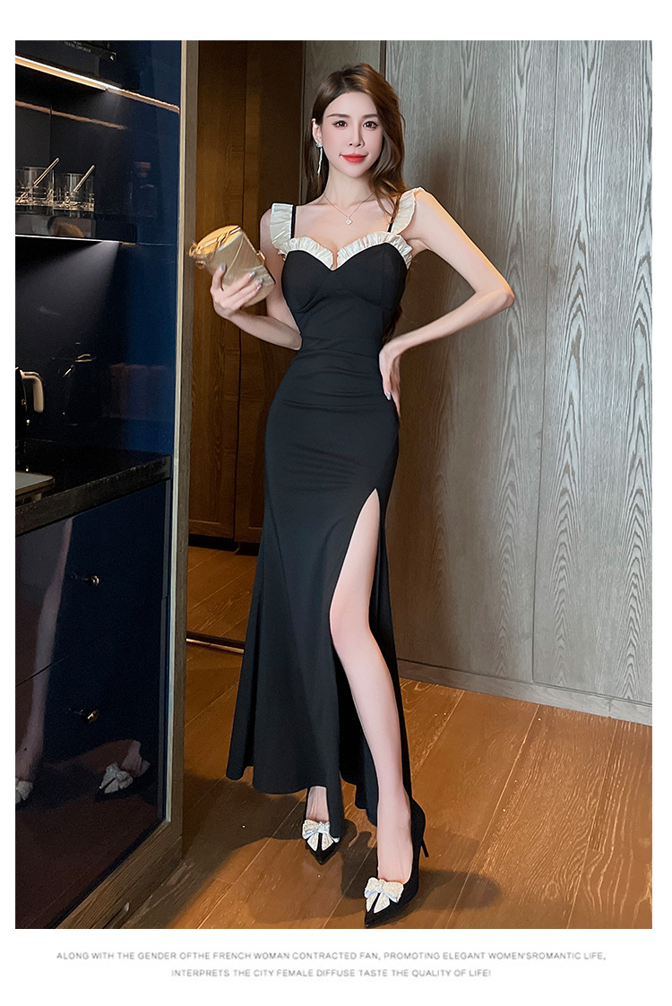 생일 파티 원피스 프랑스 스타일 작은 검은 원피스 새로운 패션 순수한 귀 섹시한 엉덩이 분할 원피스