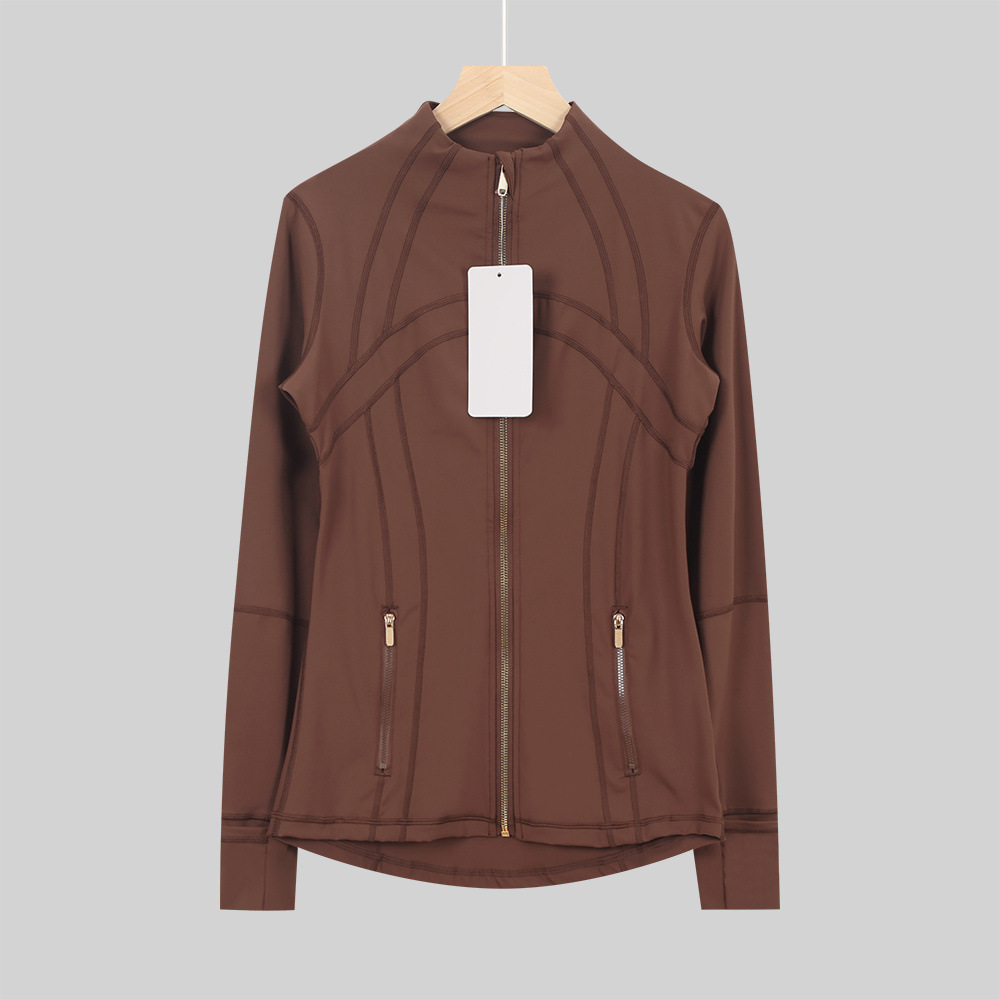 Lulu 오리지널 라벨 골드 지퍼 요가 자켓 여성용 타이트 스탠드 칼라 골드 지퍼 긴팔 탑 스포츠 속건성 바디 슈트스토어 가기