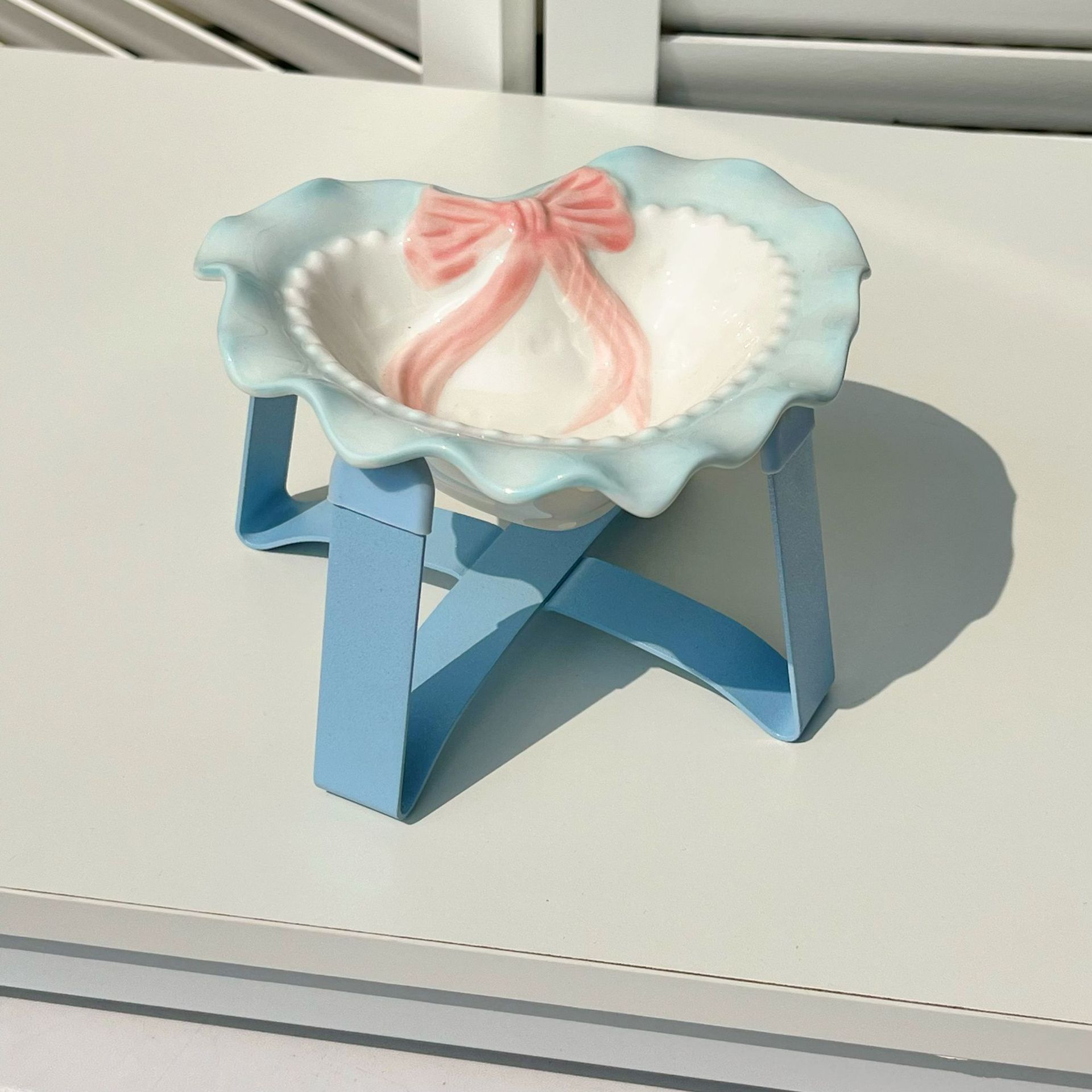 한국식 리본 사랑 고양이 그릇 세라믹 도파민 대구경 높이 조절이 가능한 흔들림 방지 애완 동물 물 그릇 및 사료 그릇