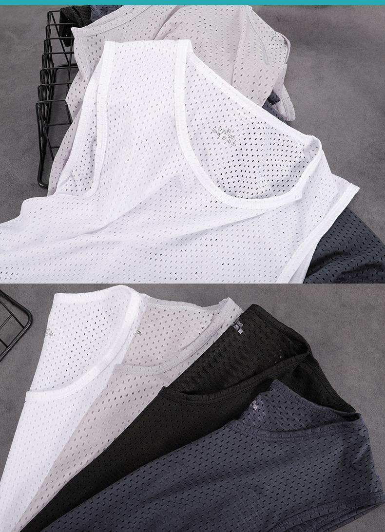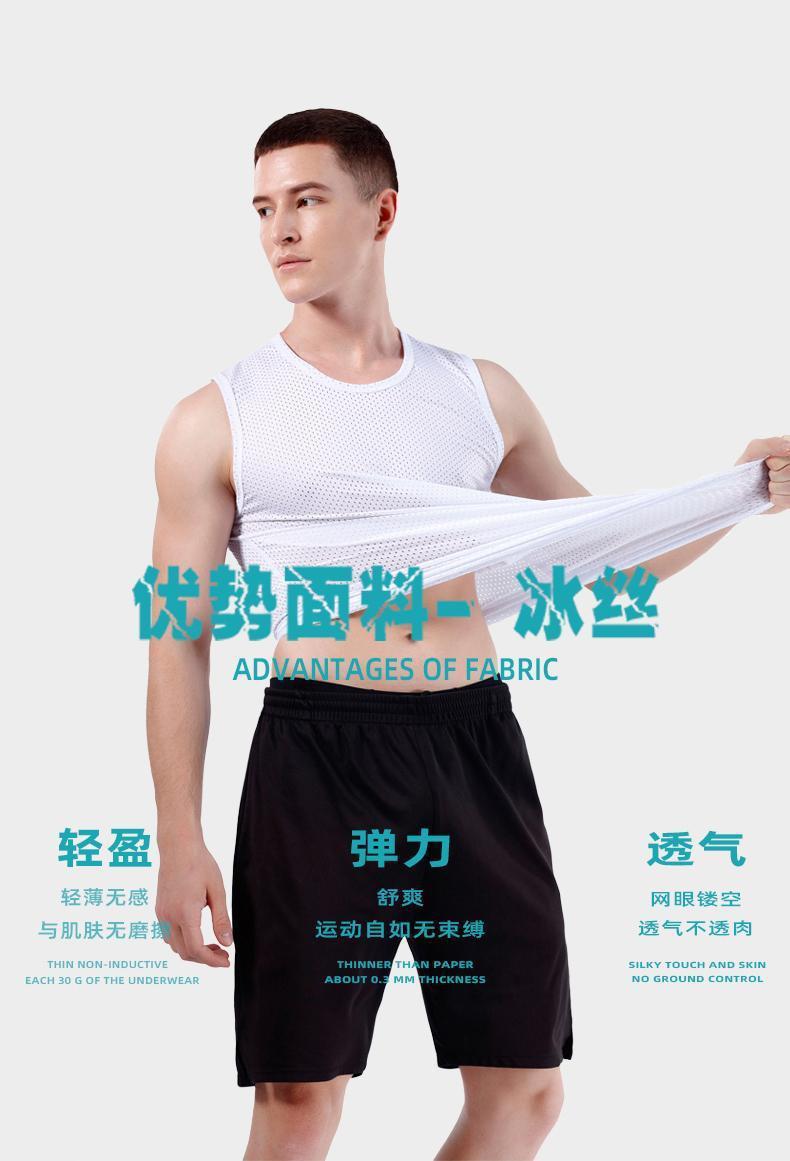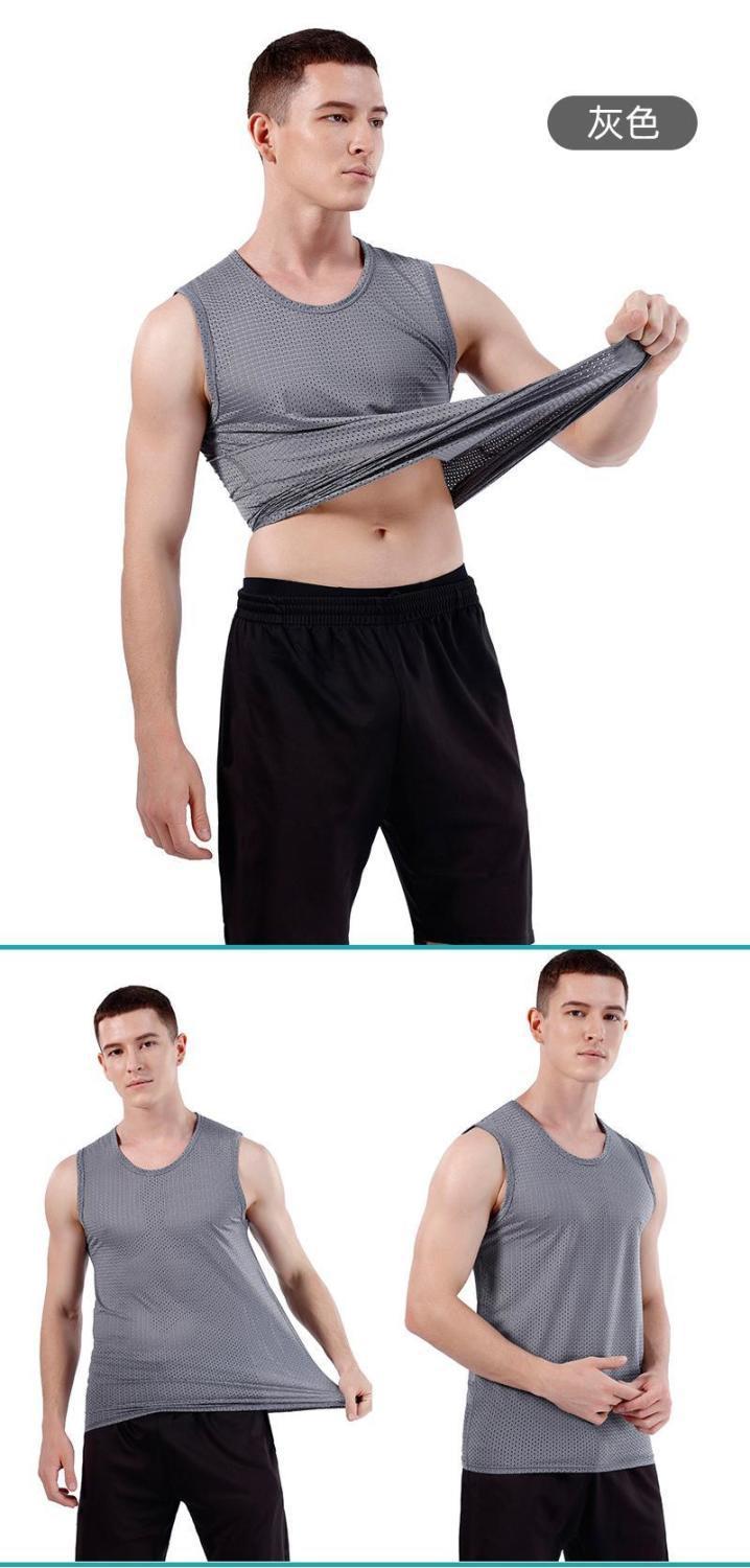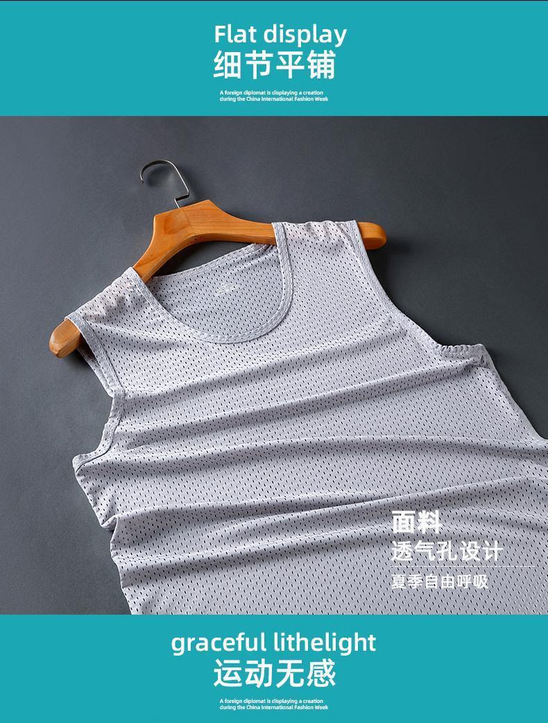 폭발성 아이스 실크 조끼 남성용 트렌디 한 얇은 민소매 라운드 넥 느슨한 피트니스 메쉬 와이드 어깨 빠른 건조 스포츠 왁스 코트