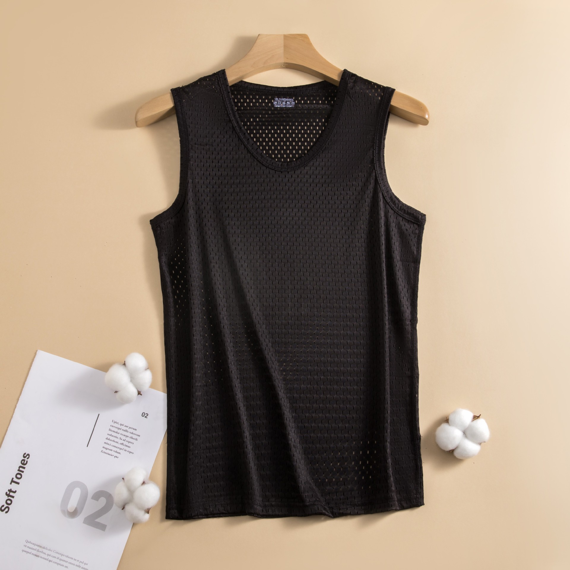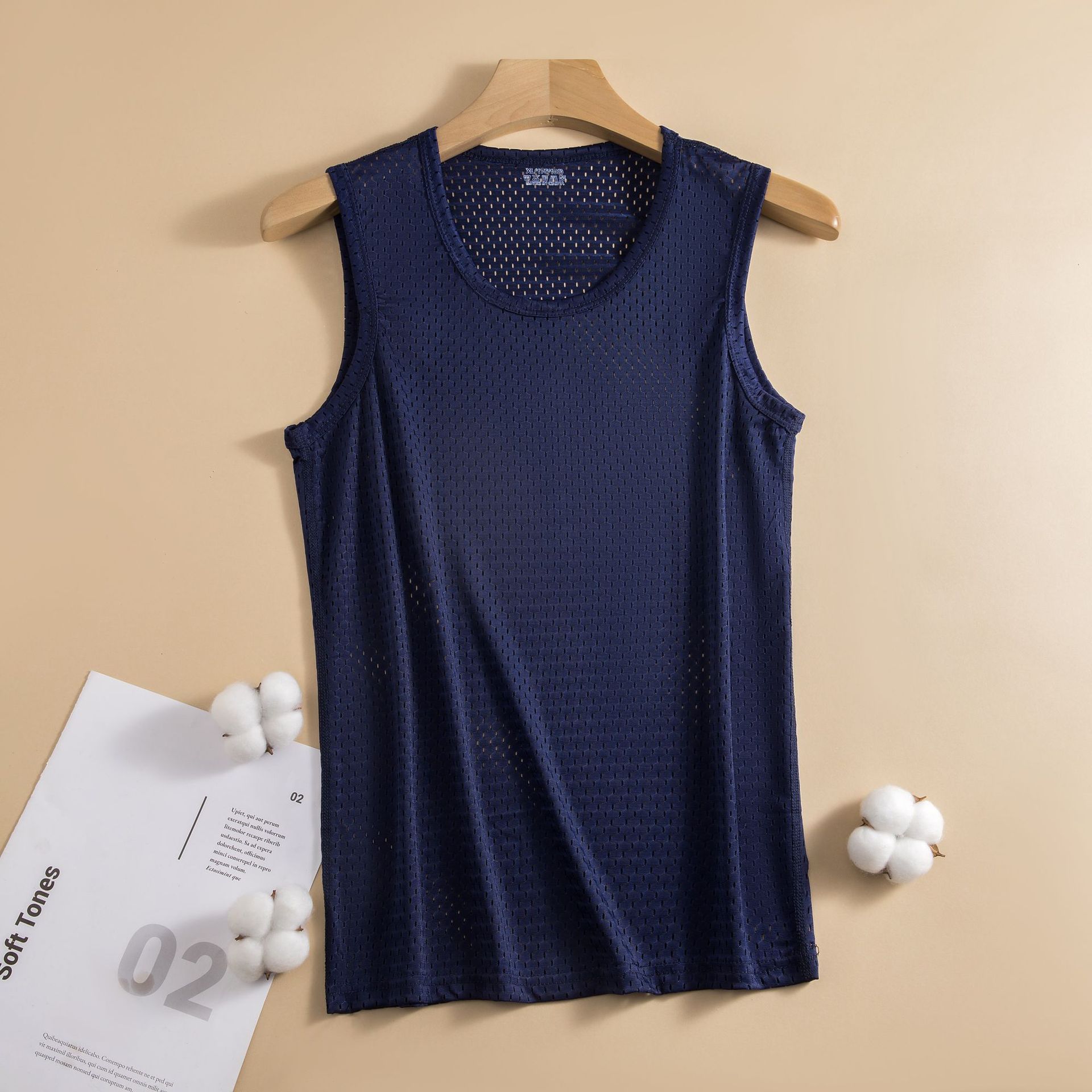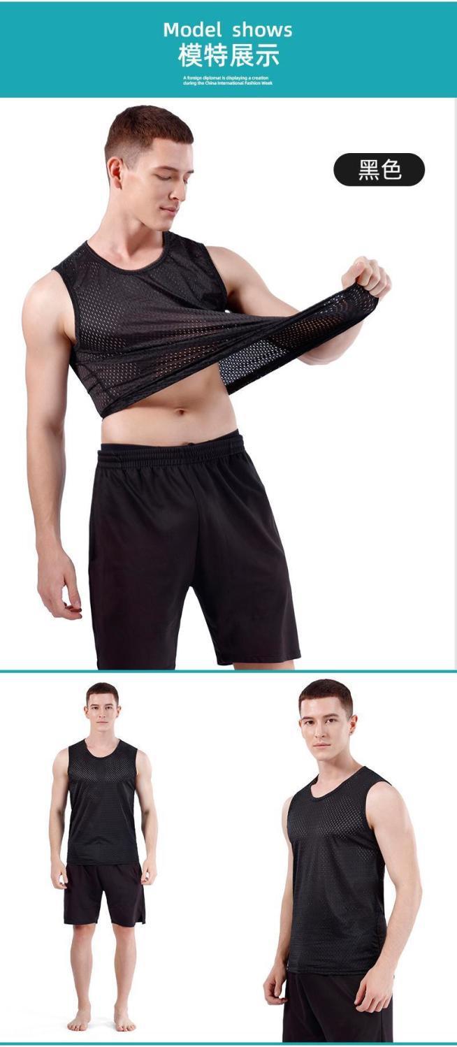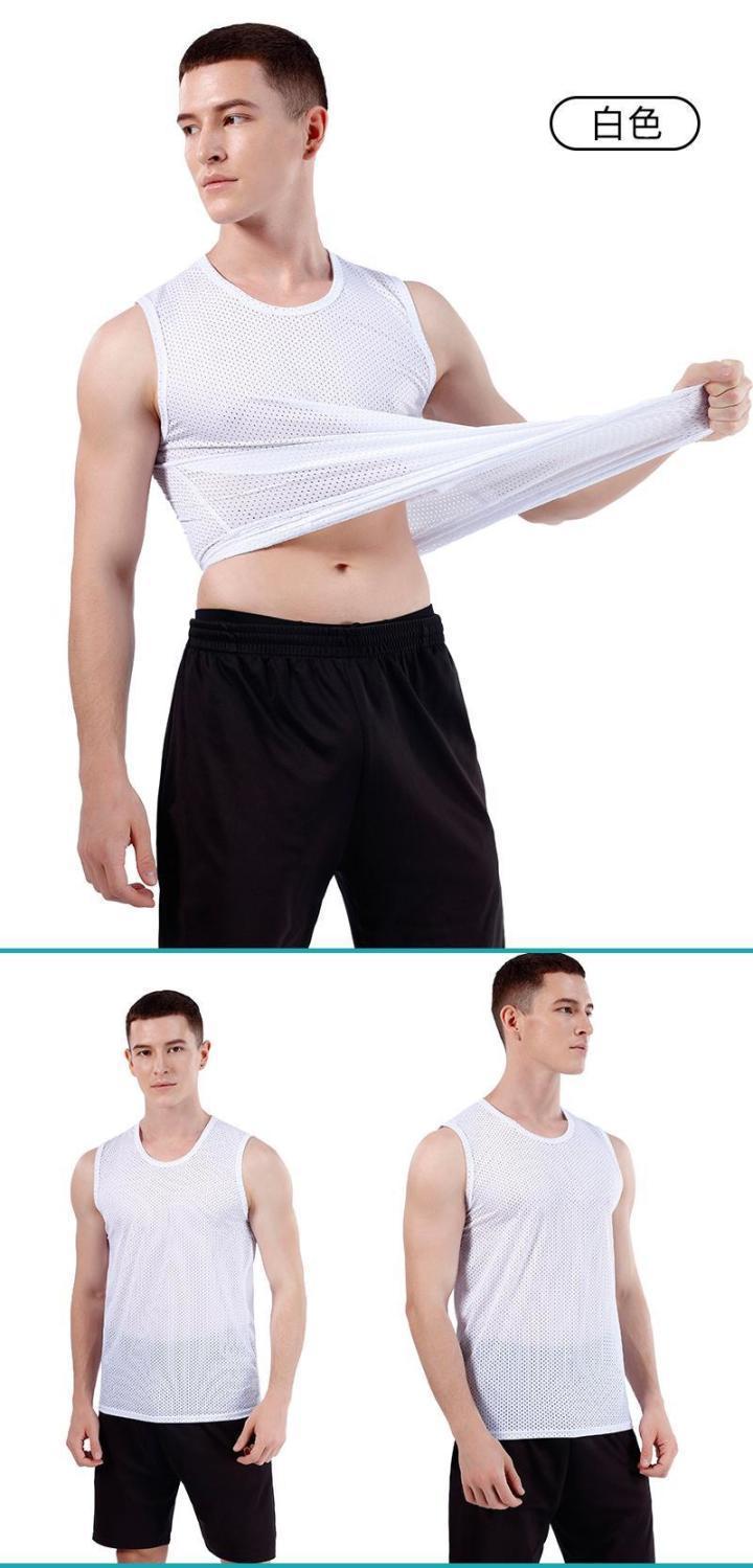 폭발성 아이스 실크 조끼 남성용 트렌디 한 얇은 민소매 라운드 넥 느슨한 피트니스 메쉬 와이드 어깨 빠른 건조 스포츠 왁스 코트