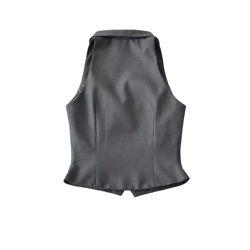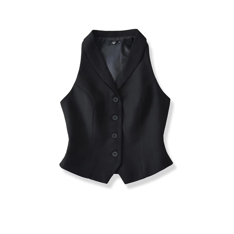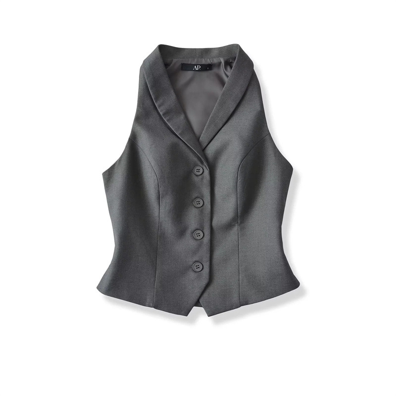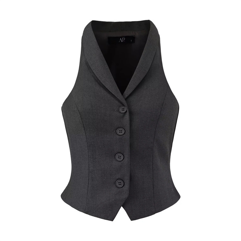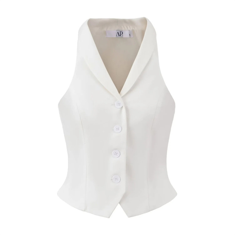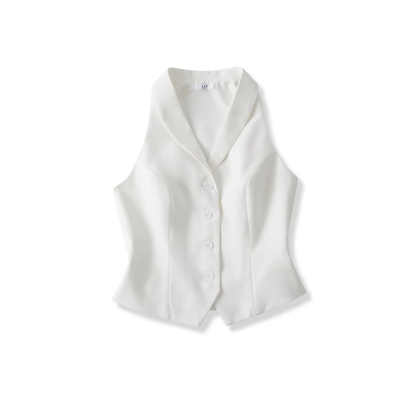 여름 레이어드 핫걸을 위한 유럽과 미국 스타일의 슬림핏 정장 조끼 V 넥 허리 민소매 조끼 쇼트 탑스토어 가기