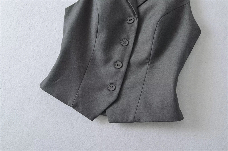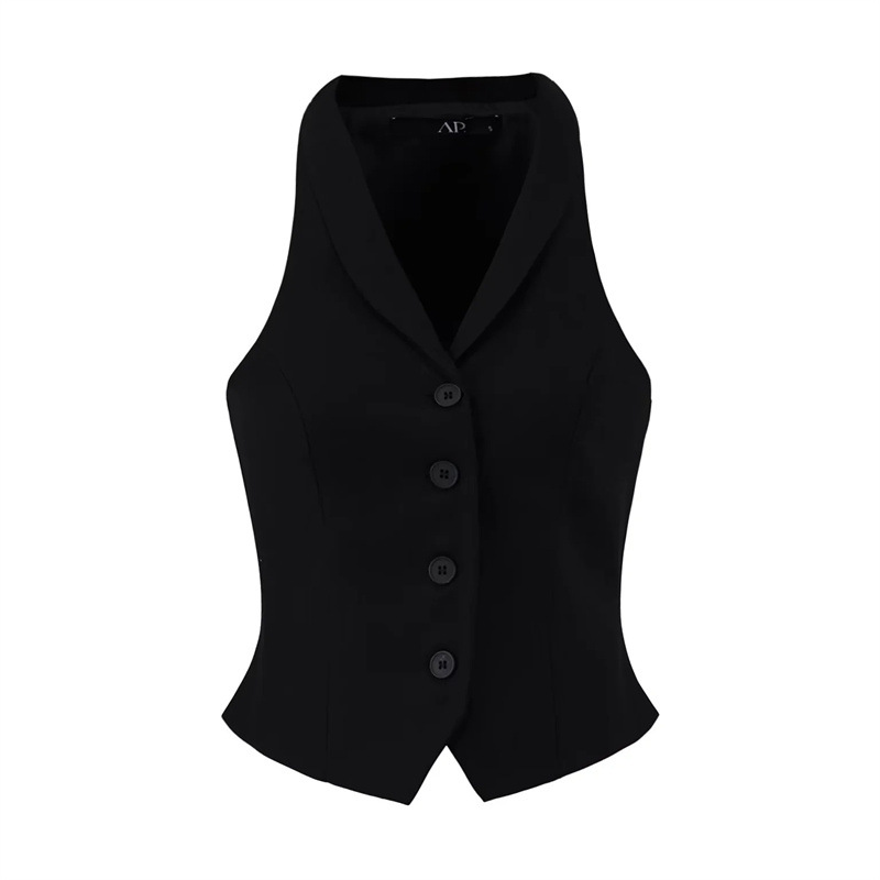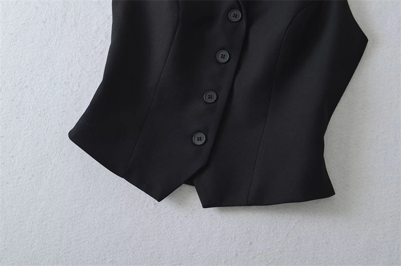 여름 레이어드 핫걸을 위한 유럽과 미국 스타일의 슬림핏 정장 조끼 V 넥 허리 민소매 조끼 쇼트 탑