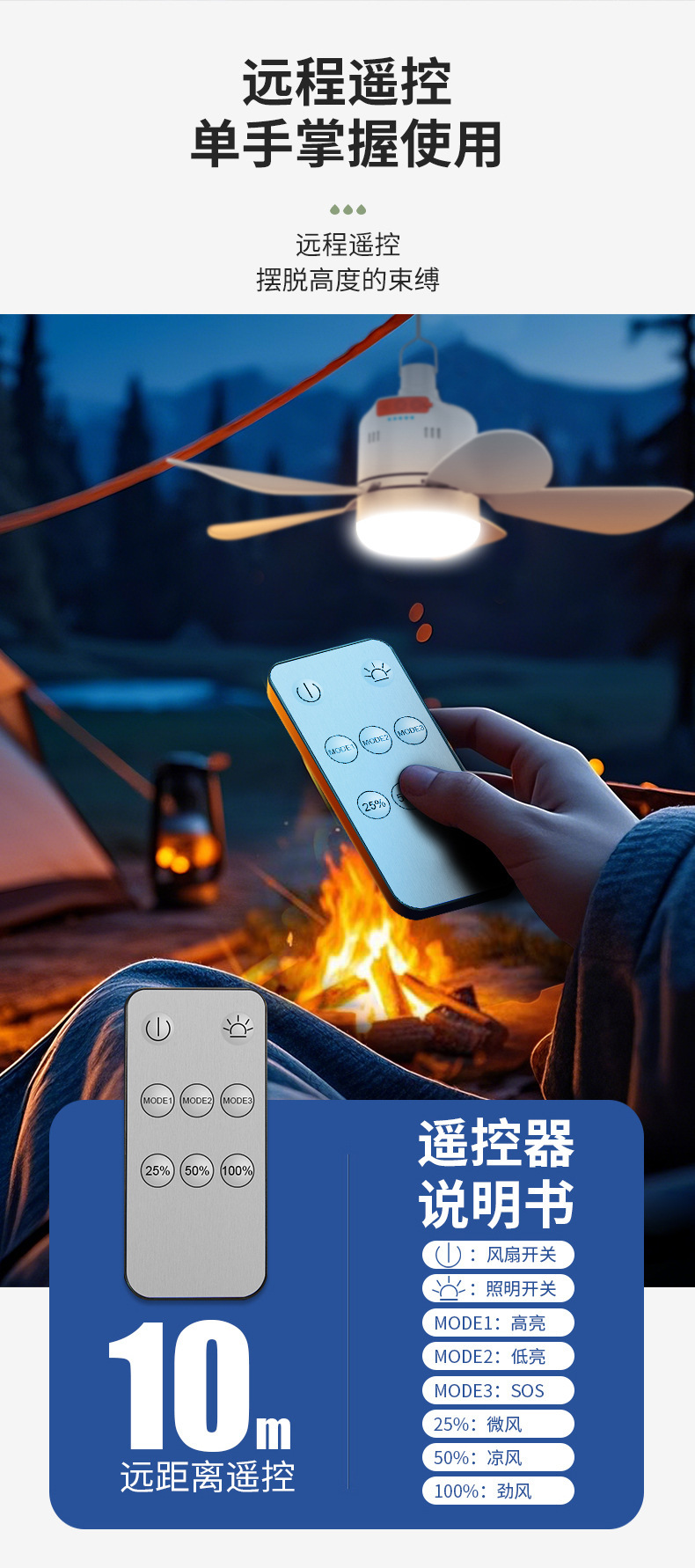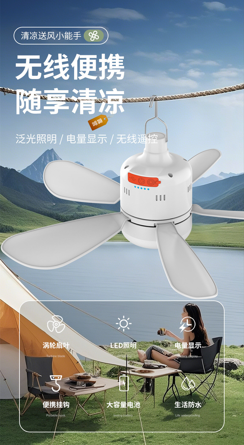 국경 간 야외 팬 조명 휴대용 대용량 무단 속도 조절 충전 캠핑 팬 조명 캠핑 텐트