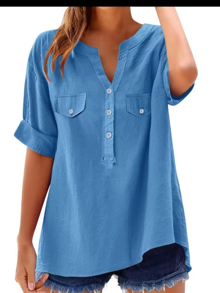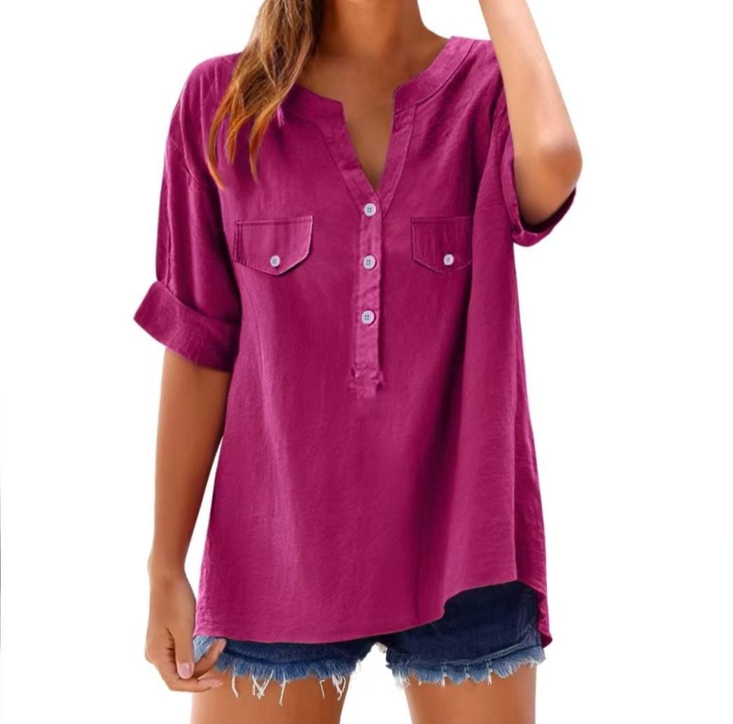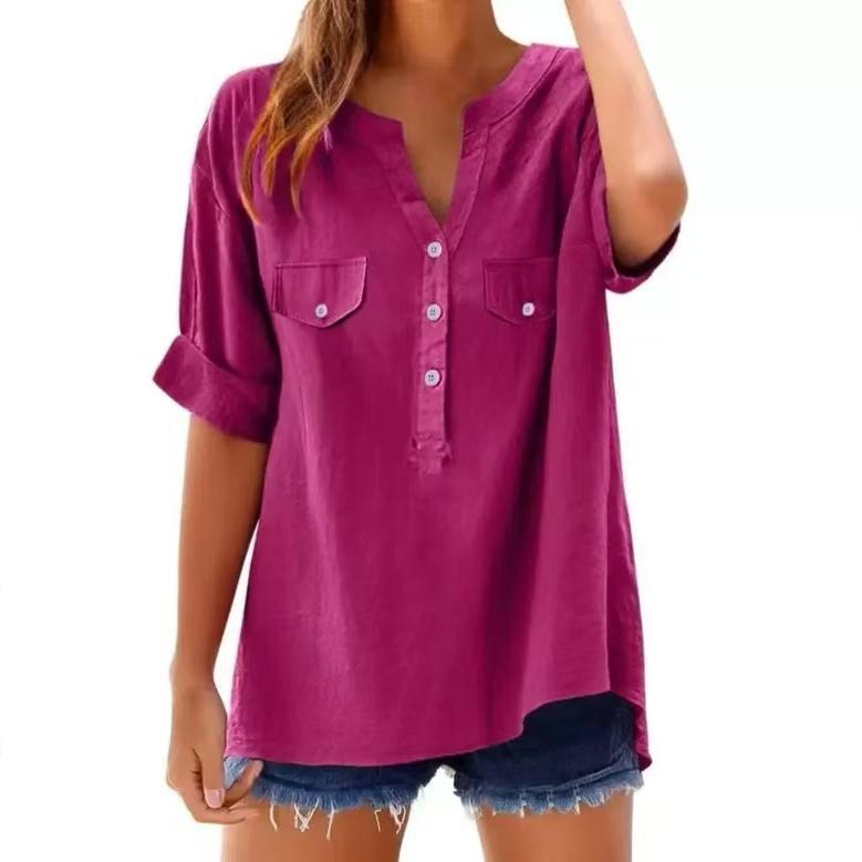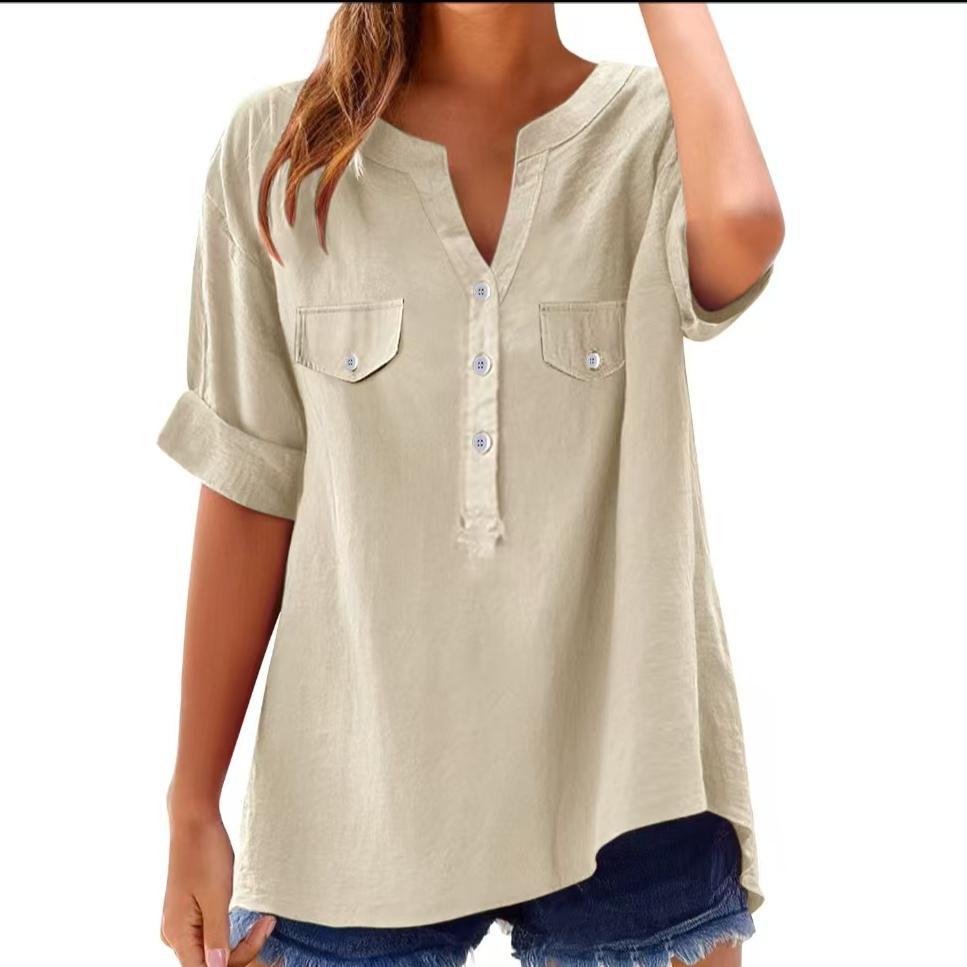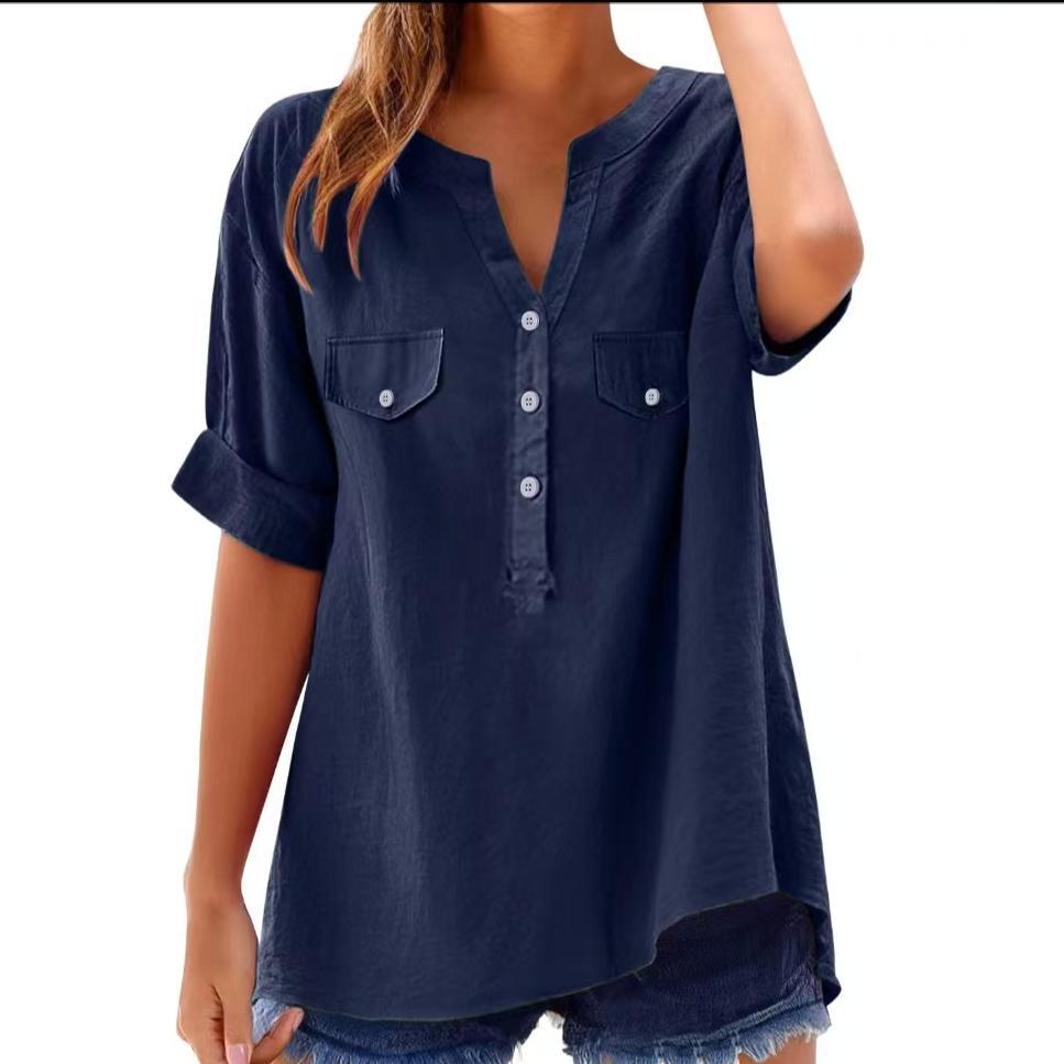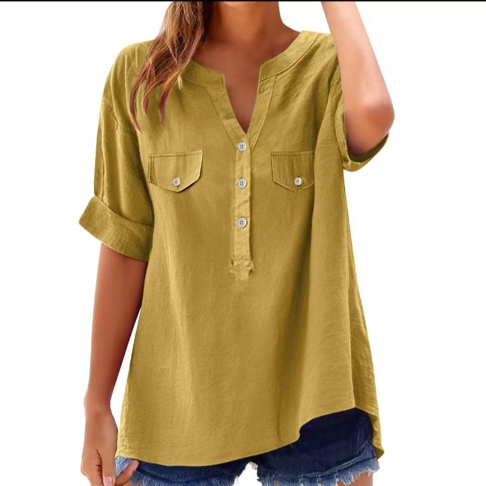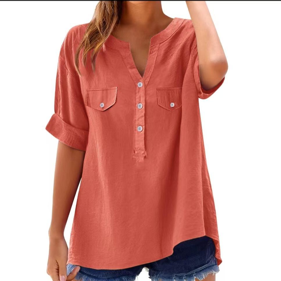 2025 대외 무역 아마존 새로운 대나무 면 솔리드 컬러 셔츠 플러스 사이즈 패션 캐주얼 반소매 셔츠 여성 의류