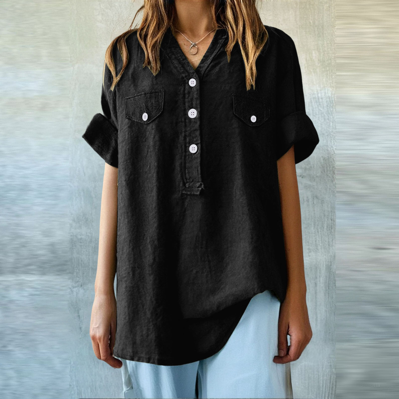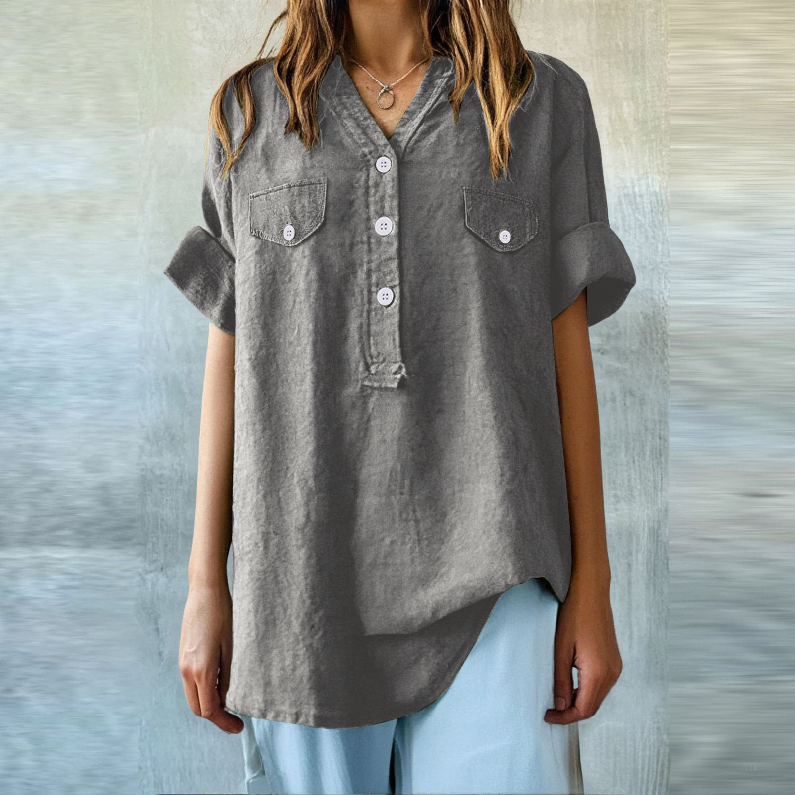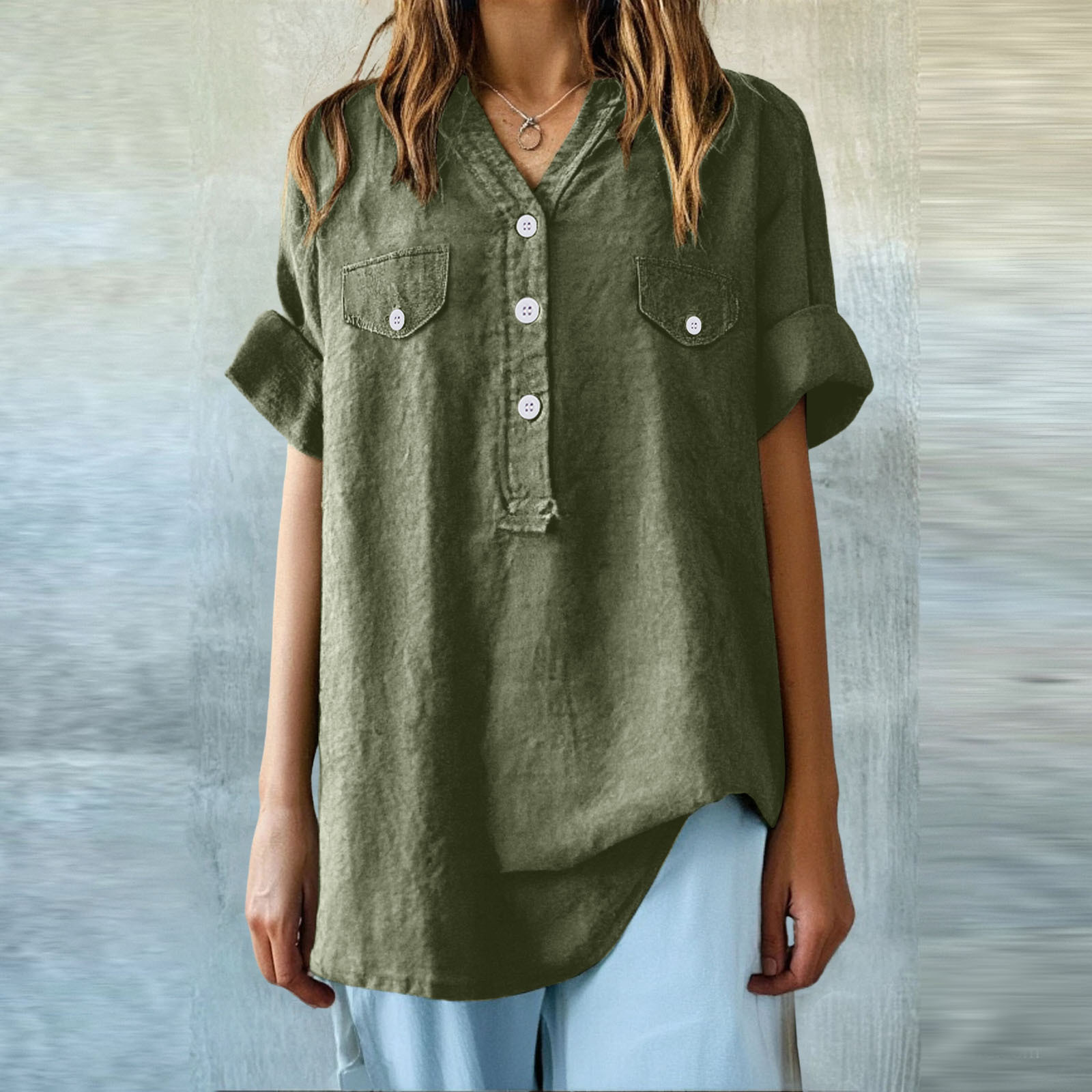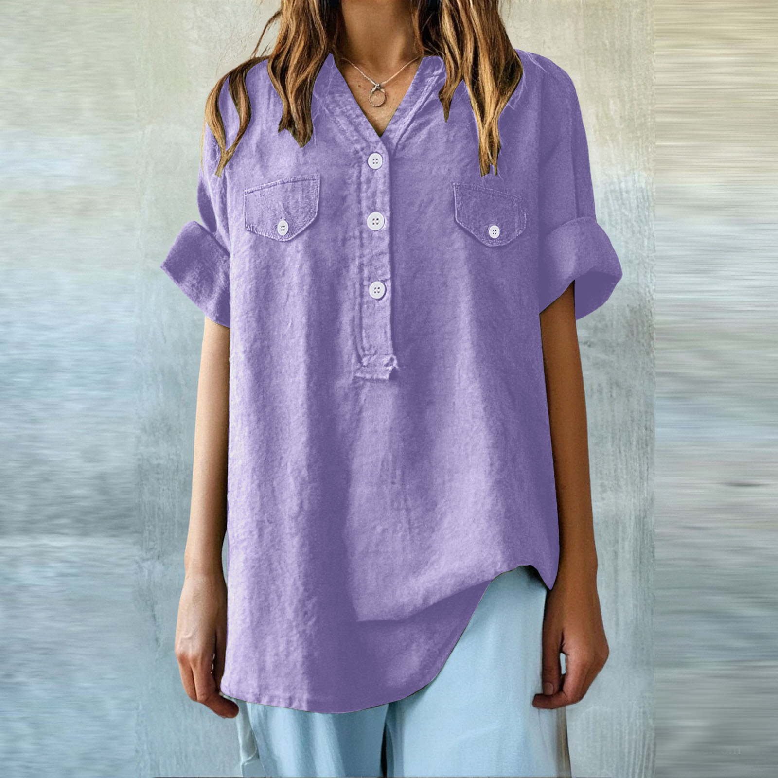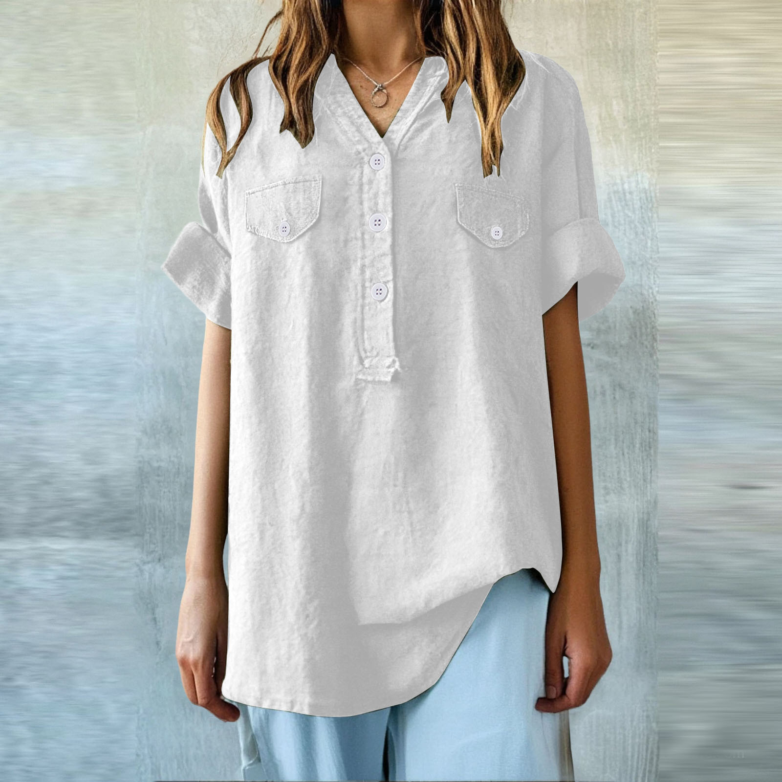 2025 대외 무역 아마존 새로운 대나무 면 솔리드 컬러 셔츠 플러스 사이즈 패션 캐주얼 반소매 셔츠 여성 의류