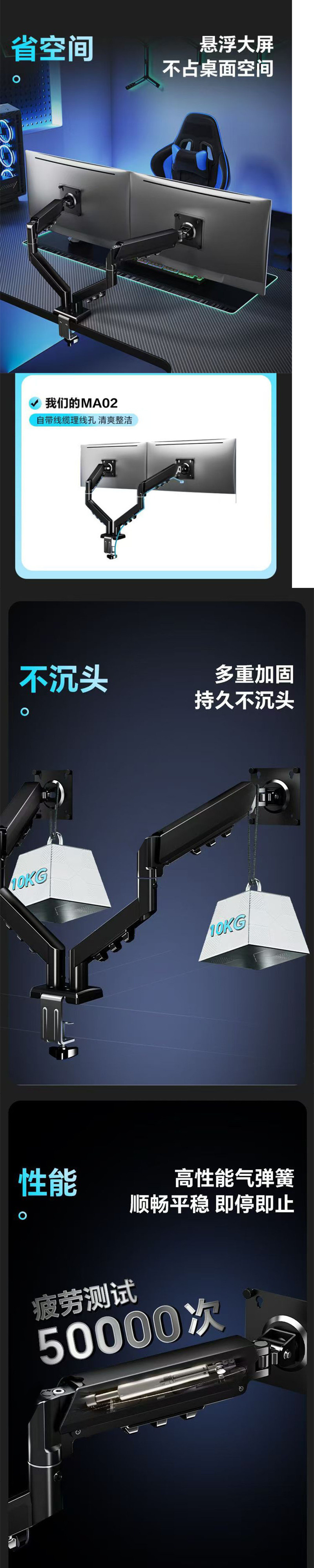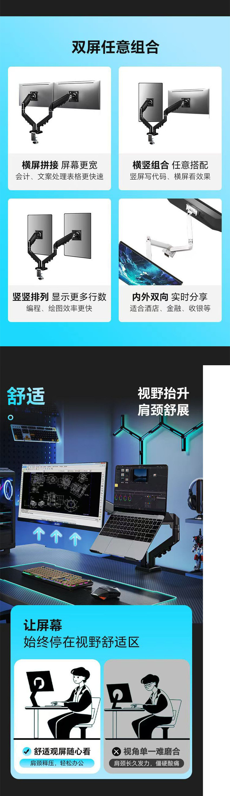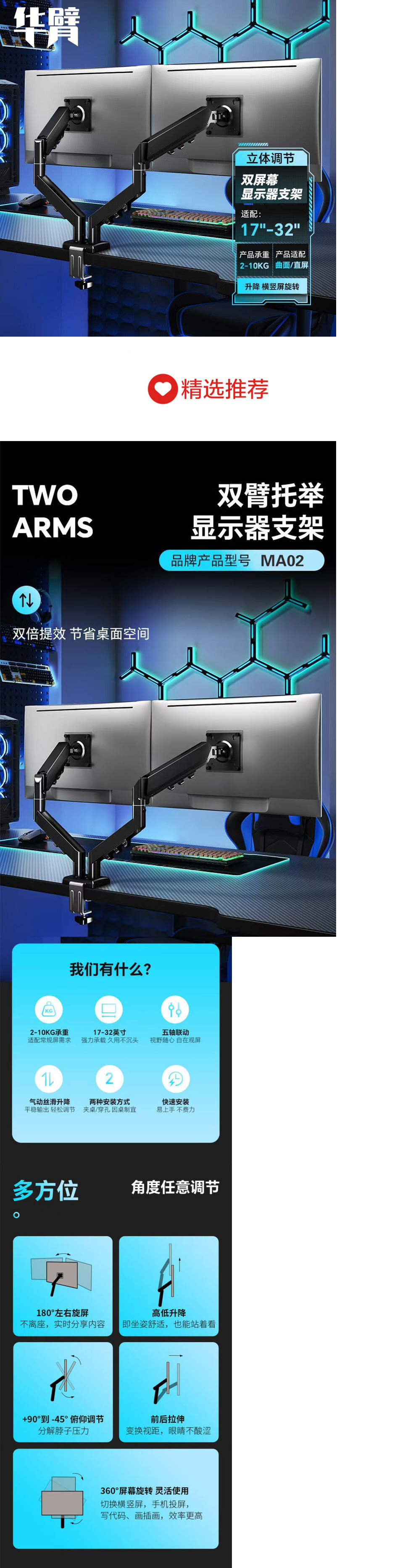 Huaarm 새로운 듀얼 스크린 모니터 스탠드 펀치 프리 공기압 로봇 팔 회전 노트북 메인 화면 왼쪽 및 오른쪽 듀얼 스크린스토어 가기